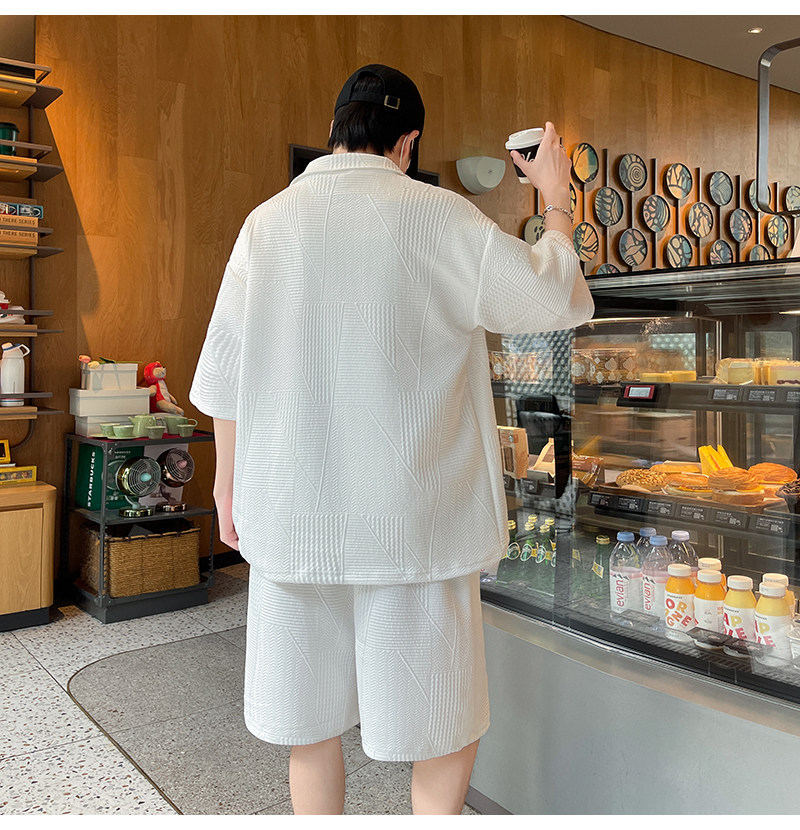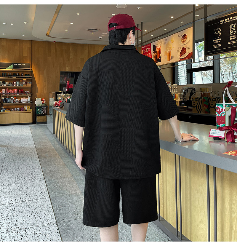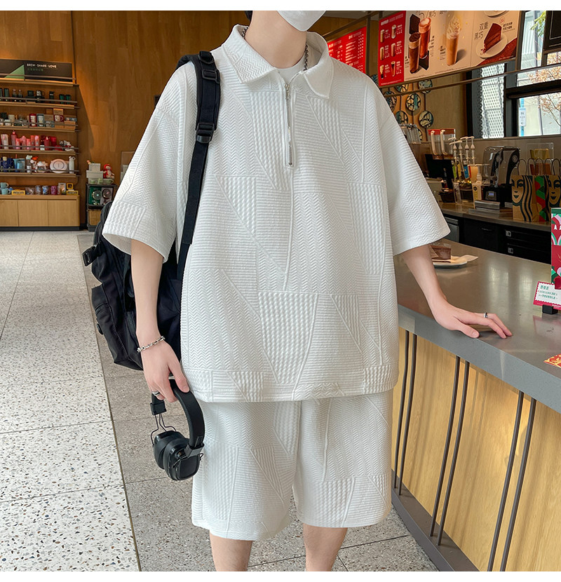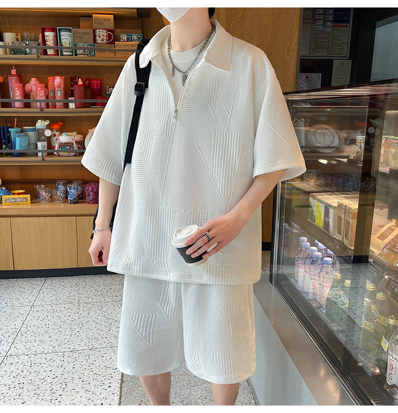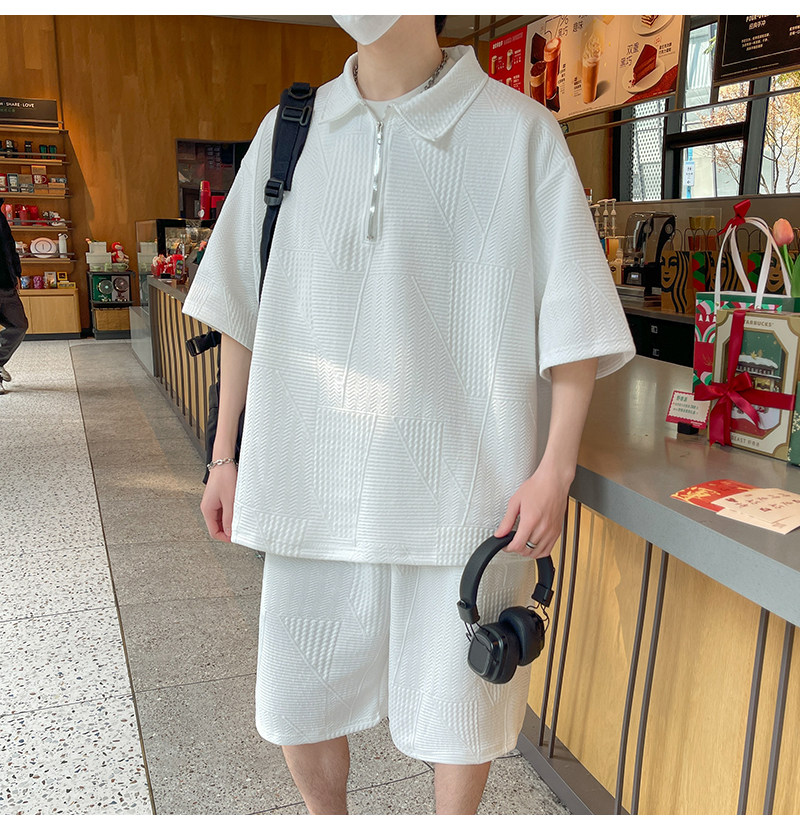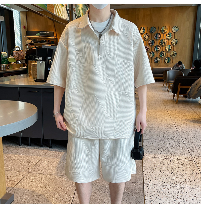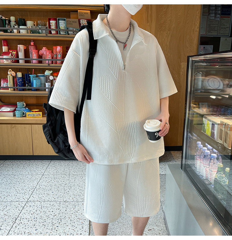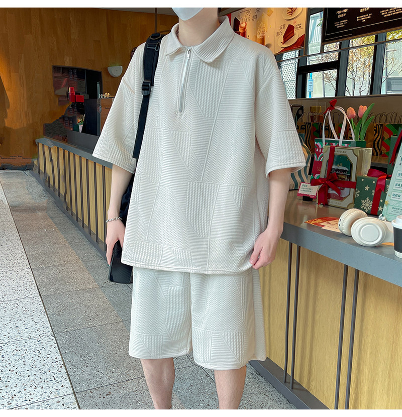 Clearance Sale: Export Surplus Summer Fashion Set for Men, Stand-Up Collar Short-Sleeve T-Shirt Paired with Five-Point Shorts