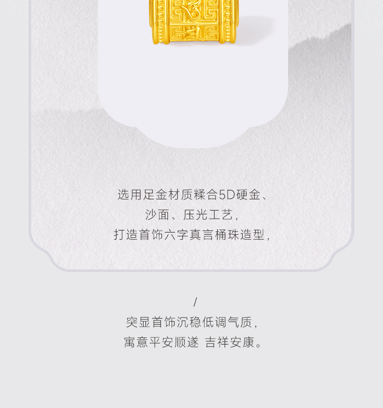 Zhou Liufu 5d Hard Gold Pricing Six Words True Words Gold Barrel Bead Hand Rope Men's Gold Bracelet Men's Father's Day Gift