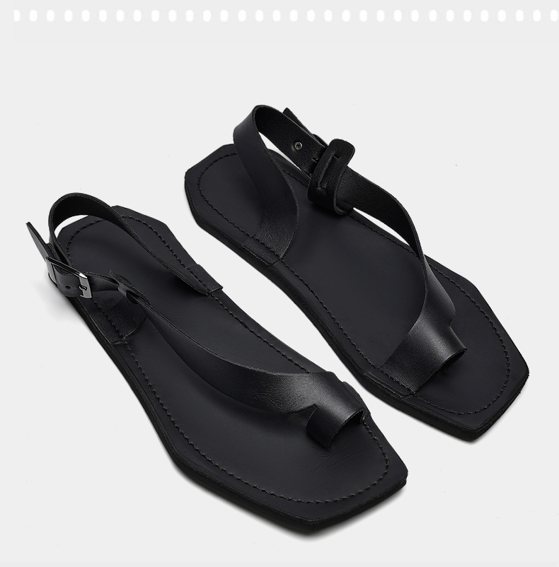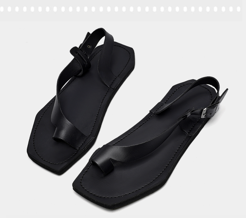 European Style 2025 Summer Square-Toe Stylish British Roman Retro Open-Toe Fish Mouth Shoes Flat Low-Heeled Thong Sandals