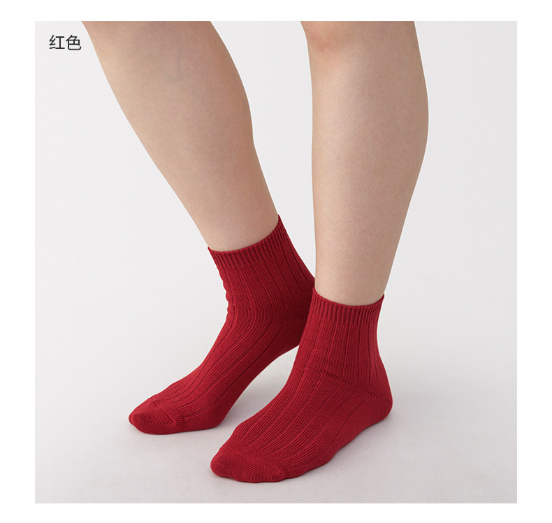Muji Unisex Straight-Cut Socks with No Elastic Band, Wide Ribbed Short Socks, Christmas Gift