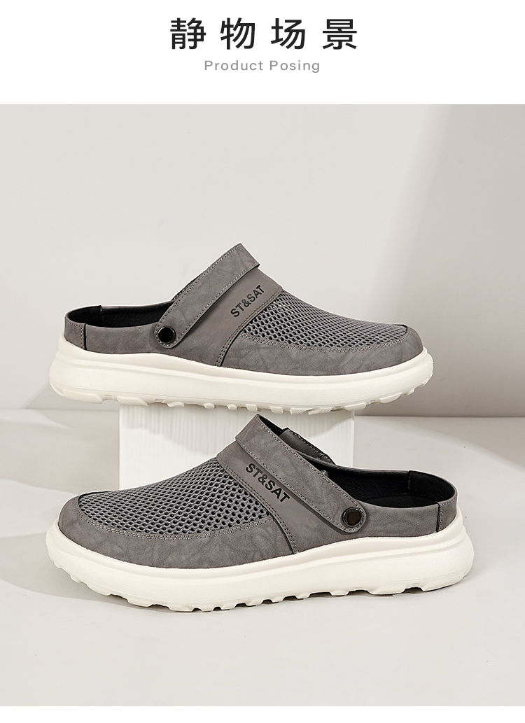 Men's Mesh Breathable Clogs for Saturday, Summer Slip-On Lazy Shoes, Closed-Toe Sandals, Water-Resistant Beach Shoes for Men