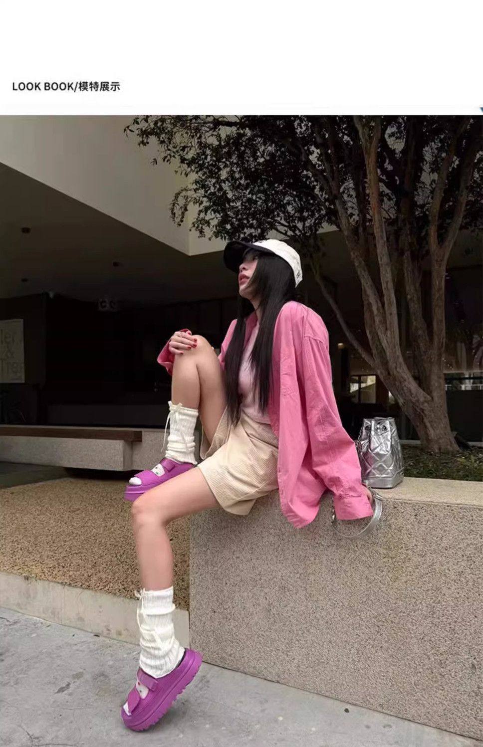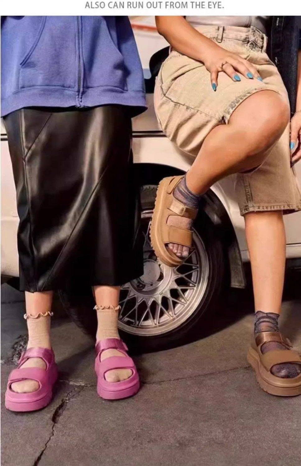 2025 Summer New Dopamine Sandals for Women, Comfortable and Fashionable, Solid Color, Thick Sole, Simple Height-Increasing Velcro Beach Shoes