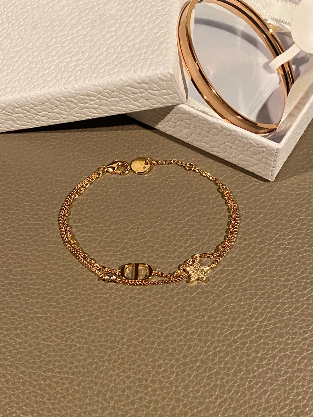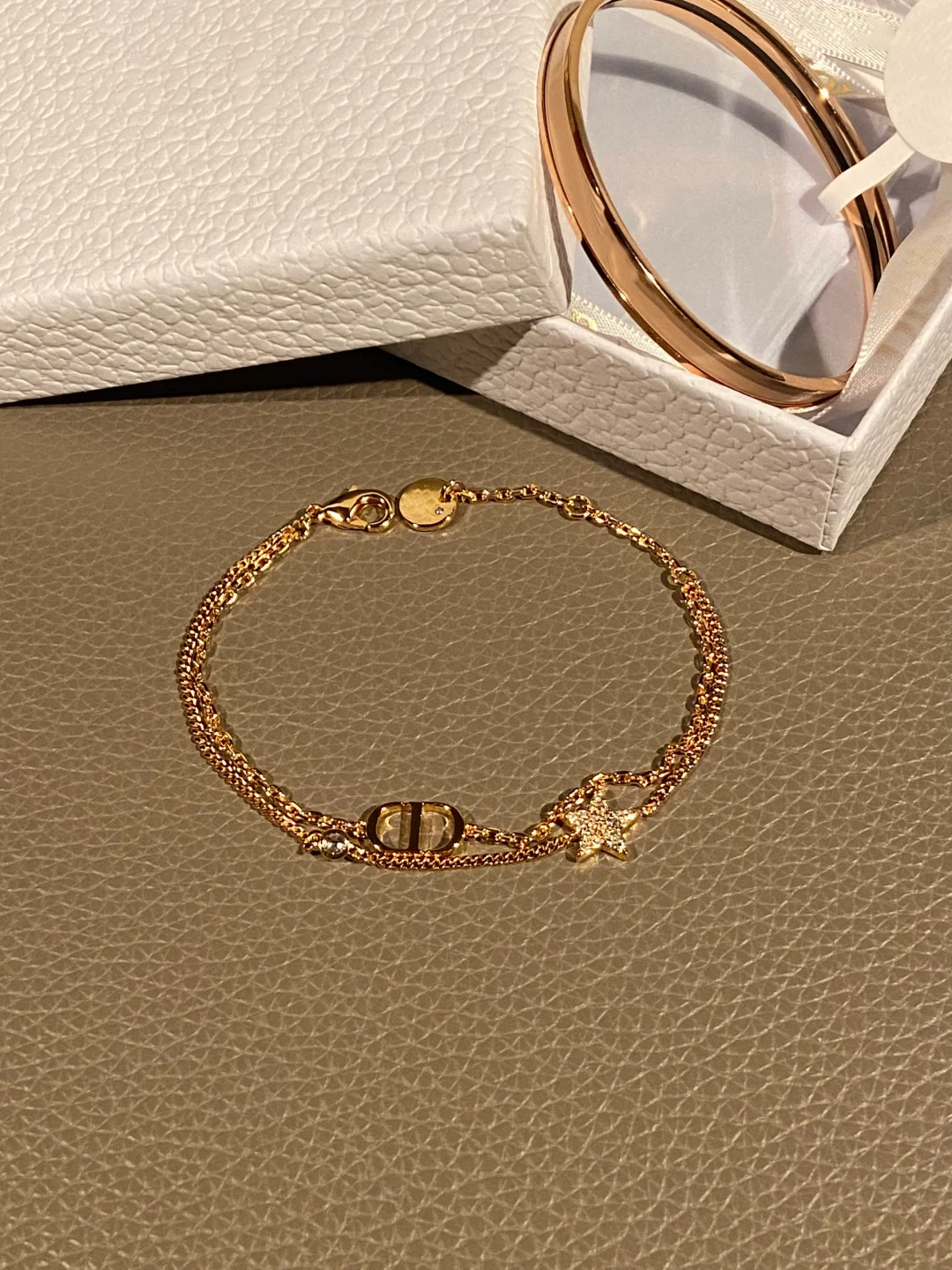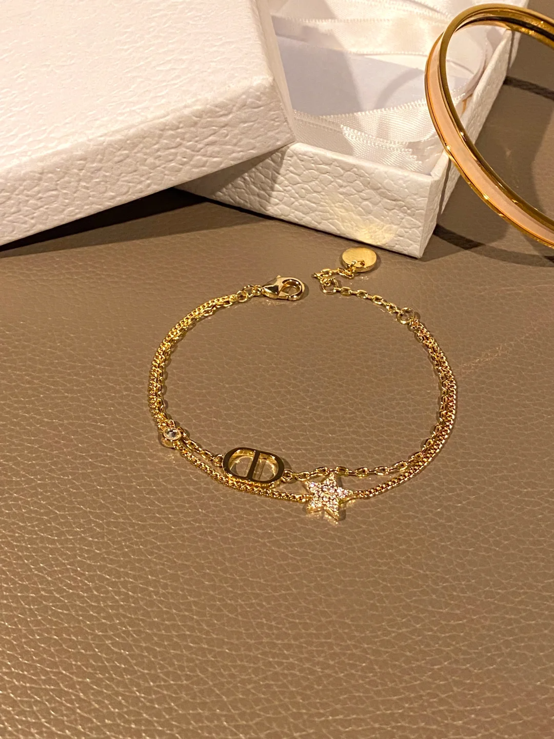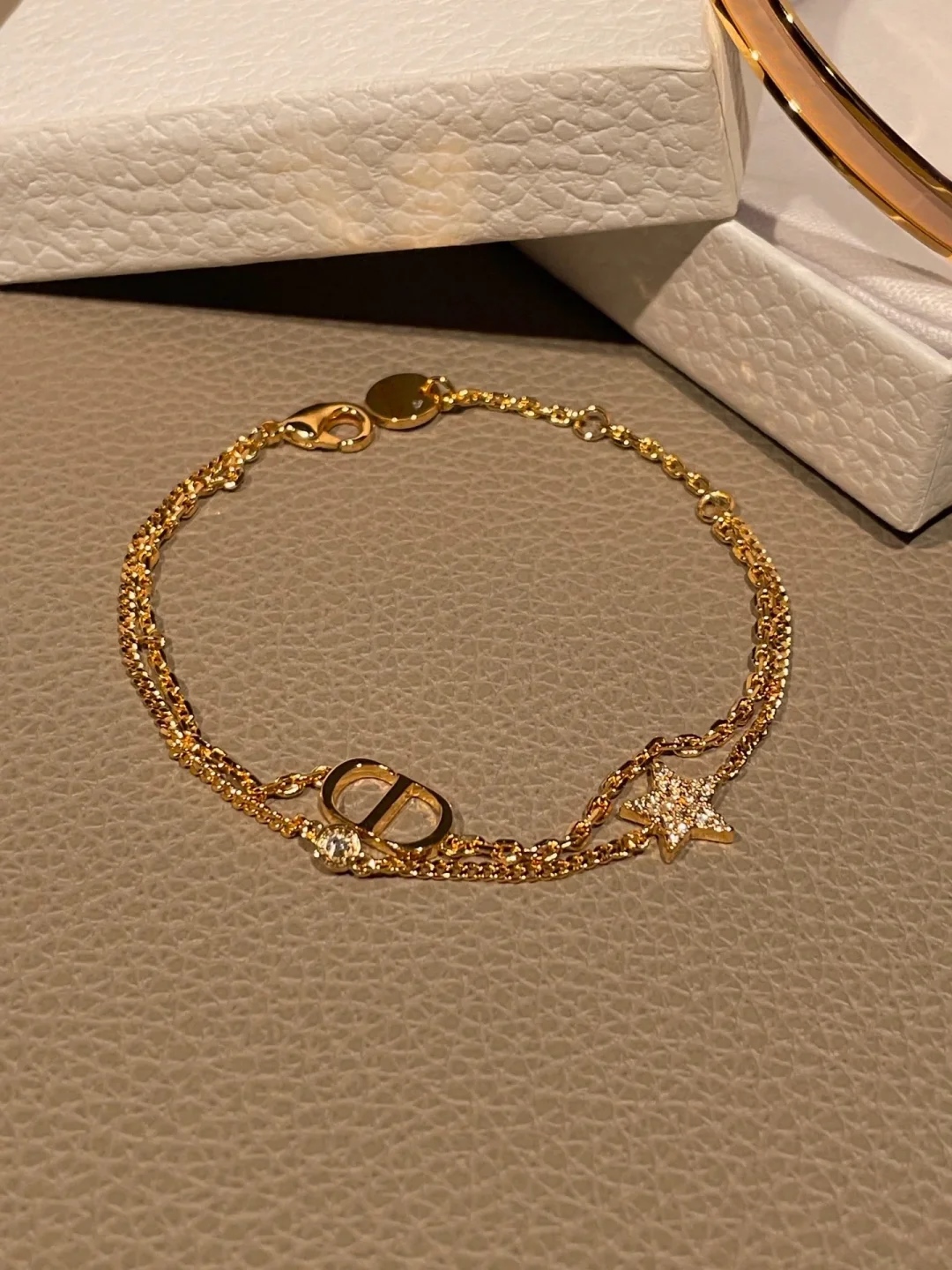 Moissanite Diamond Cd Pig Nose Letter Bracelet for Women, Thick 18K Gold-Plated Double-Layer Star Necklace, Girly Bracelet