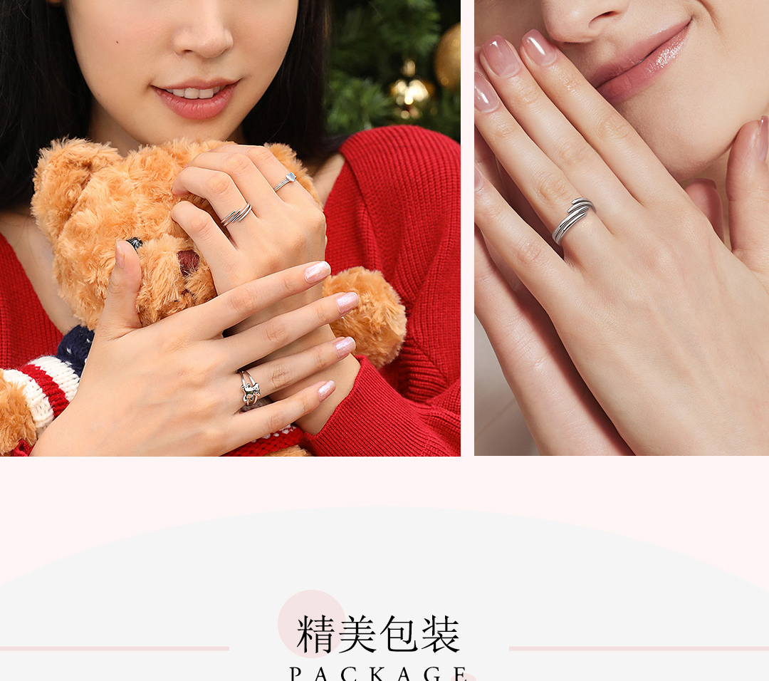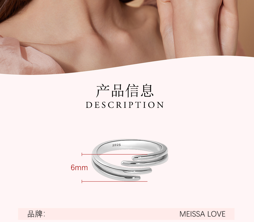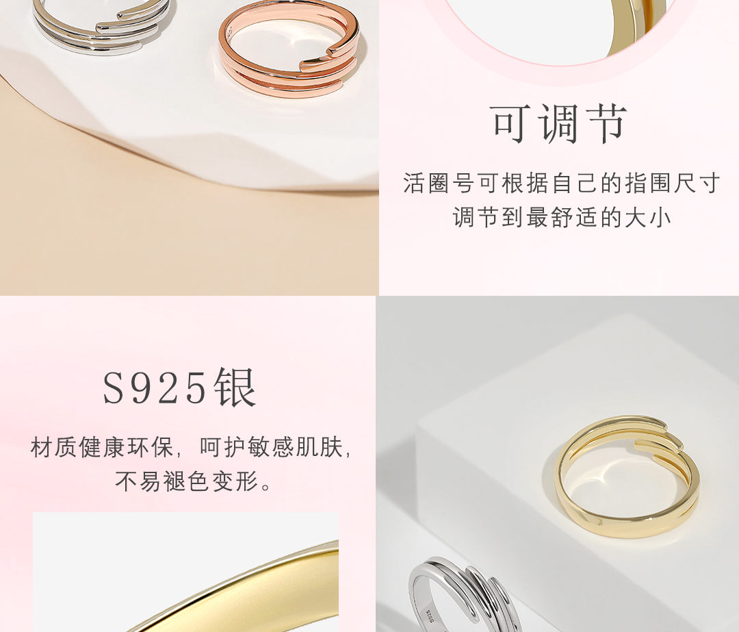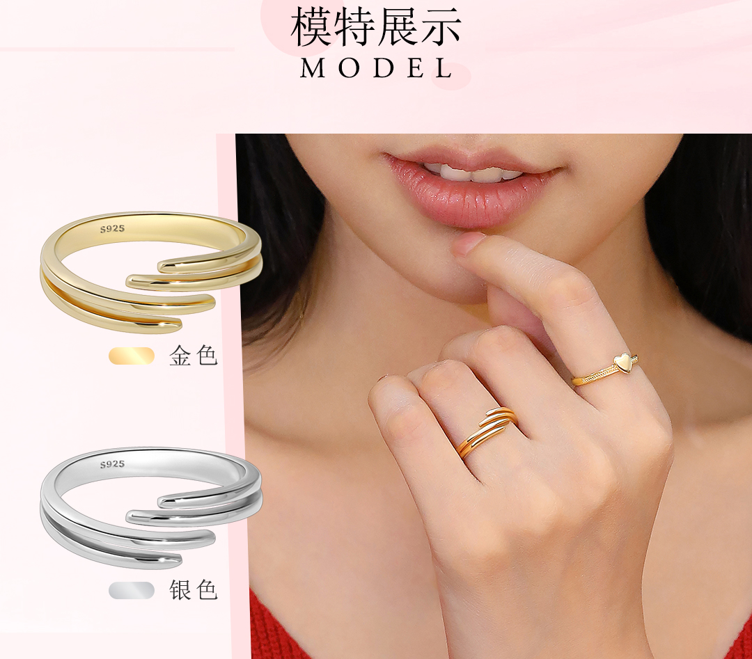 Huanuo Twin Rings in Sterling Silver for Couples, Plain Band Stackable Rings for Index Fingers, Niche Design, Light Luxury, High-End Friendship Rings