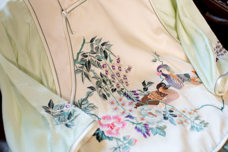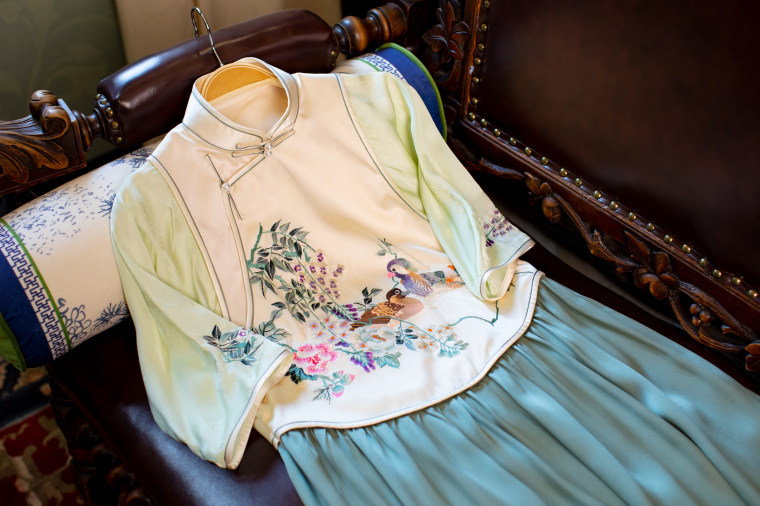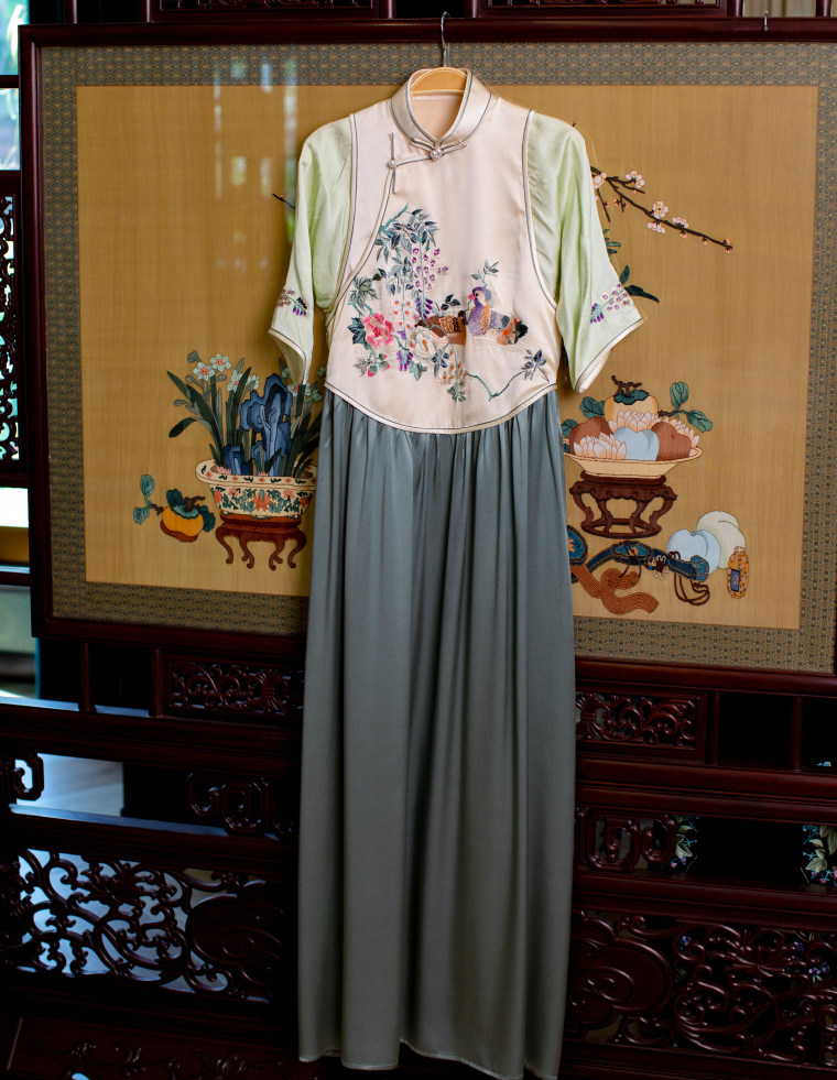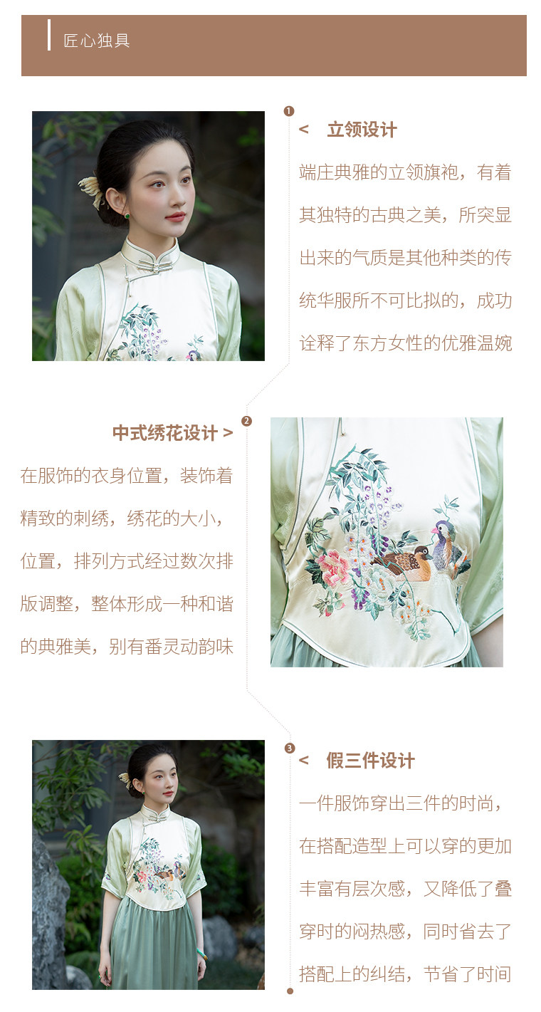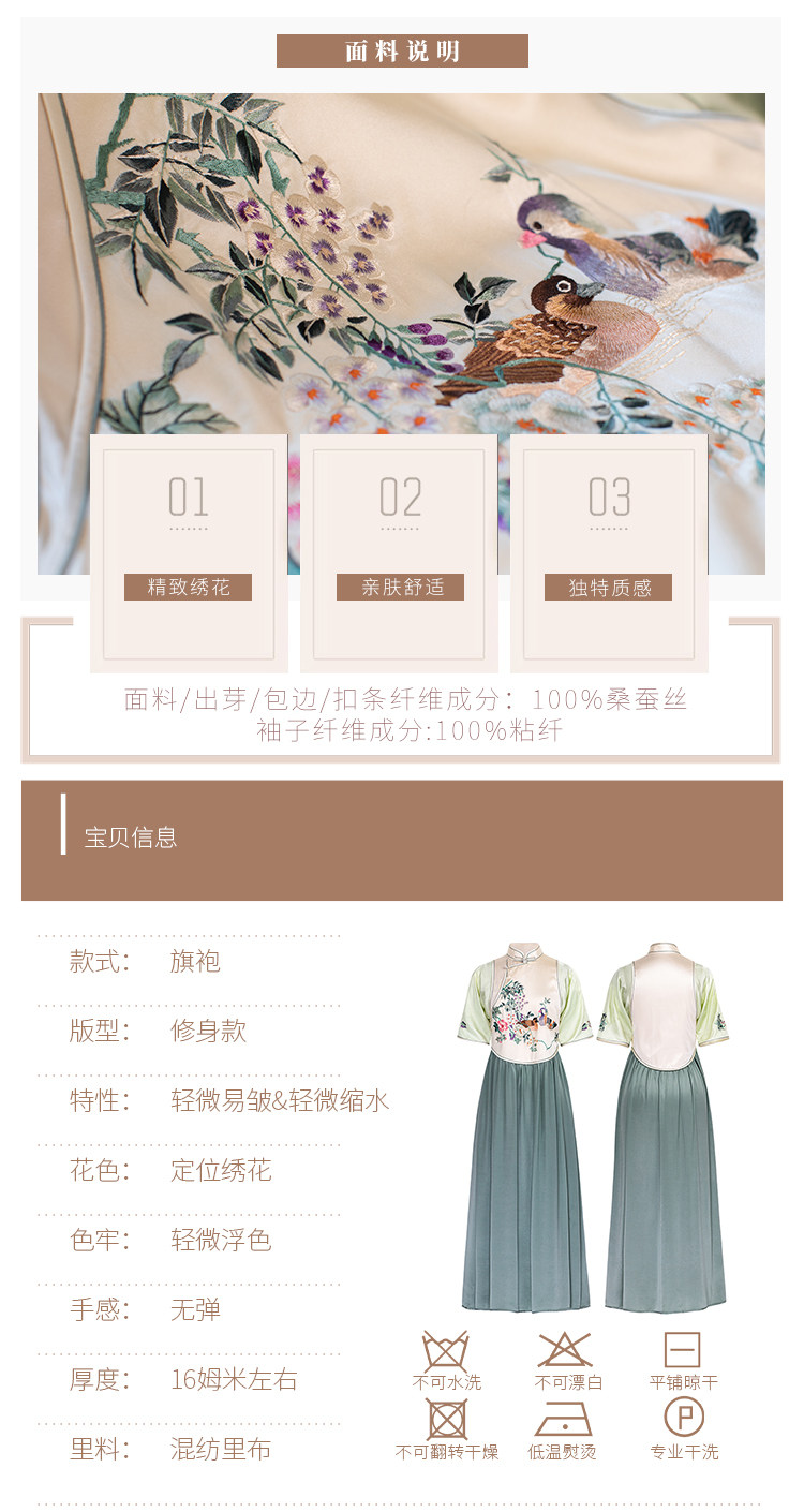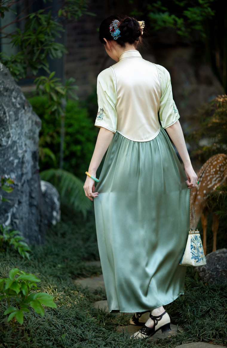Green Ripple Double-Function | 2025 Summer New Style | Silk Satin Embroidered Fake Three-Piece Cheongsam Chinese Style Dress