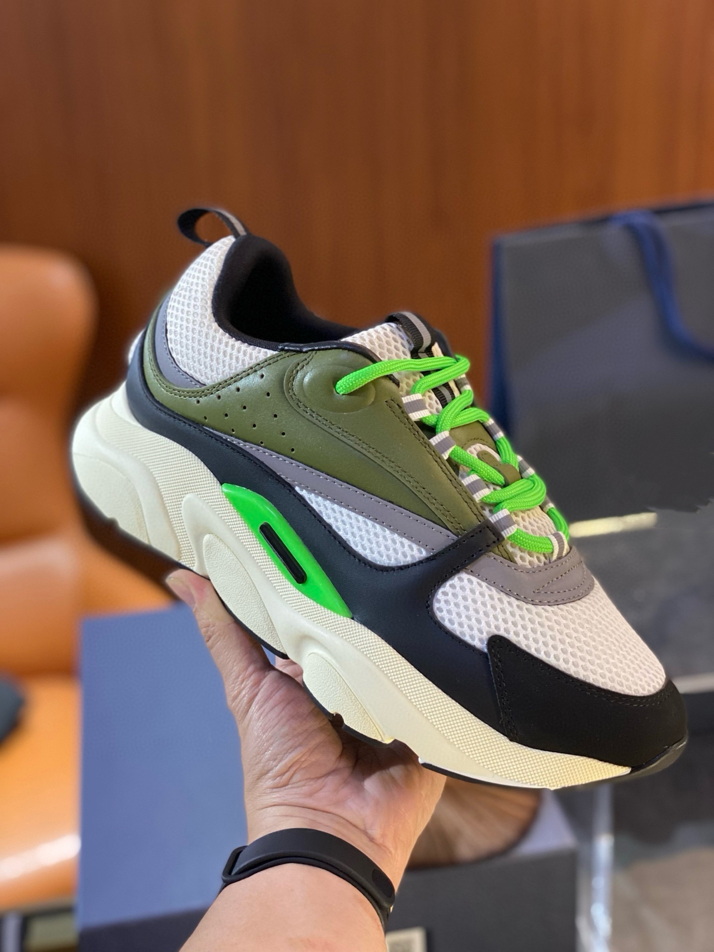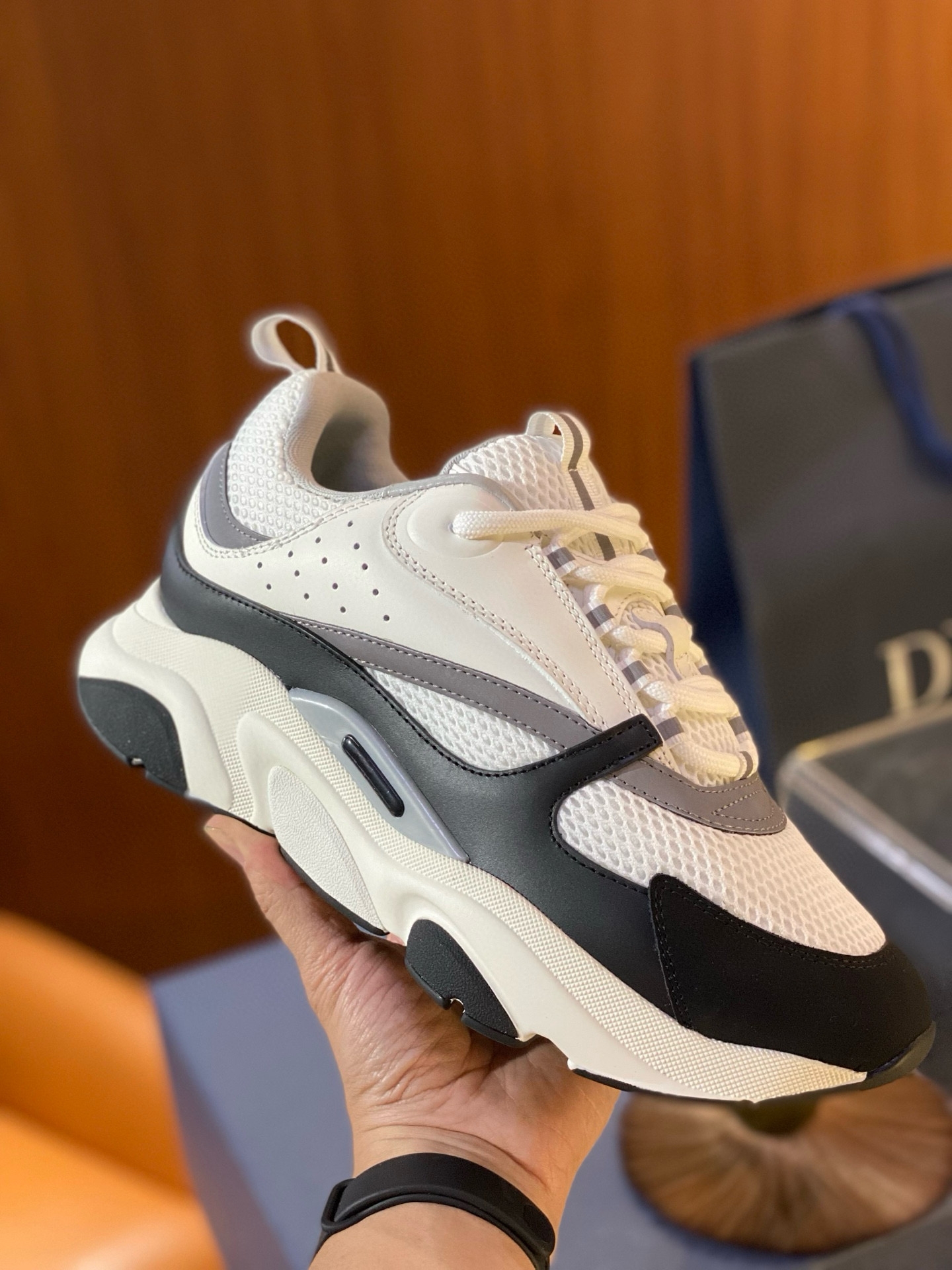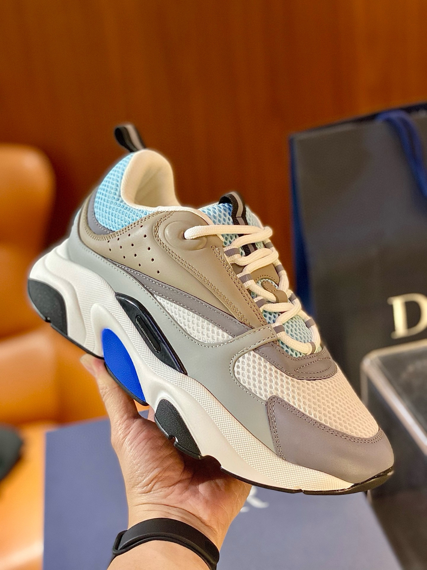 Trendy European and American Genuine Leather Dior B22 Internet-Famous Thick-Soled Height-Increasing Breathable Mesh Casual Sports Dad Shoes for Men and Women