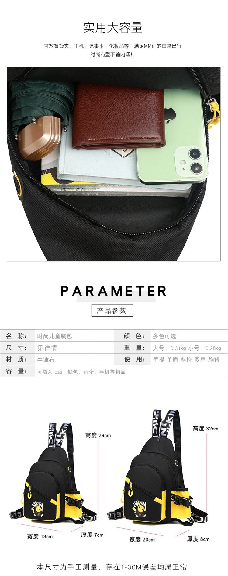 Outdoor Travel Children's Spring Outing Crossbody Bag Small Backpack Girls' Shoulder Bag Boys' Chest Bag Primary School Students' Backpack Trendy