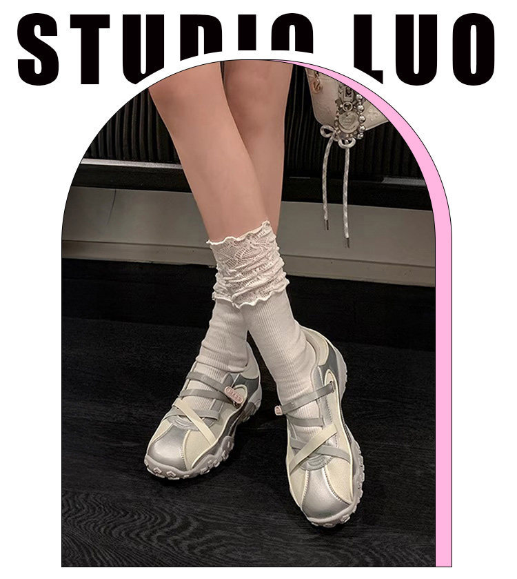 Hong Kong Thick-Soled Round-Toe Cross-Strap Sneakers for Women 2026 Spring and Summer New Casual Mary Jane Shoes Ballet-Style Sandals