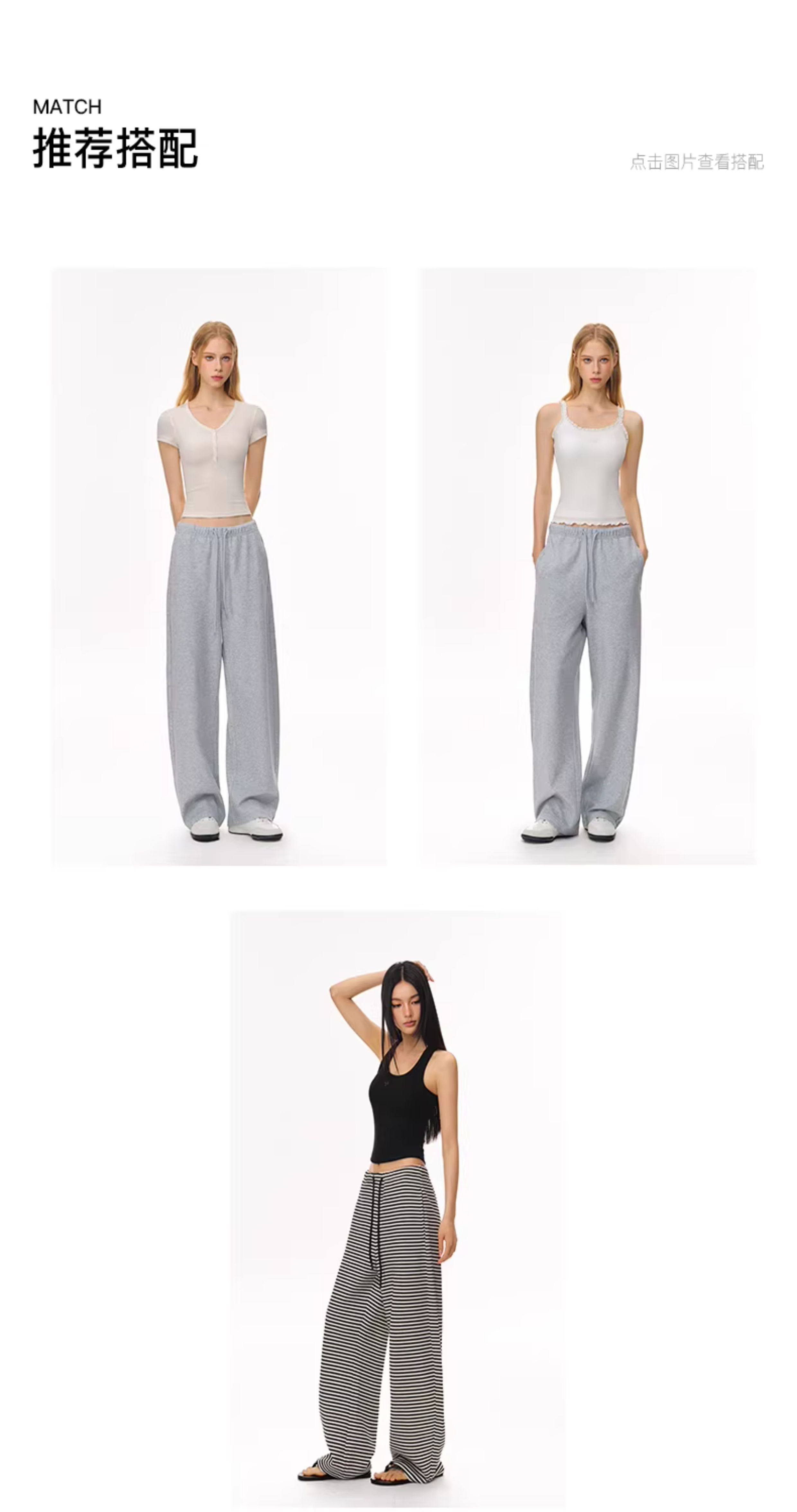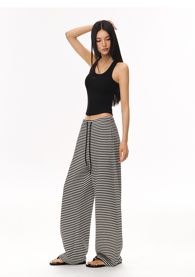 Climax Vision Lightweight and Elastic Air Layer Striped Pants/Loose Fit Scimitar Long Pants Sweatpants for Women