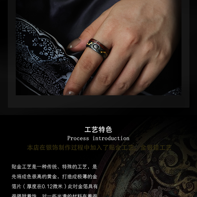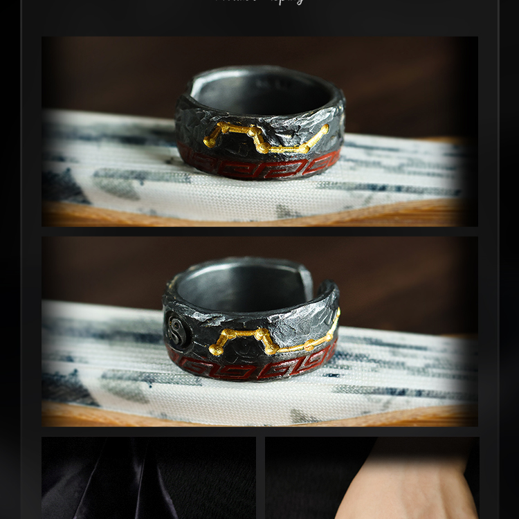 Original Design Xingjin Pure Silver Ring, Pure Silver Tai Chi Ring, Index Finger Ring, Adjustable Open Ring, New Chinese Style Ring
