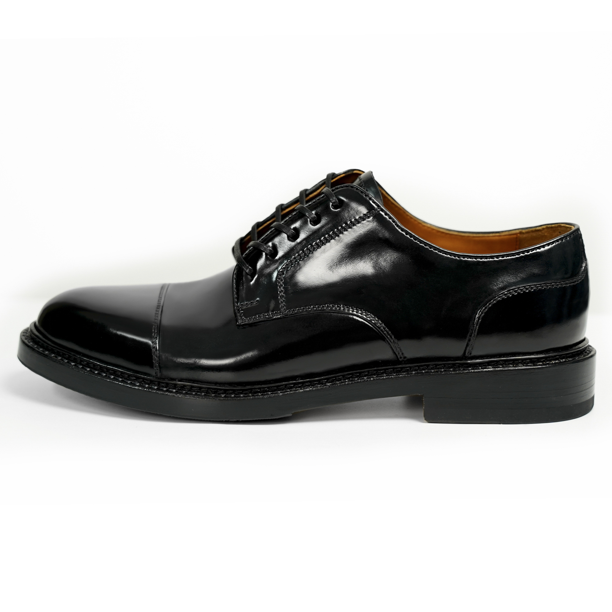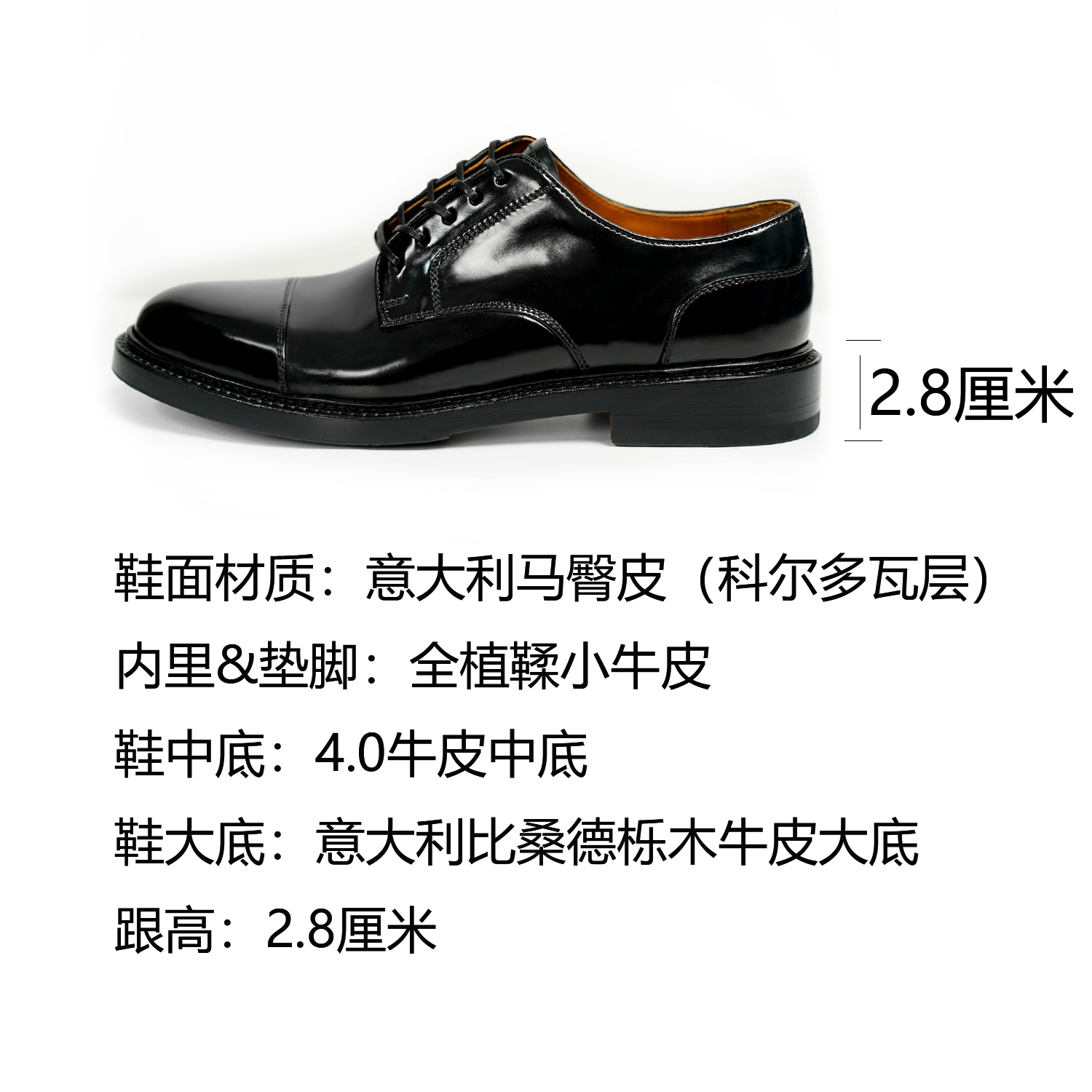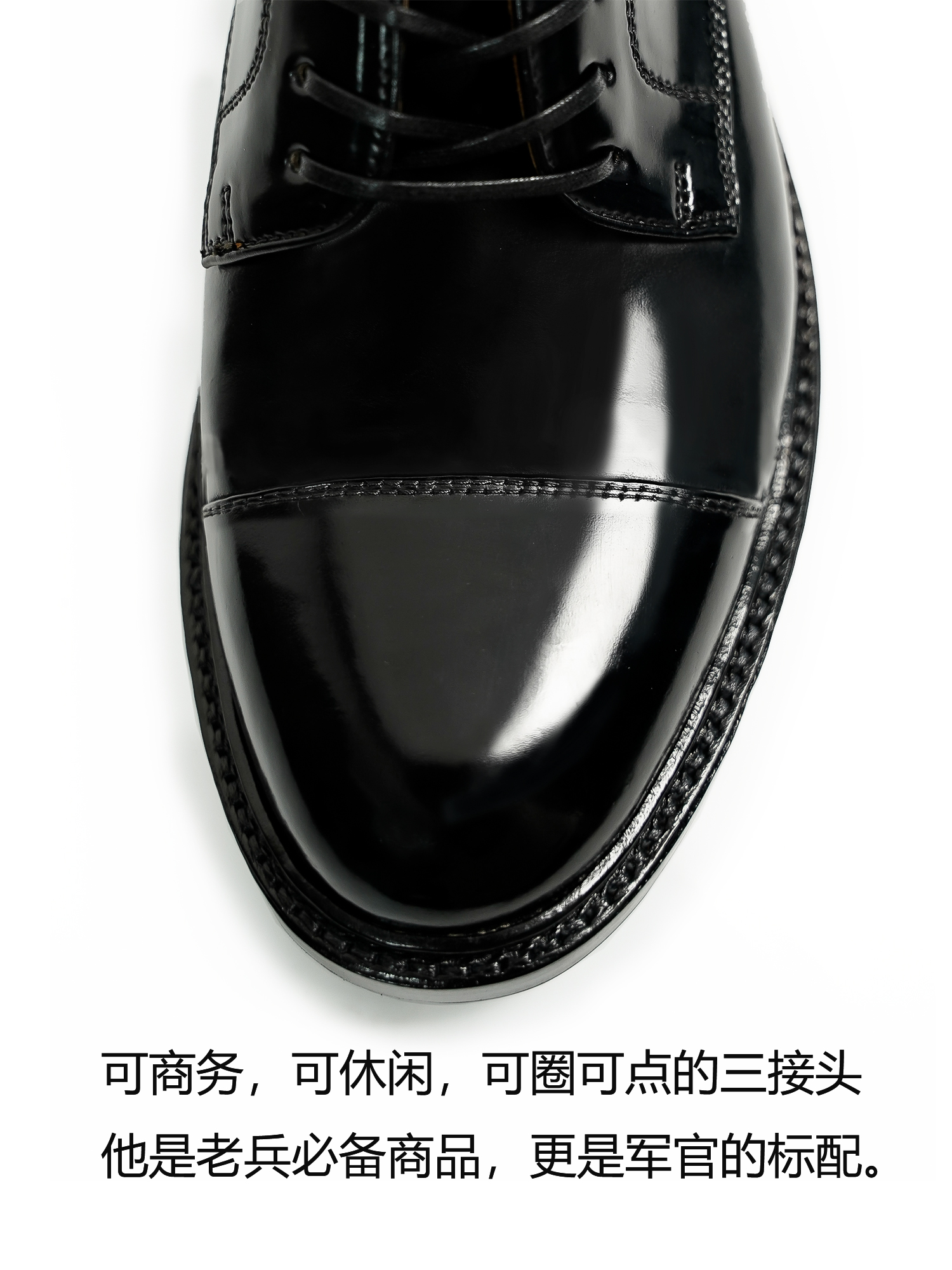 Italian Cordovan Leather Three-Joint Military Men's Leather Shoes Goodyear Handmade Shoes Lace-Up Round Toe Flat Heel Formal Leather Shoes