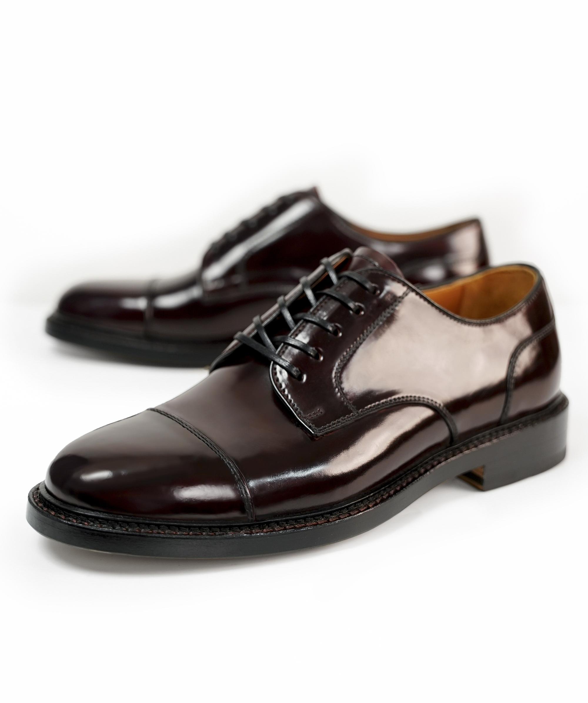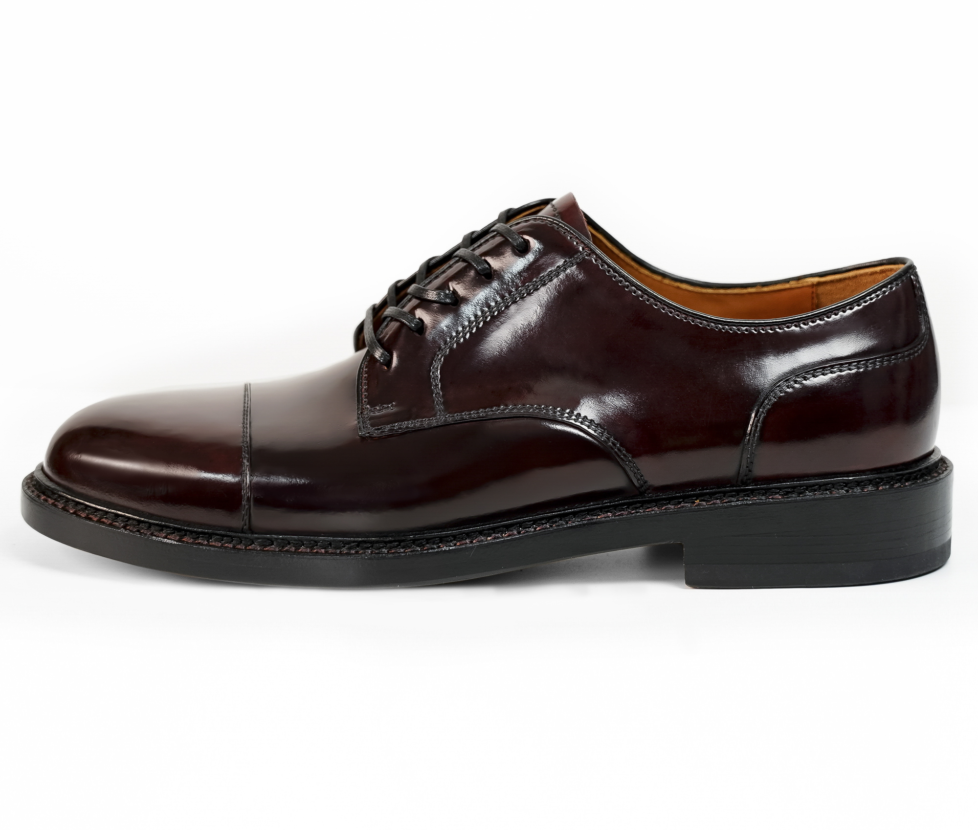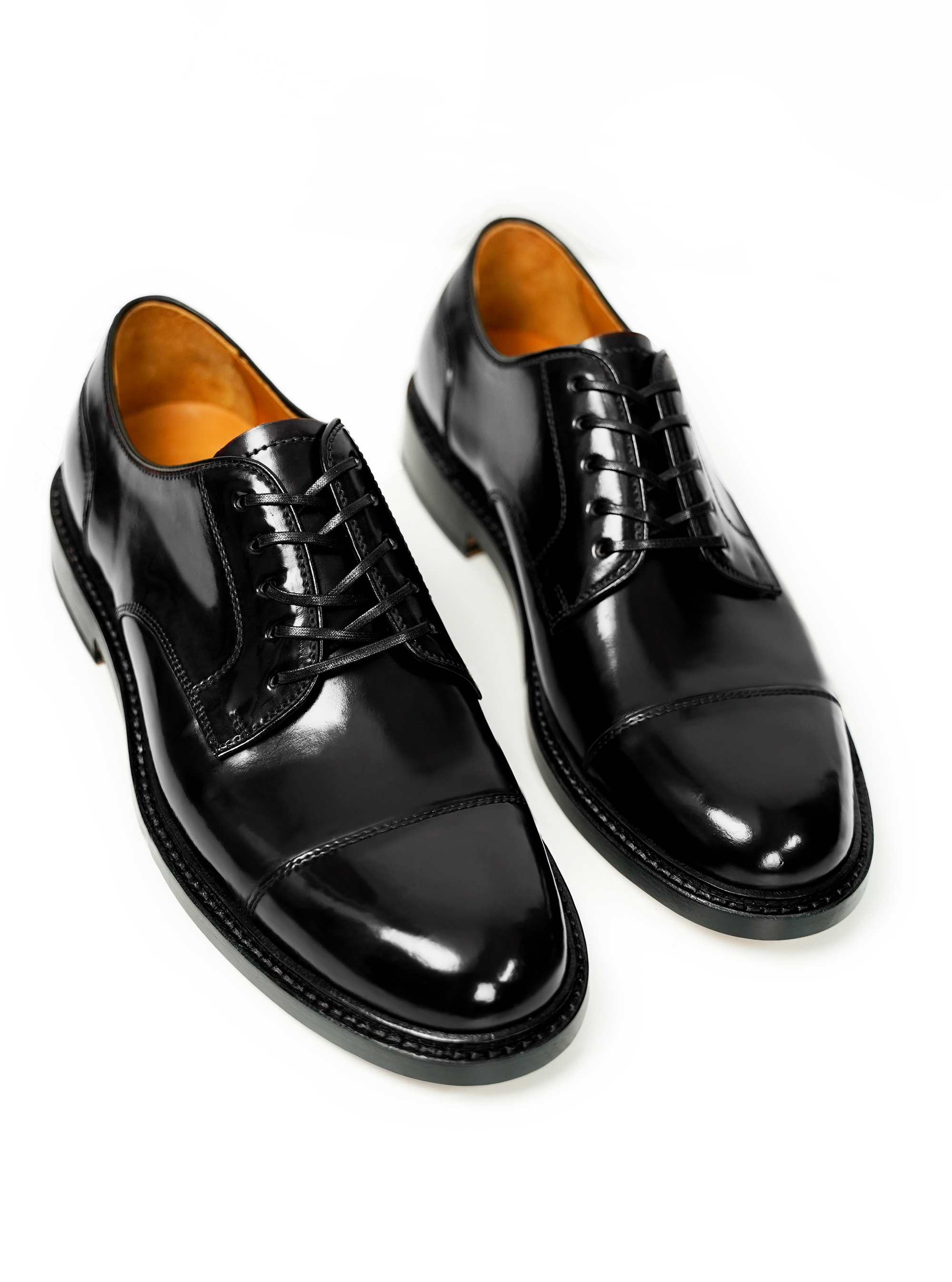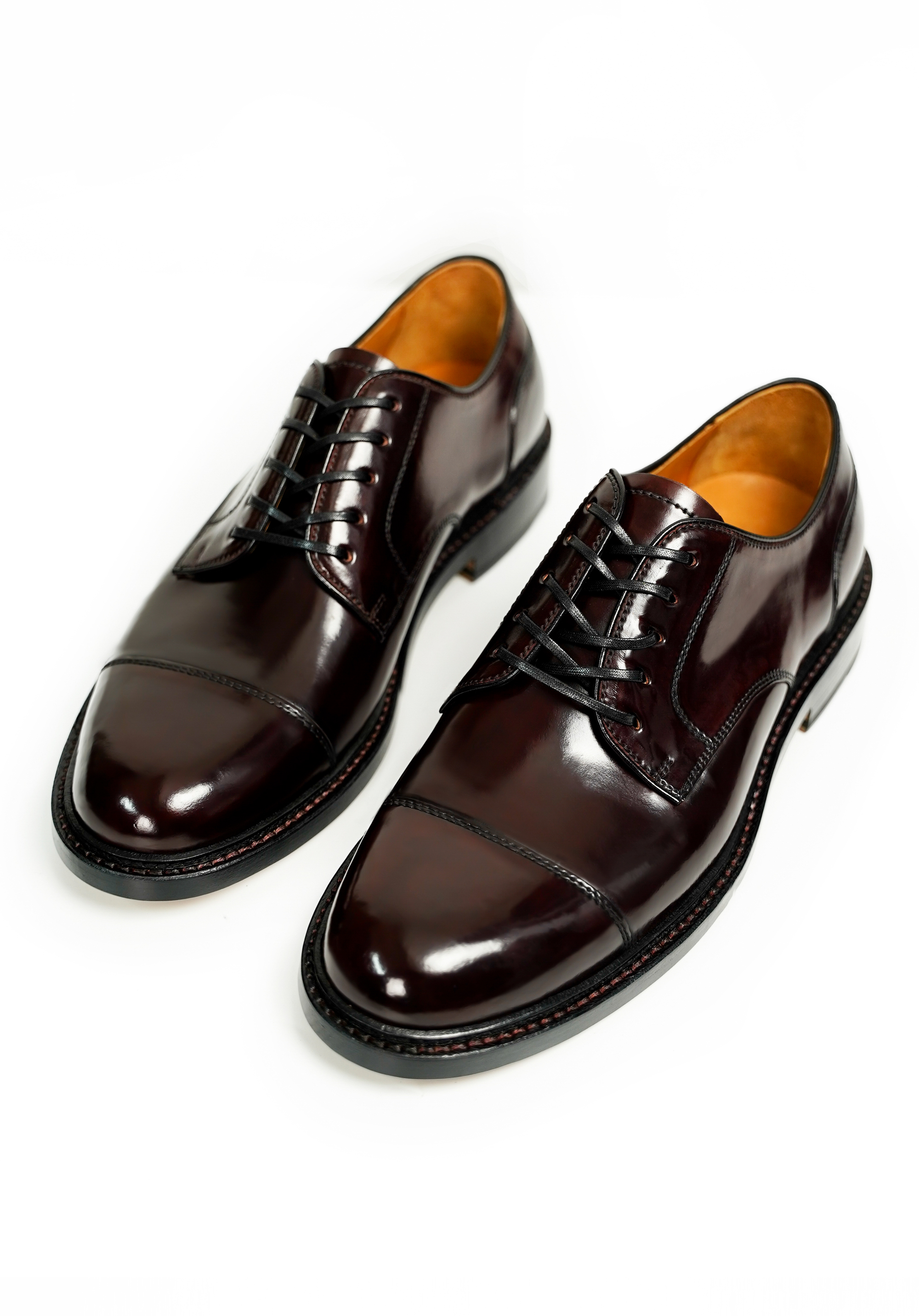 Italian Cordovan Leather Three-Joint Military Men's Leather Shoes Goodyear Handmade Shoes Lace-Up Round Toe Flat Heel Formal Leather Shoes