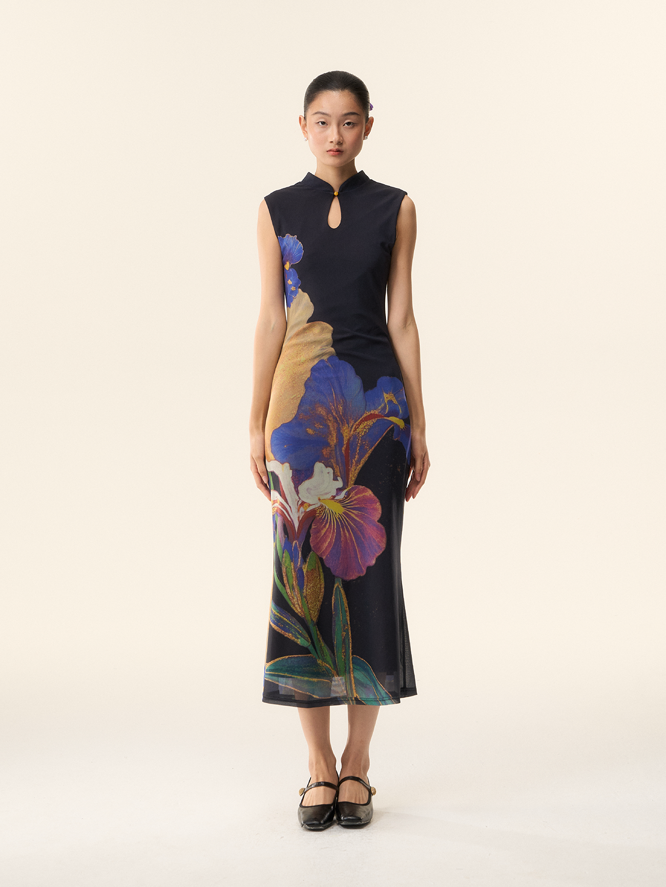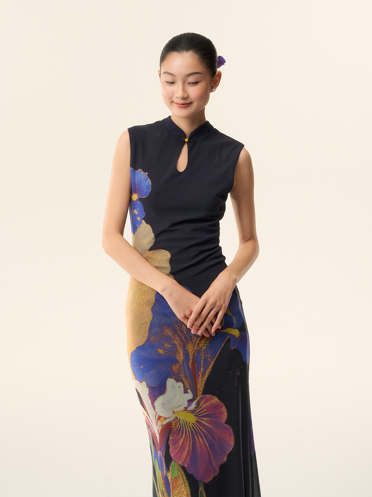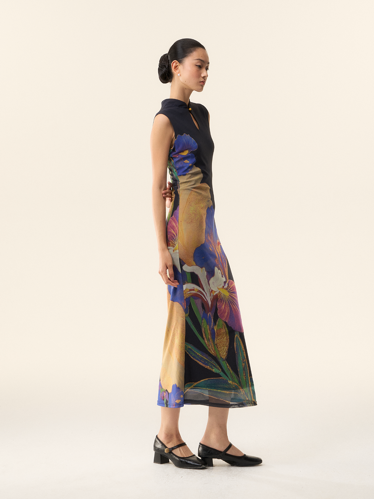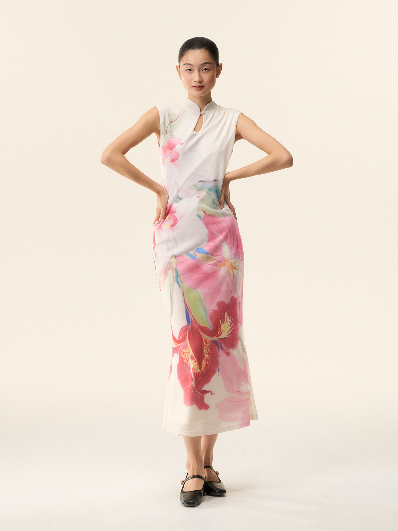 Loumutaku Mengze's "Flowers in Layers and Rhythms" New Chinese-Style Reversible Floral Color-Blocking Cheongsam Dress for Women