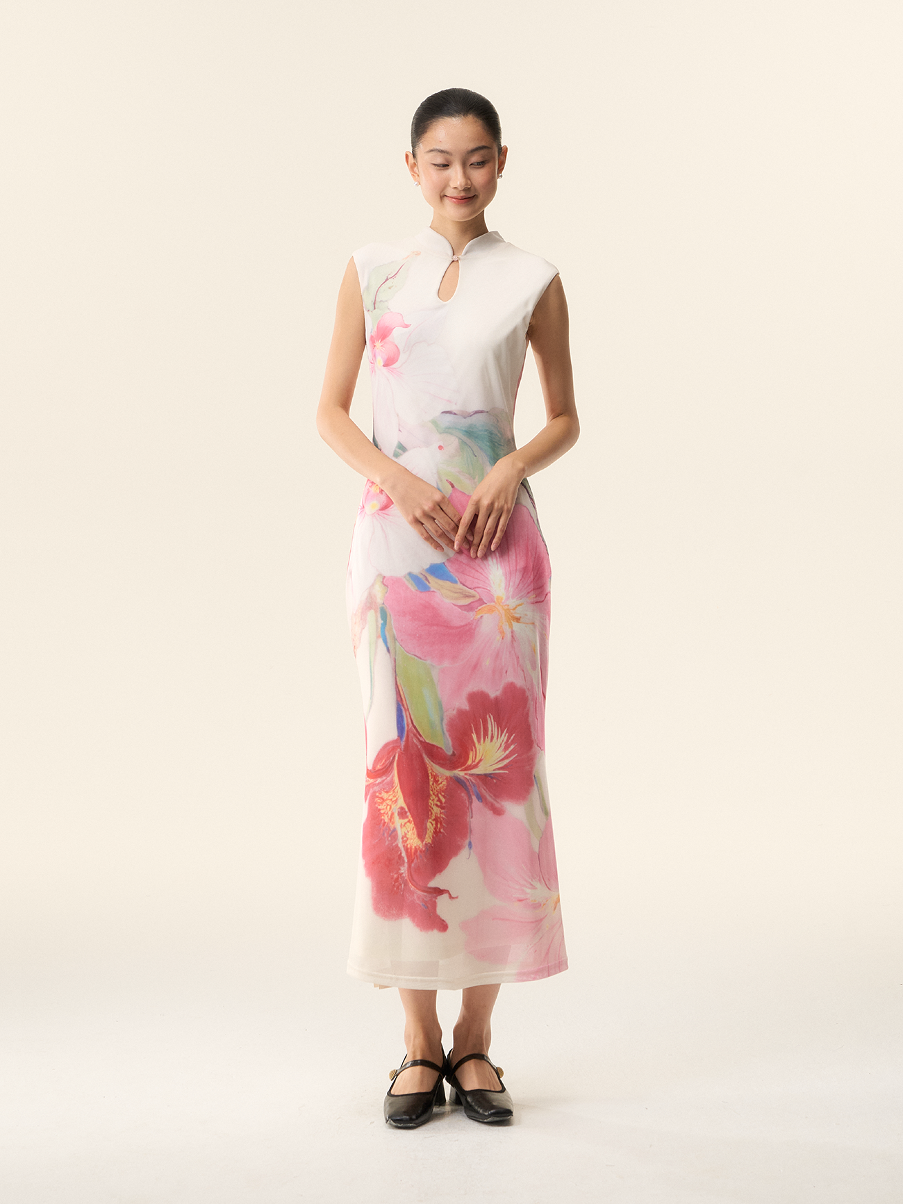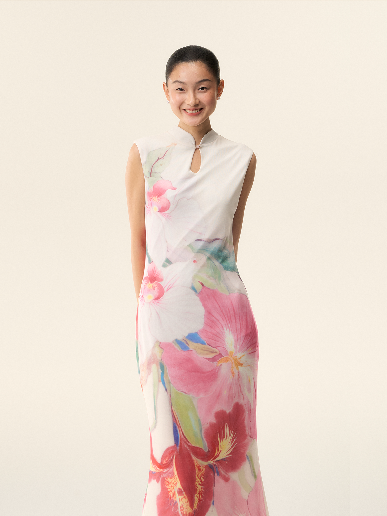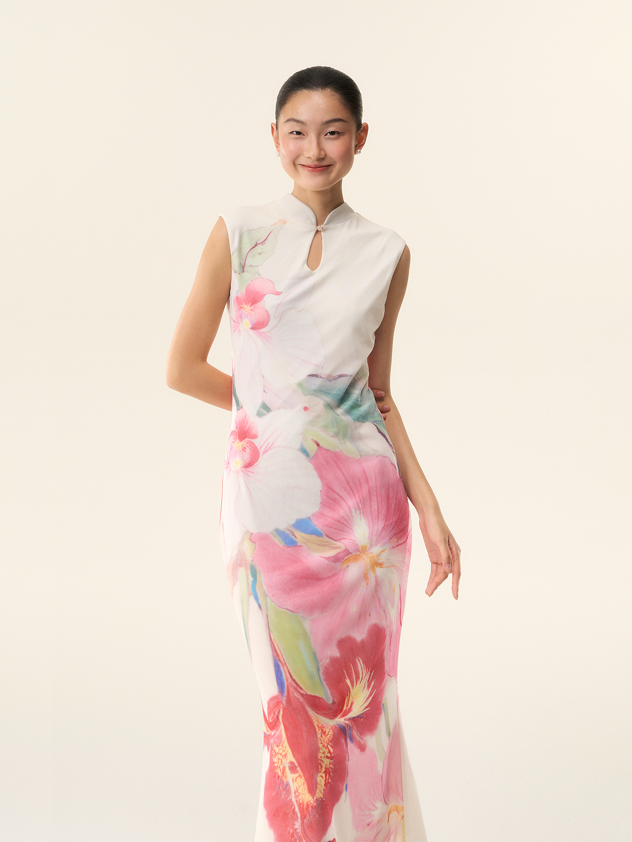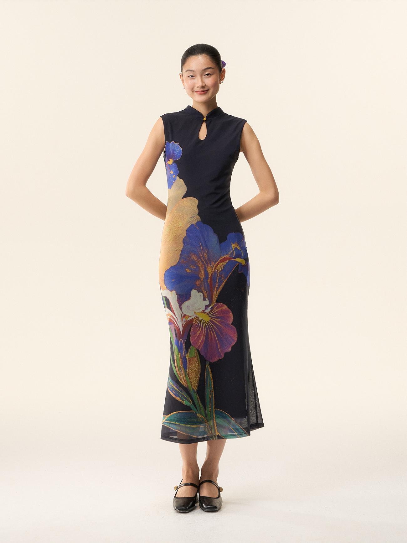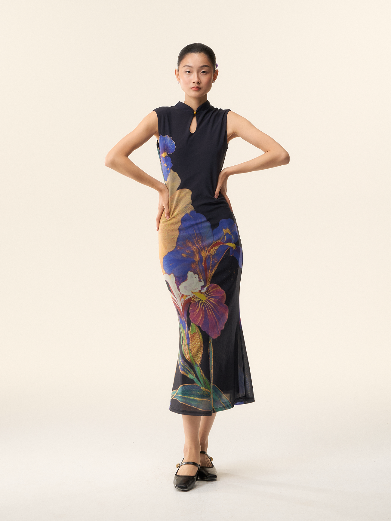 Loumutaku Mengze's "Flowers in Layers and Rhythms" New Chinese-Style Reversible Floral Color-Blocking Cheongsam Dress for Women