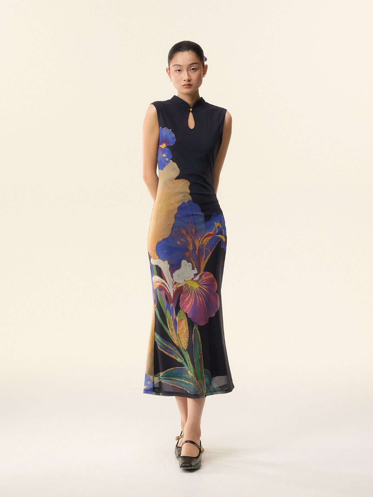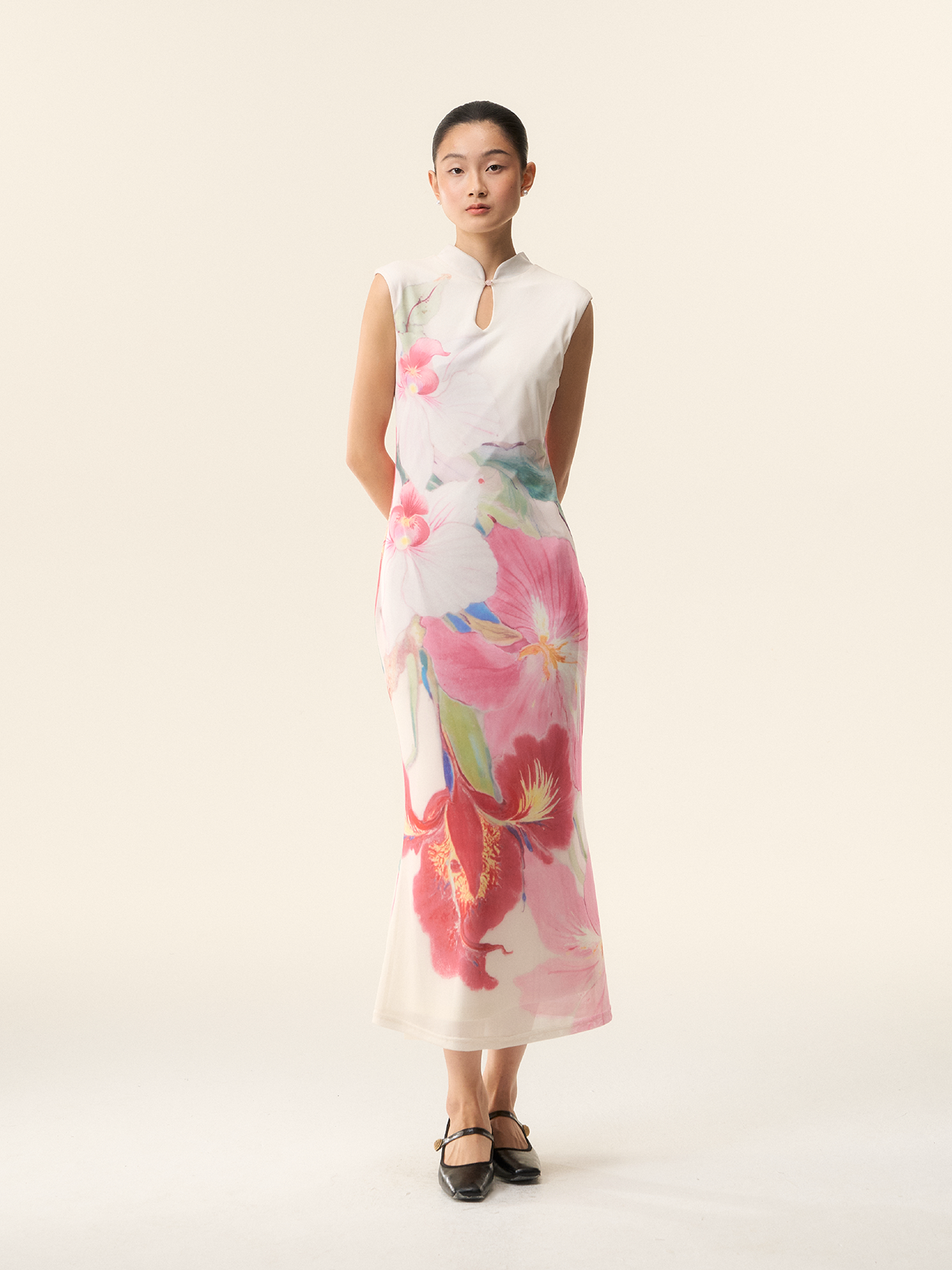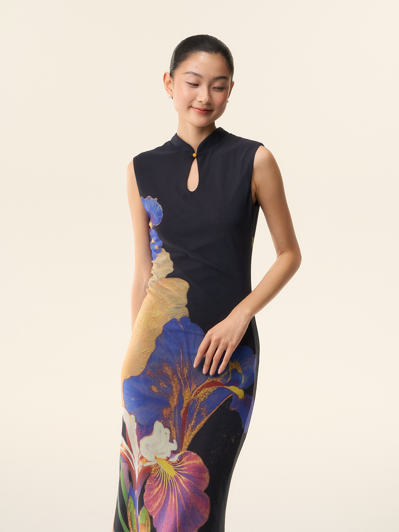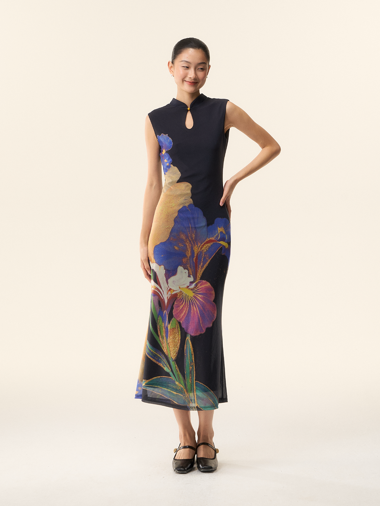 Loumutaku Mengze's "Flowers in Layers and Rhythms" New Chinese-Style Reversible Floral Color-Blocking Cheongsam Dress for Women
