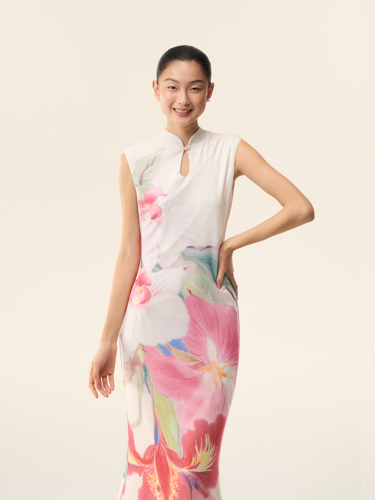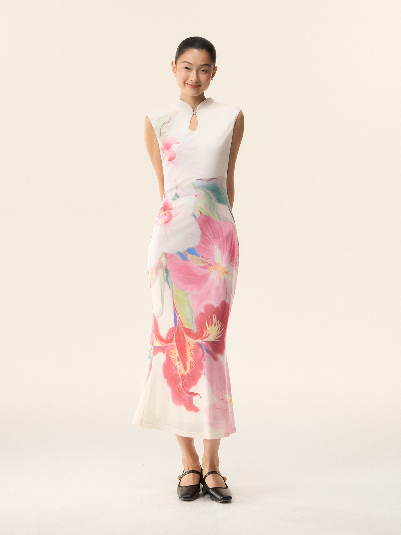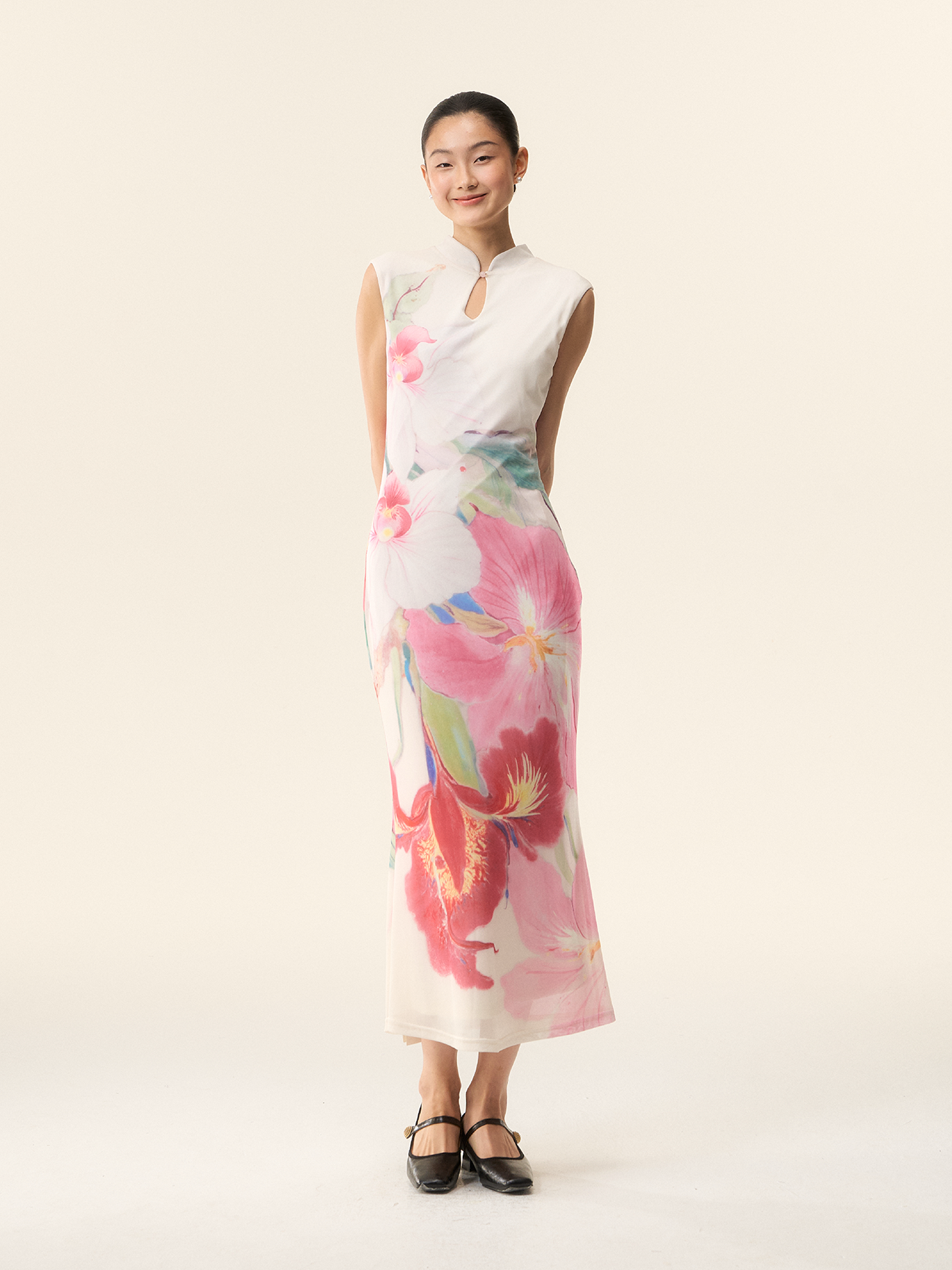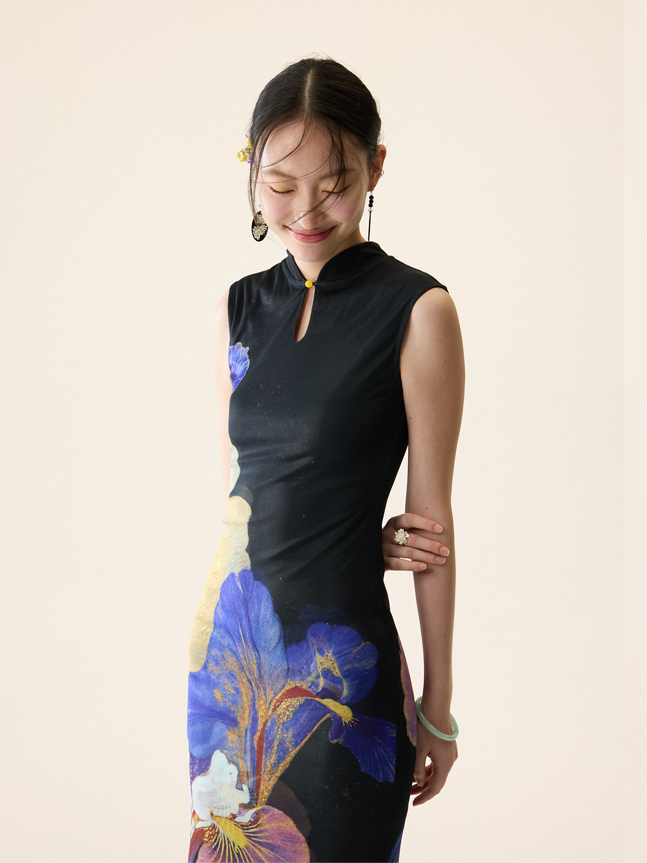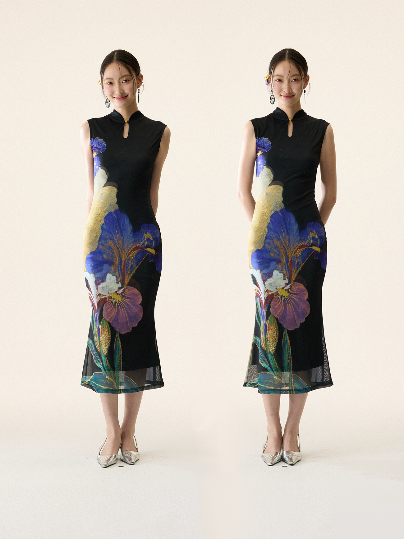 Loumutaku Mengze's "Flowers in Layers and Rhythms" New Chinese-Style Reversible Floral Color-Blocking Cheongsam Dress for Women