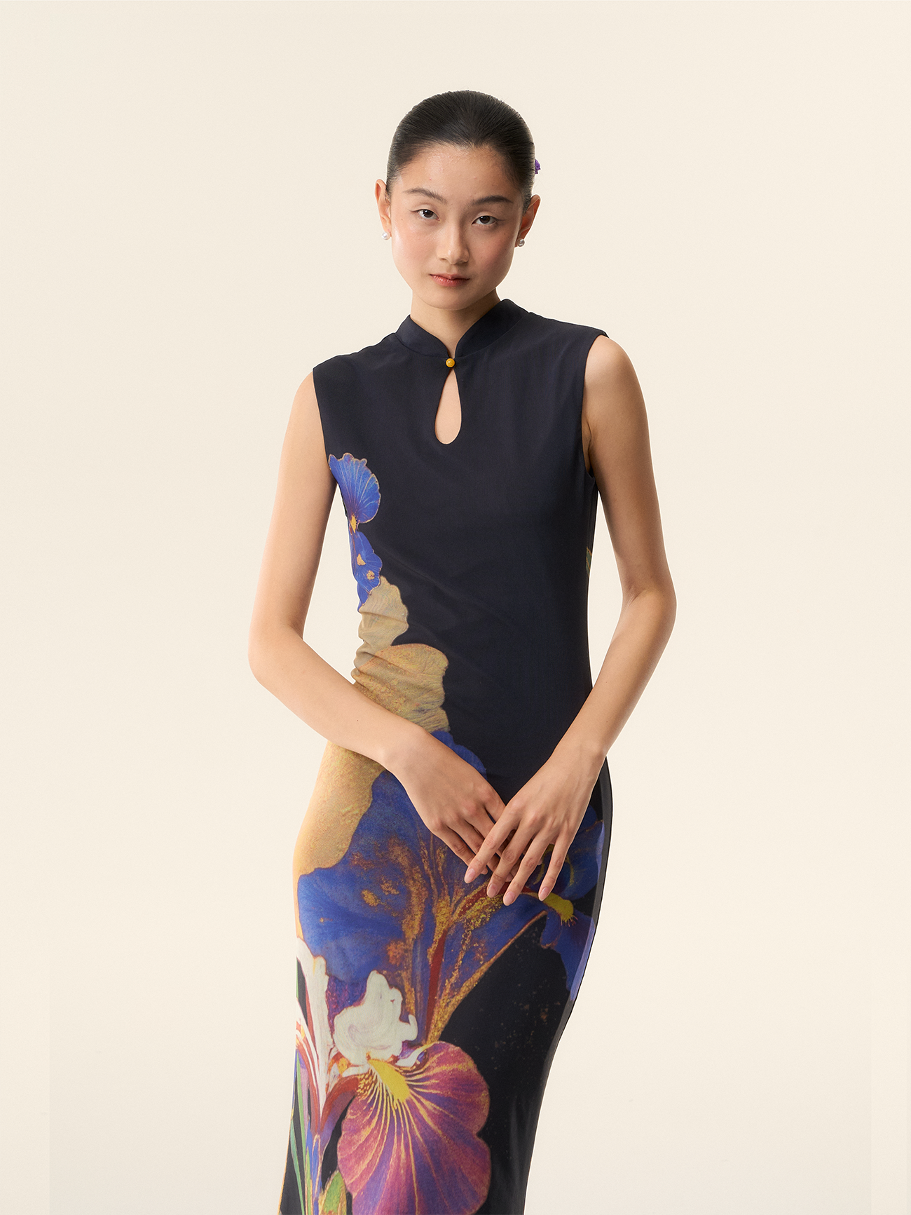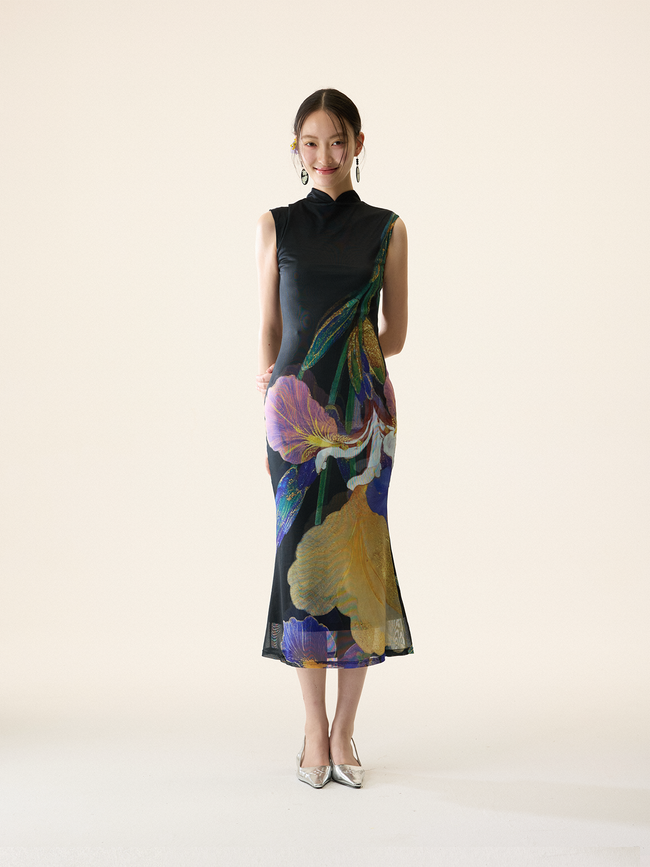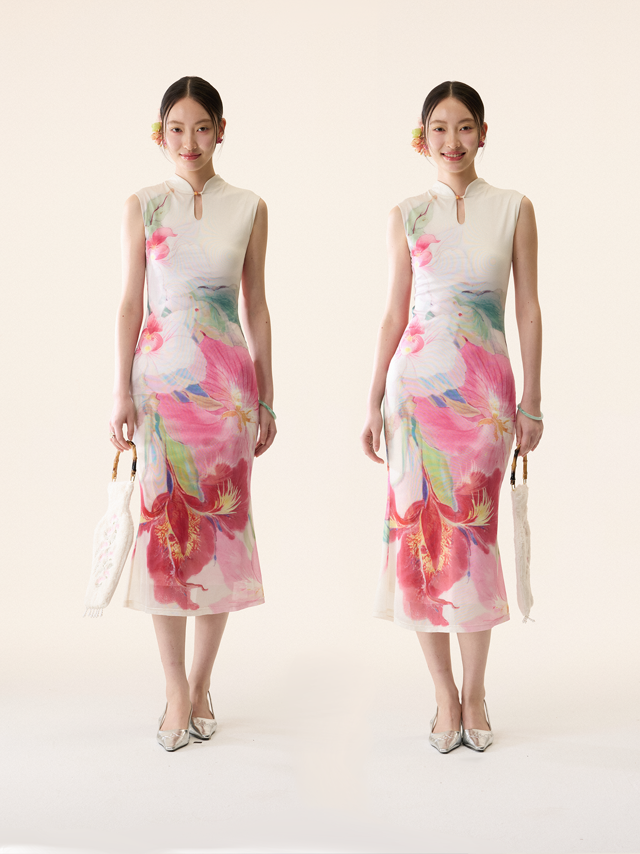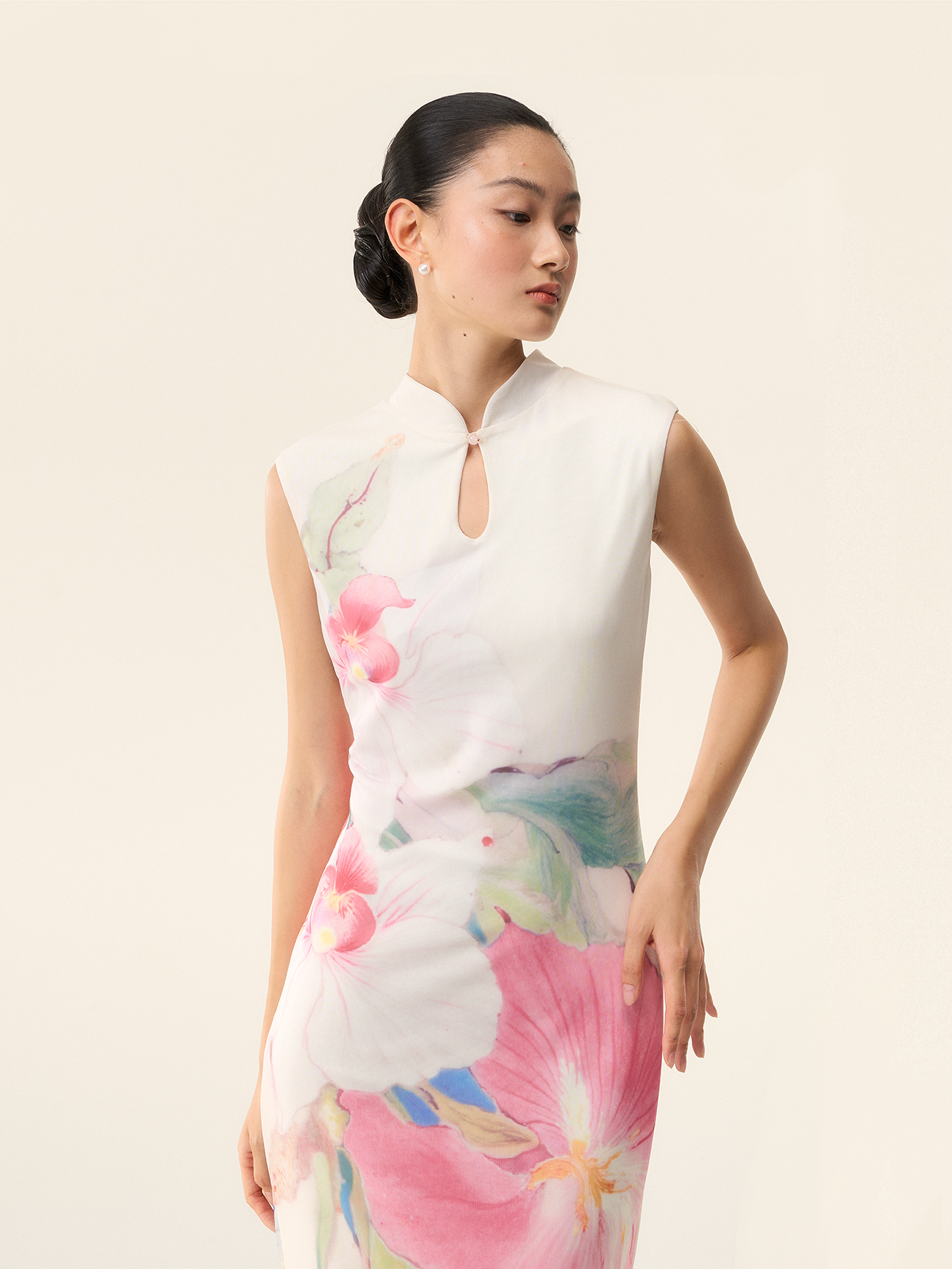 Loumutaku Mengze's "Flowers in Layers and Rhythms" New Chinese-Style Reversible Floral Color-Blocking Cheongsam Dress for Women