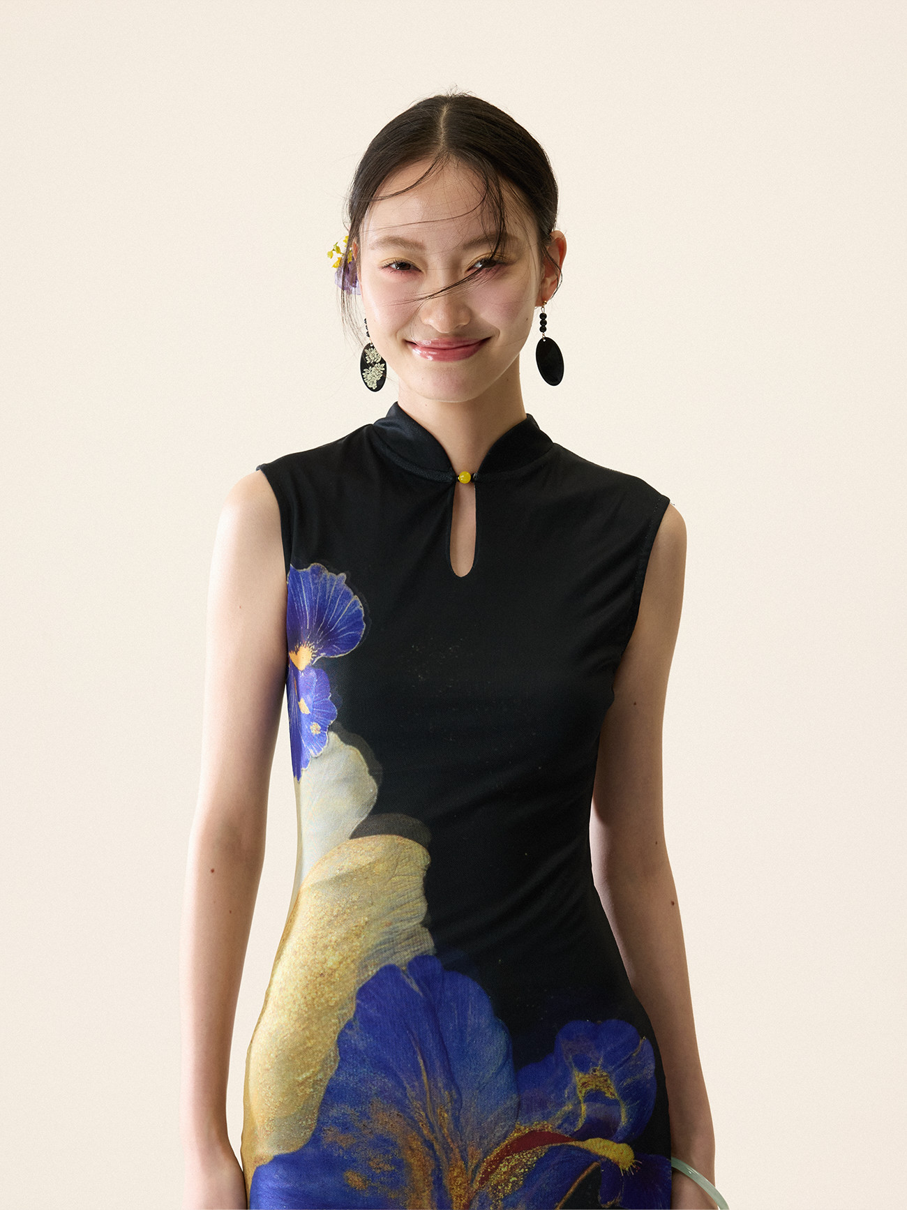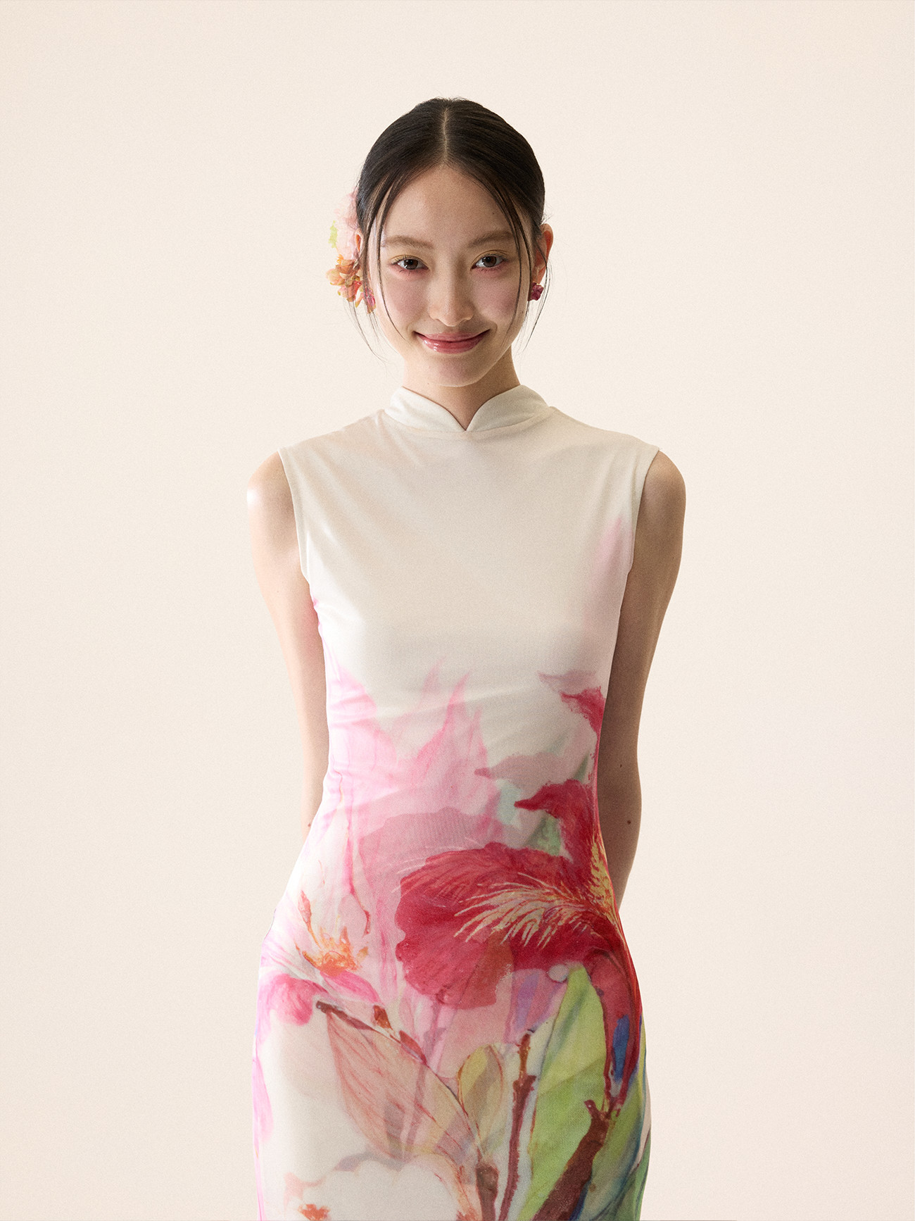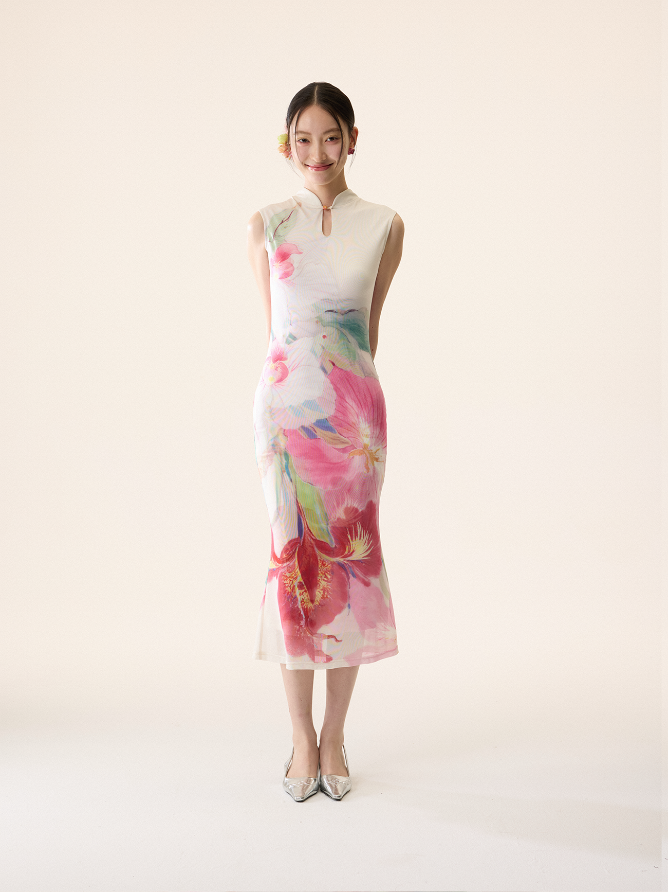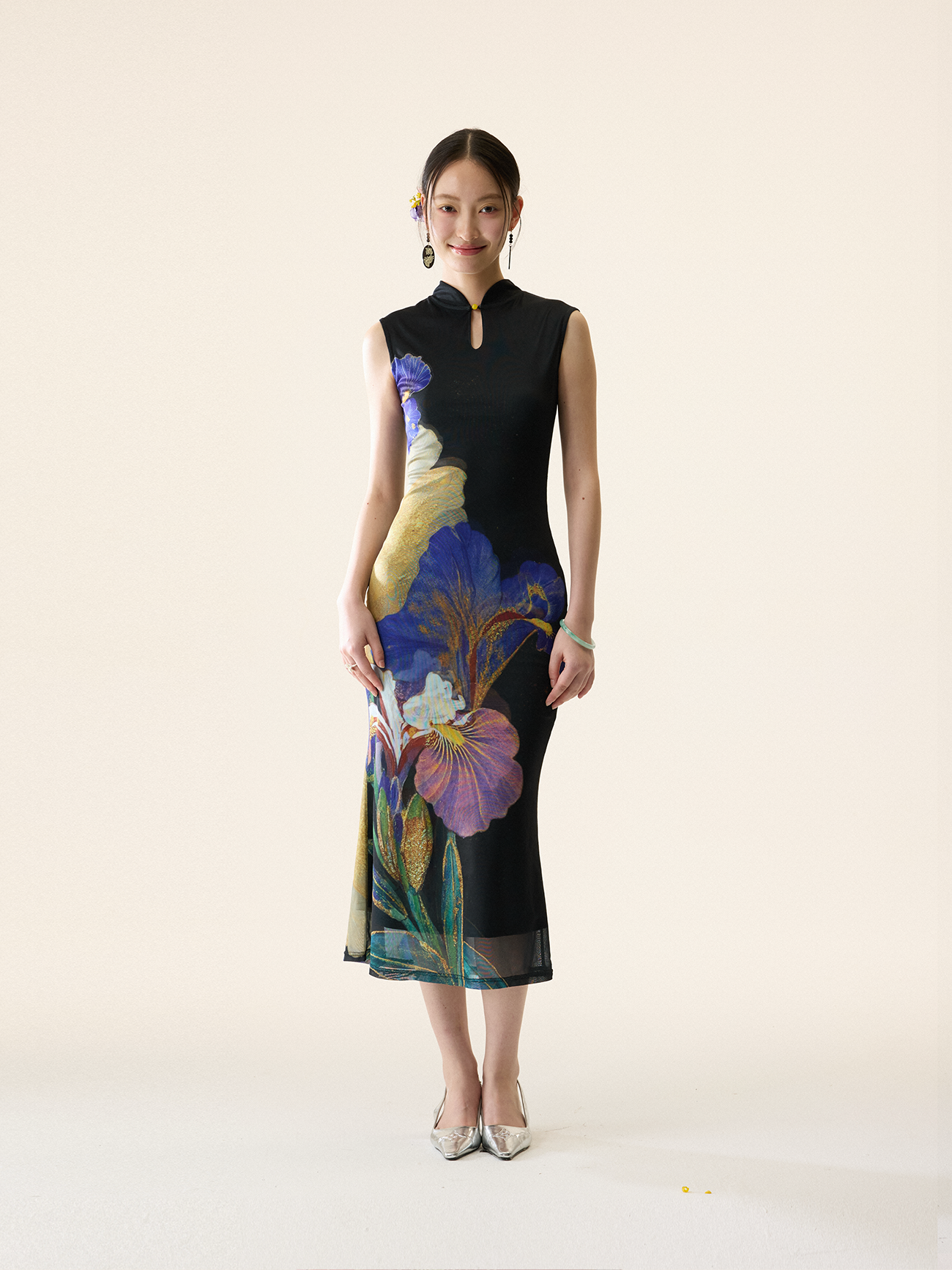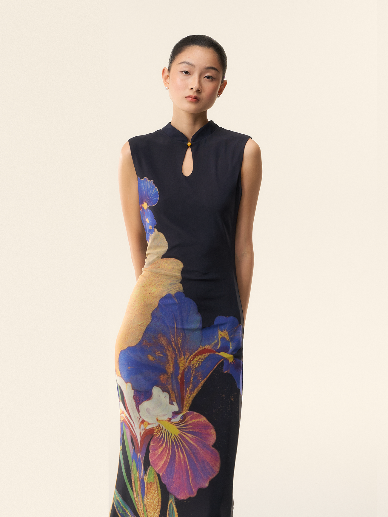 Loumutaku Mengze's "Flowers in Layers and Rhythms" New Chinese-Style Reversible Floral Color-Blocking Cheongsam Dress for Women