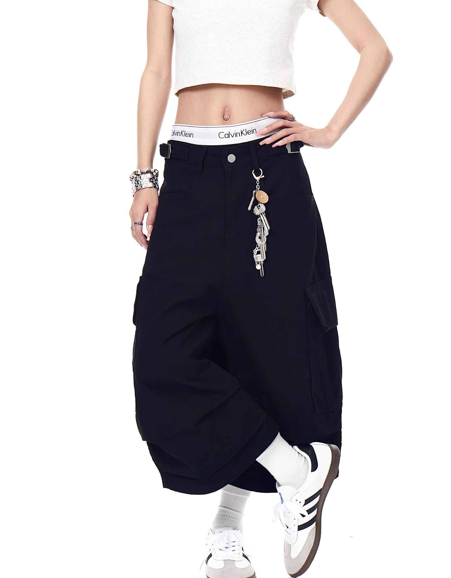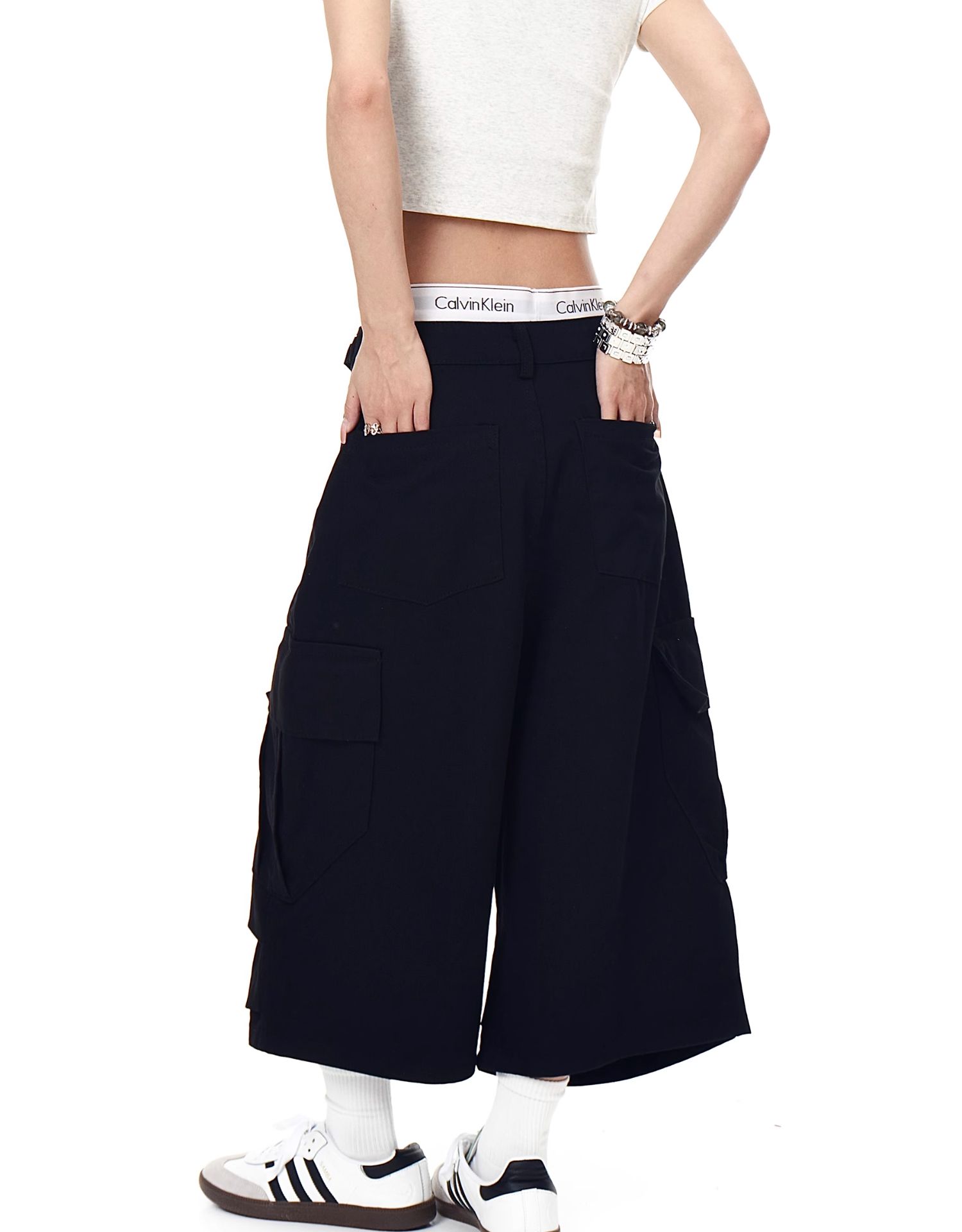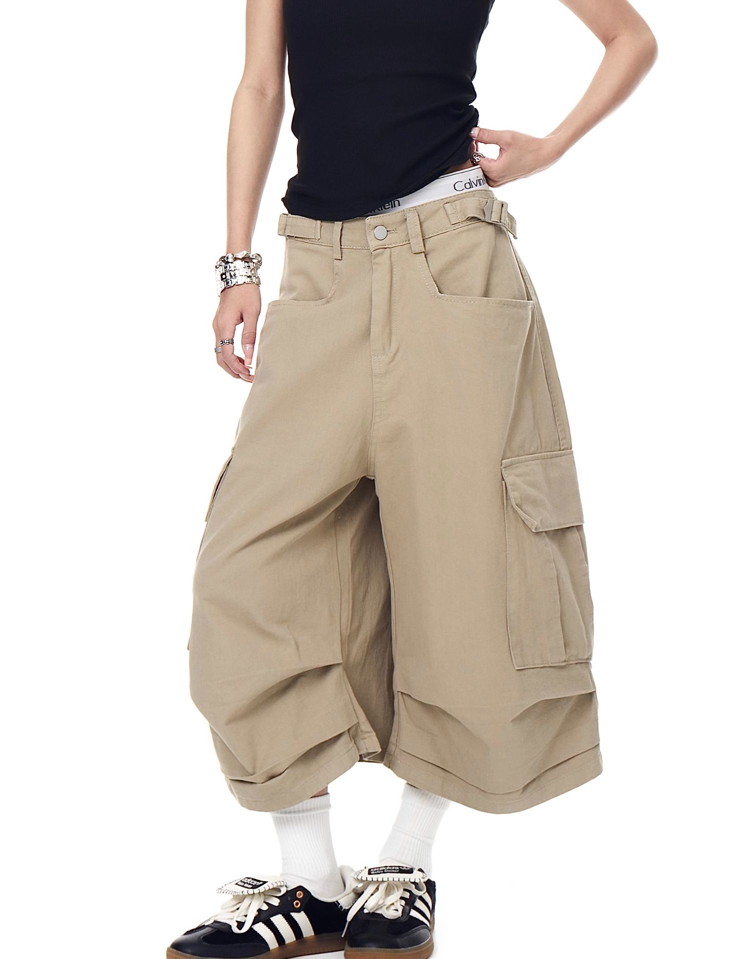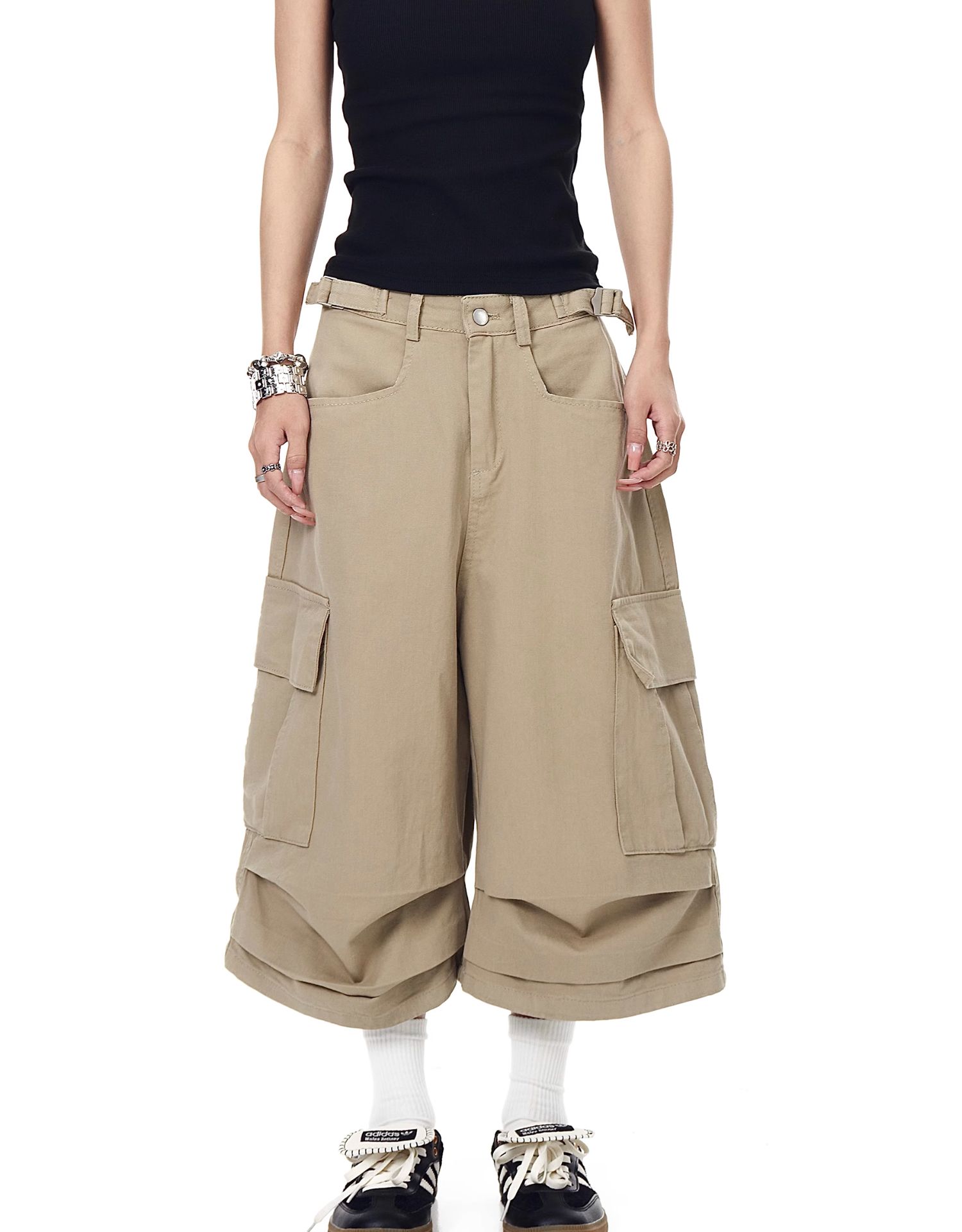 Blacklists American Retro Pleated Multi-Pocket Cargo Shorts for Men and Women, Summer Loose Wide-Leg Cropped Pants Trendy