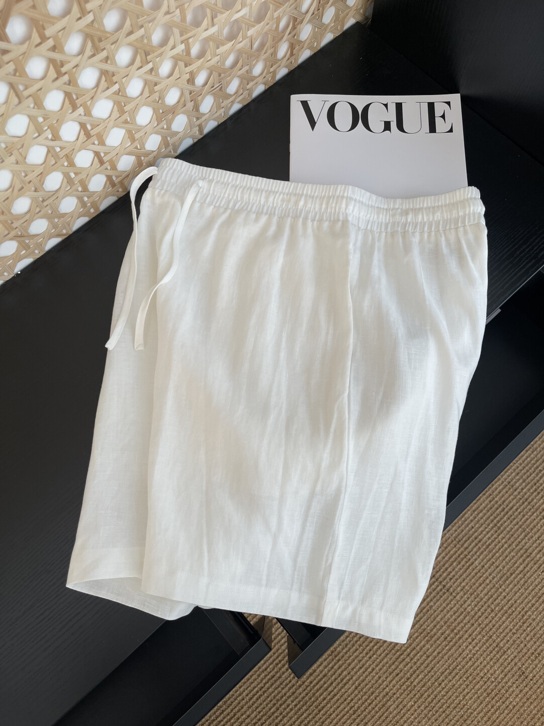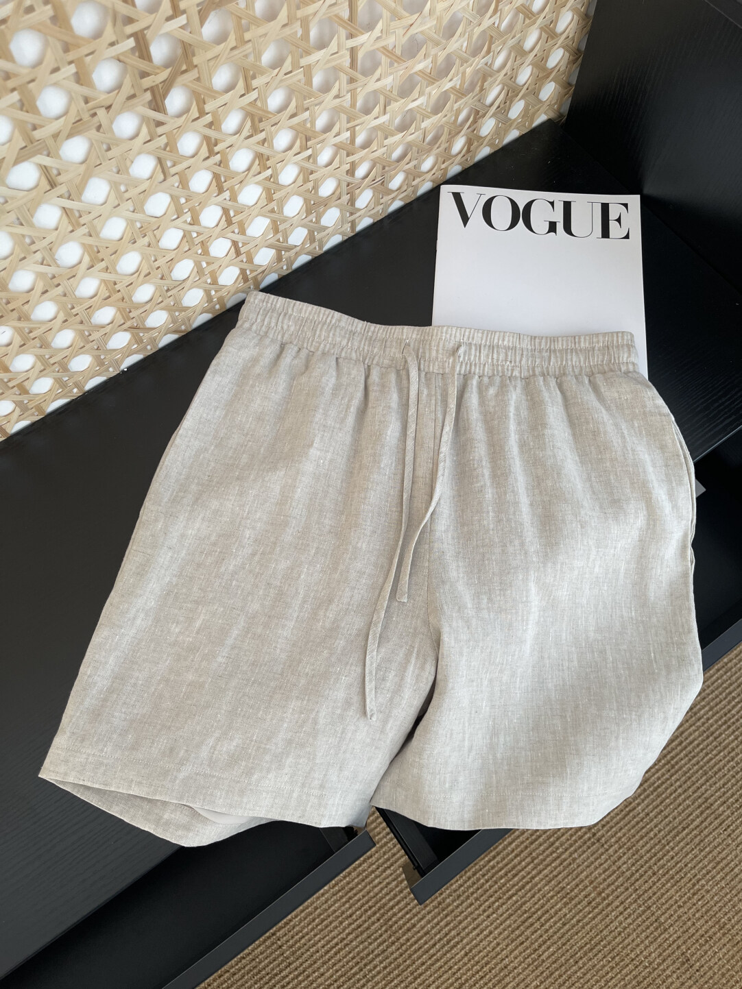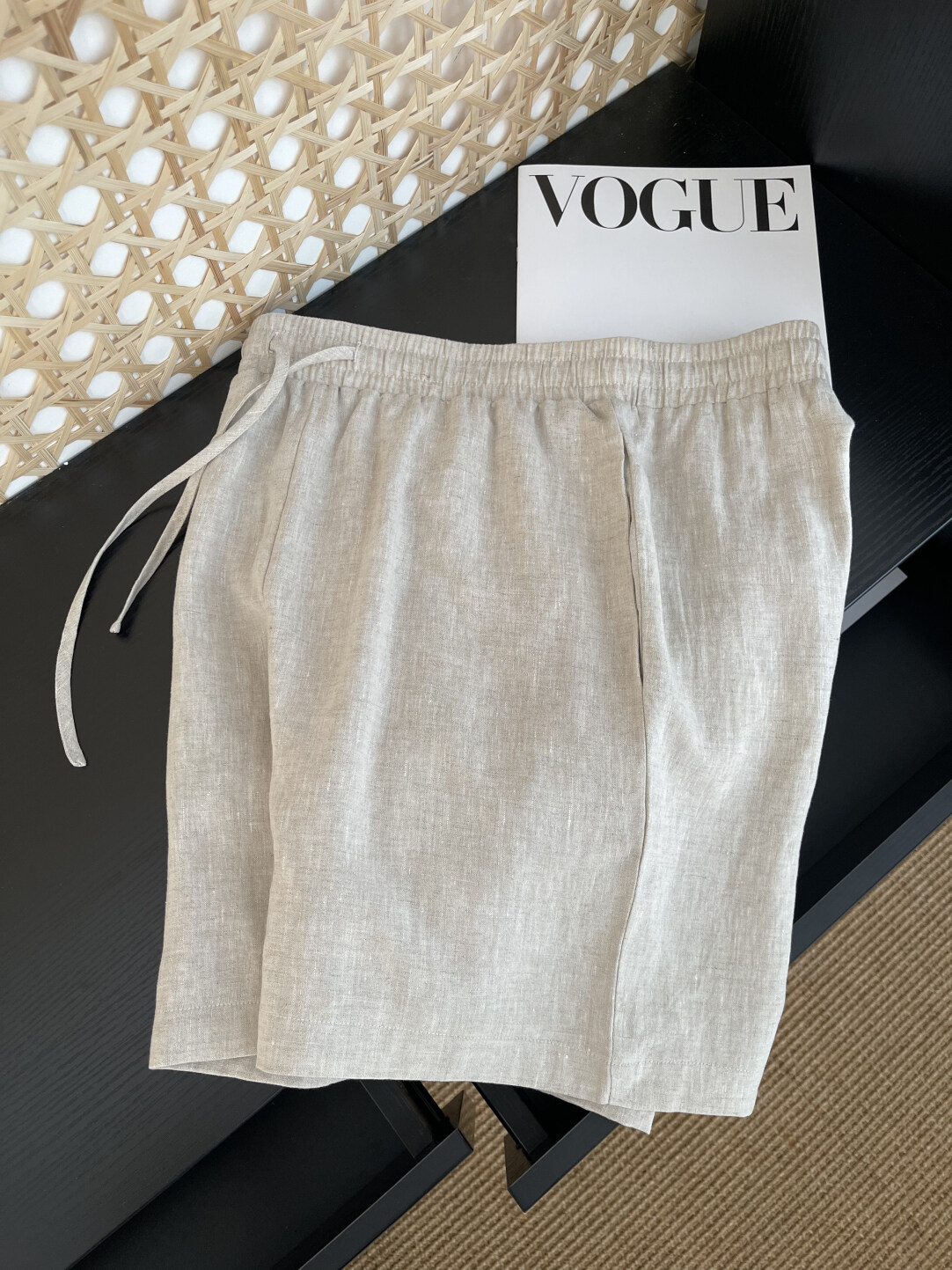 Old Money Style Khaki Linen Breathable Cool Casual Shorts Men's Summer Thin Tencel Five-Point Pants Straight Mid-Pants