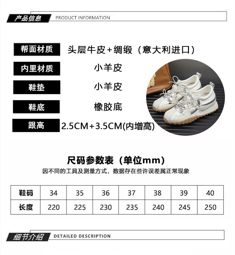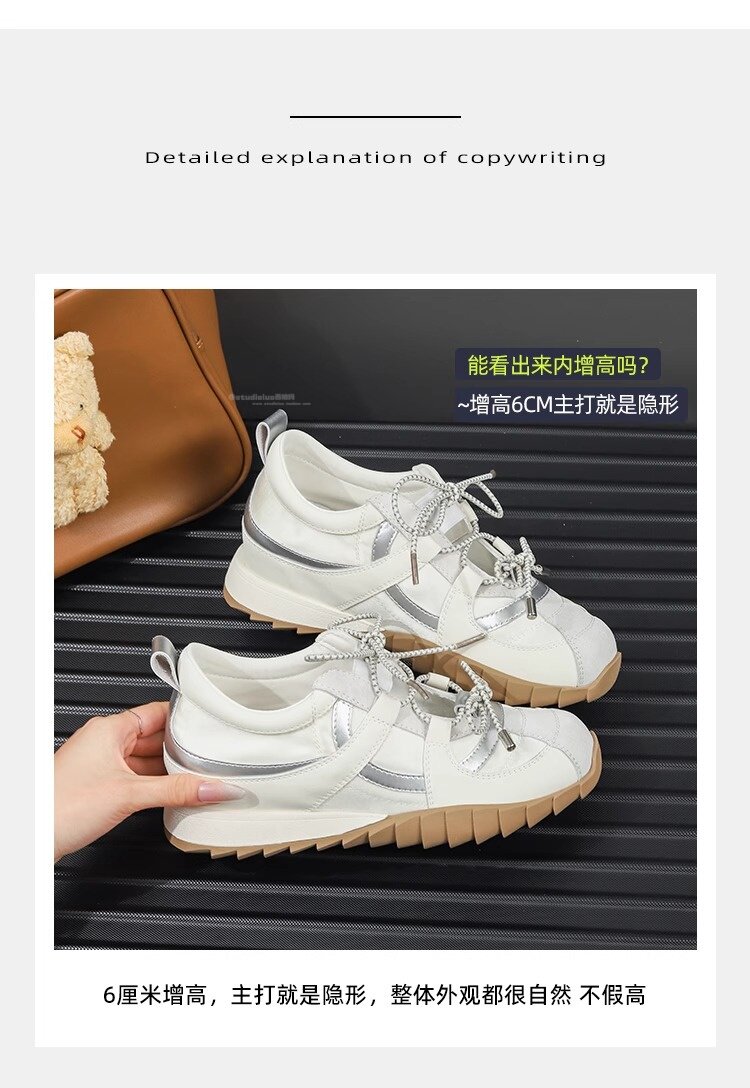 Hong Kong Style Height-Increasing Sneakers for Women, 2026 Spring/Summer New Thick-Soled Shallow Sneakers, Casual Running Shoes
