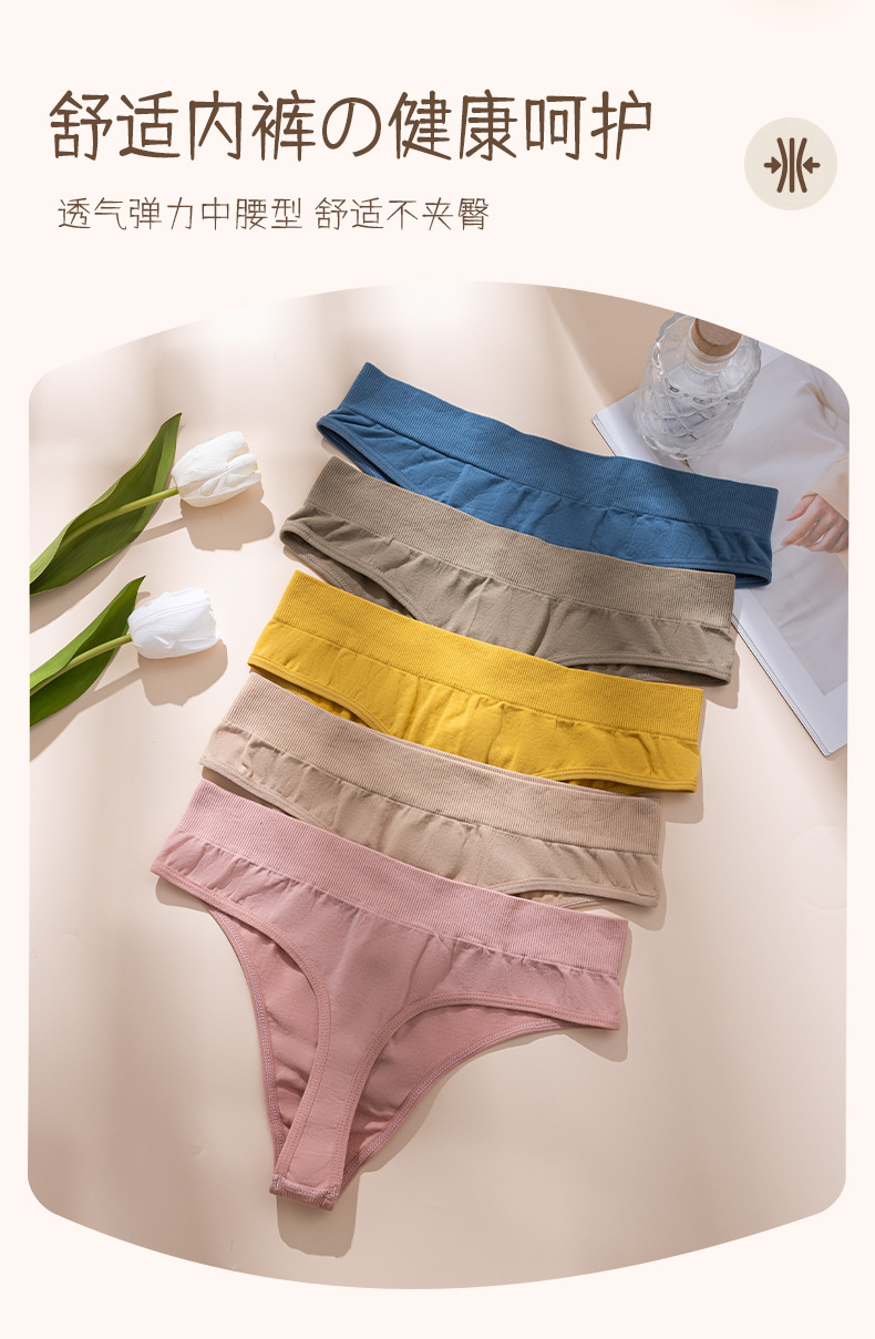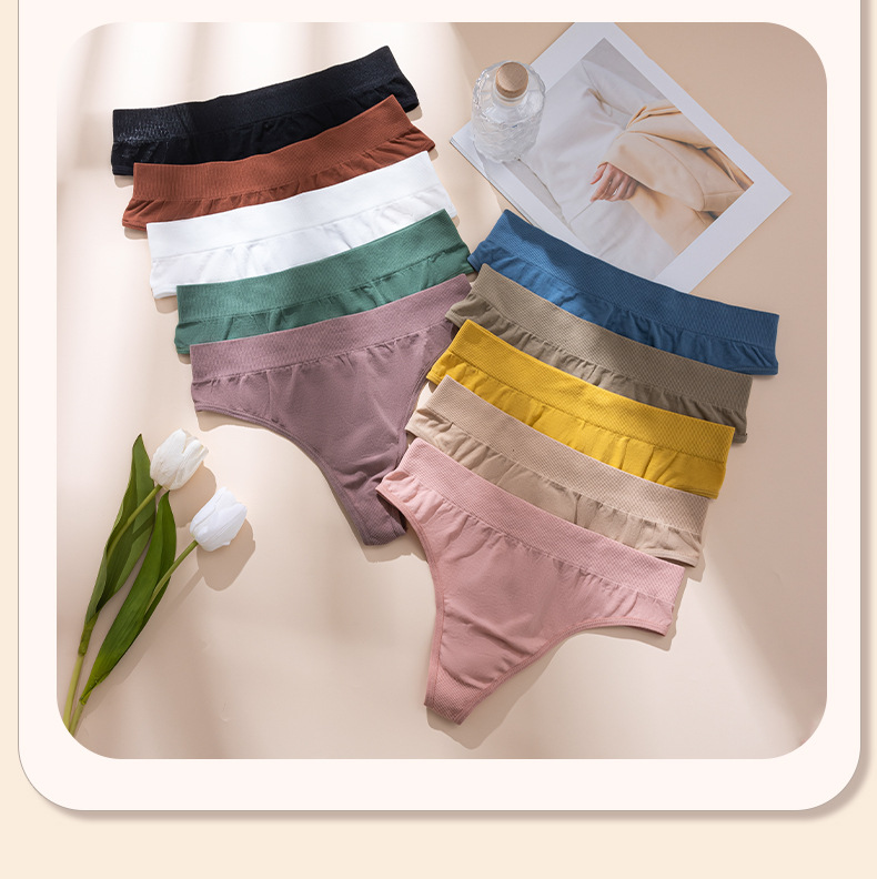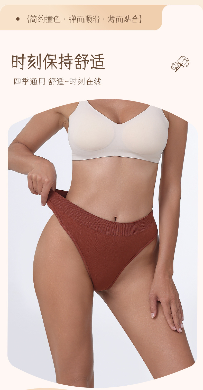 Cross-Border European and American Style T-Back Panties, Sexy Seamless Sports Fitness Wide-Waist Low-Waist Seamless Solid Color Briefs