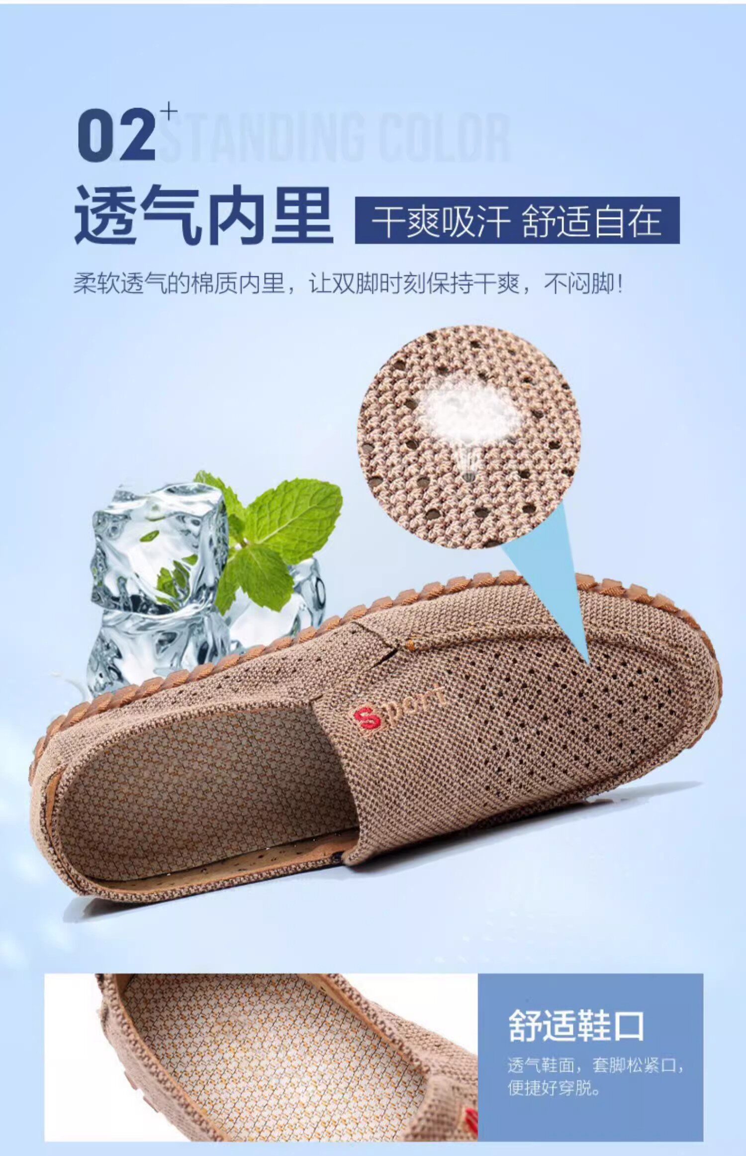 Dragonfly Brand Old Beijing Cloth Shoes for Men, Spring and Summer Mesh Shoes, Breathable Casual Tendon-Soled Soft Sole Men's Shoes, Hollow Canvas Shoes