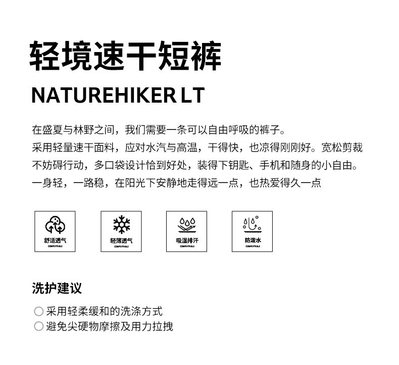 Naturehike Solid Color Quick-Drying Shorts 2025 Summer Men's Outdoor Hiking Sports Casual Shorts