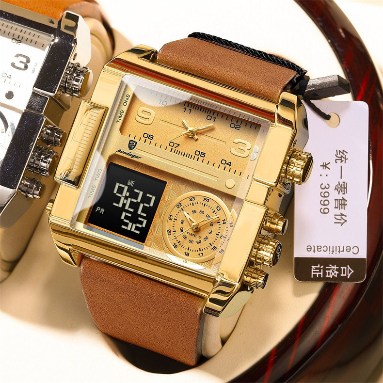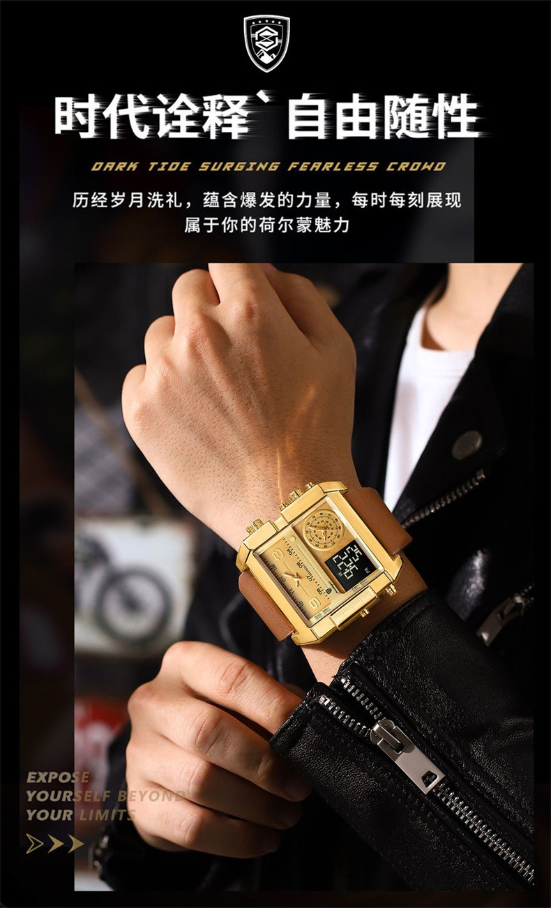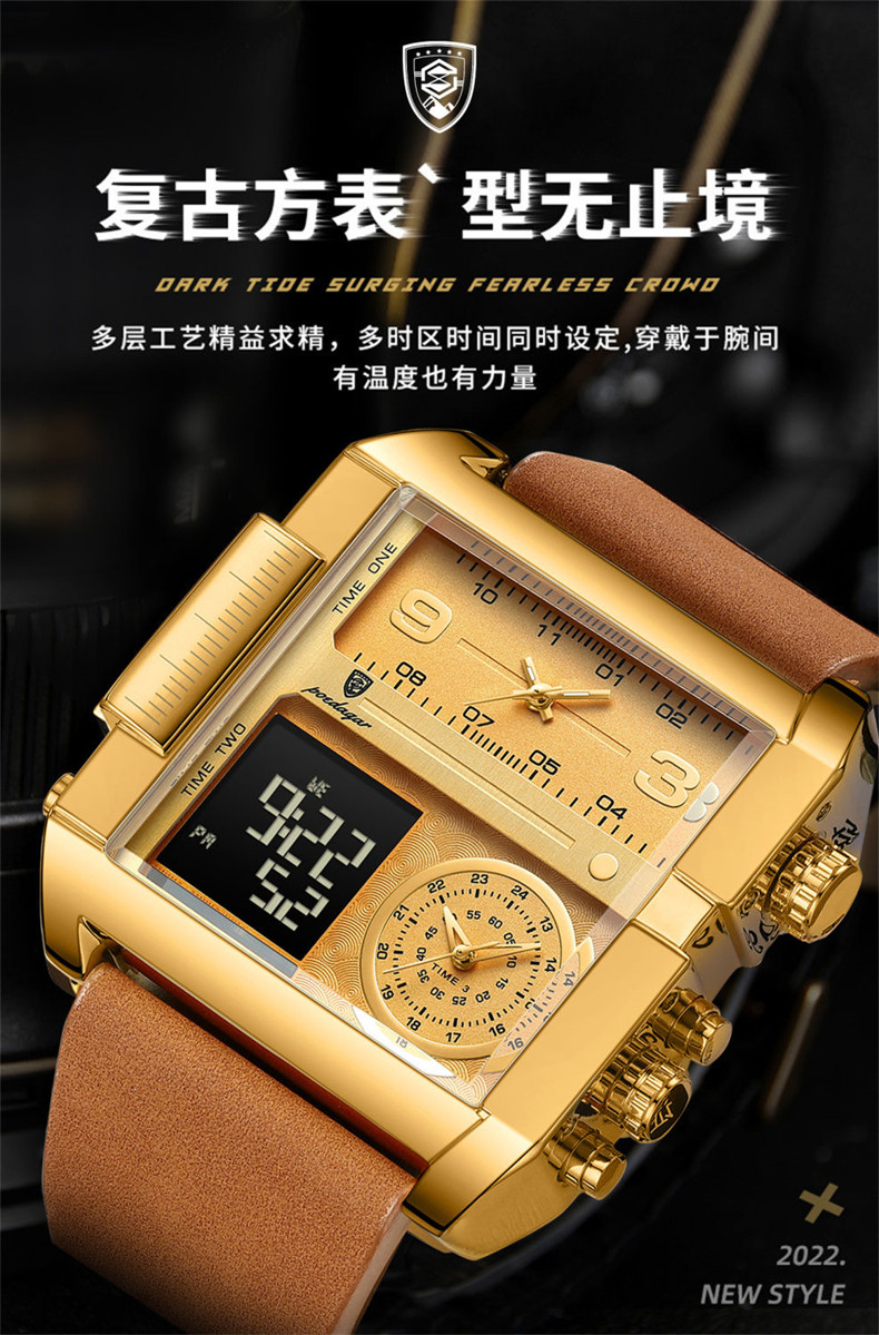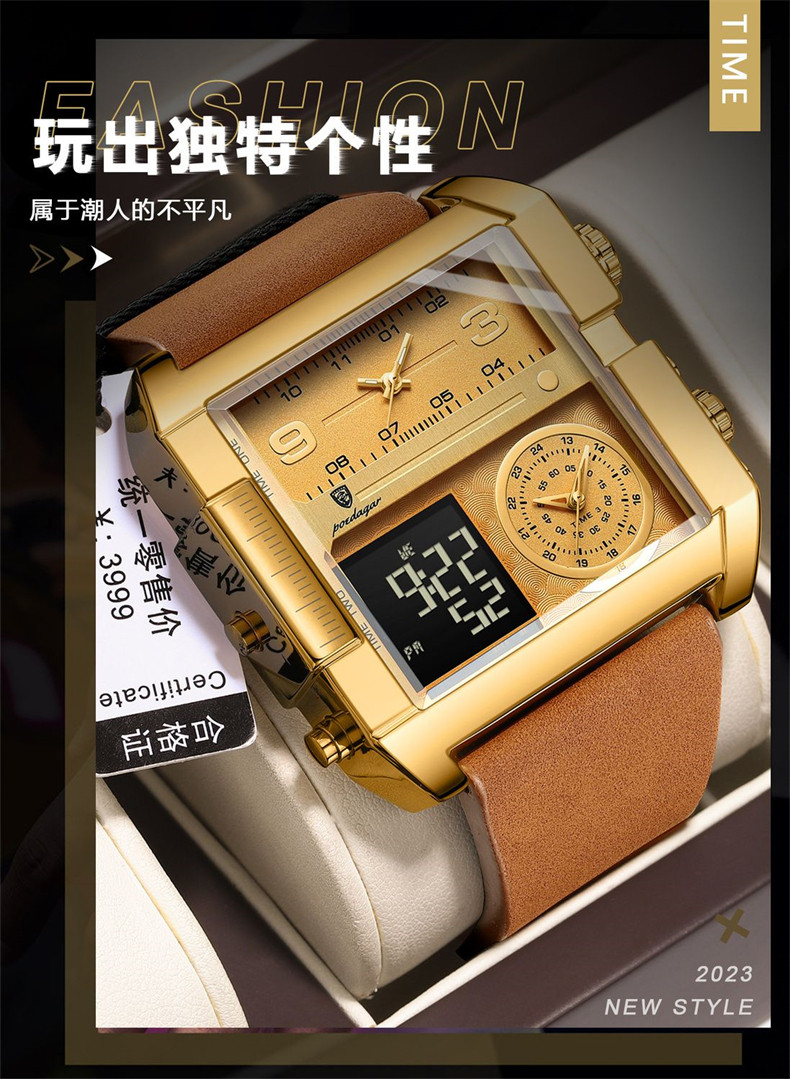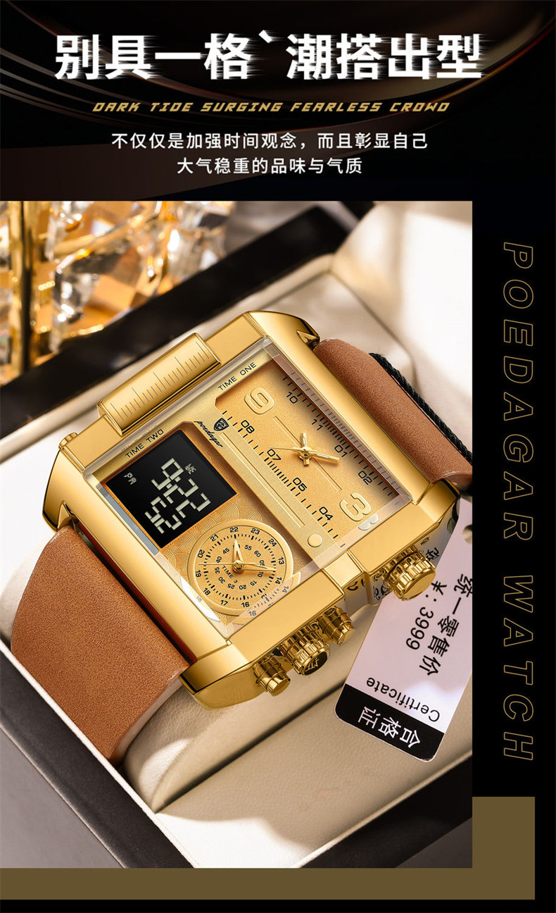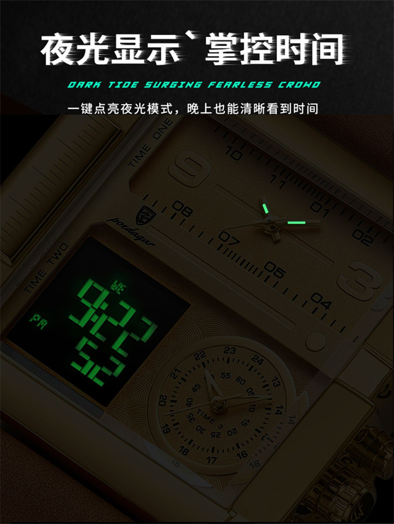 Men's Watch with Large Dial, Luminous, Waterproof, Dual Display, Stylish Black Technology, Business Multifunctional Calendar, High-End Feel