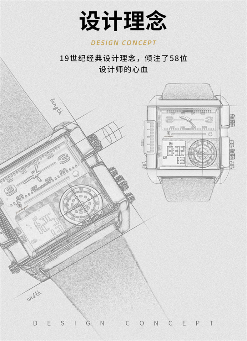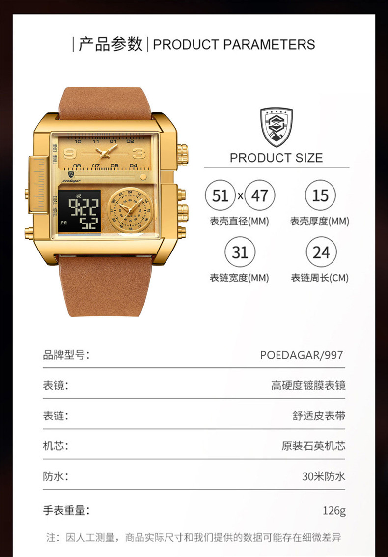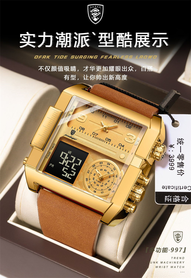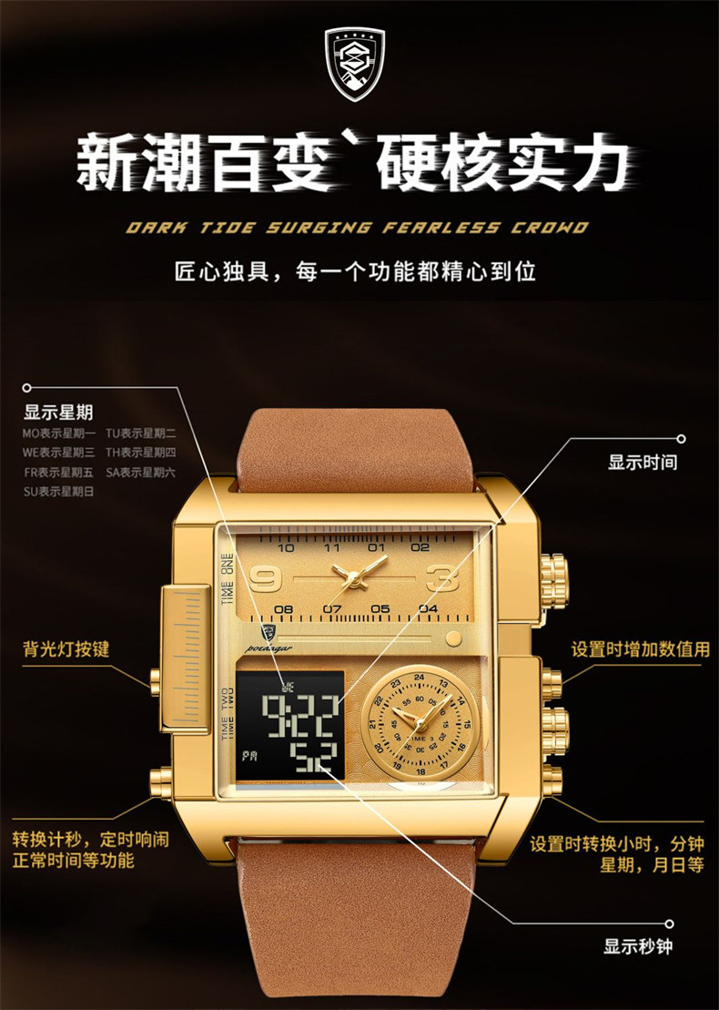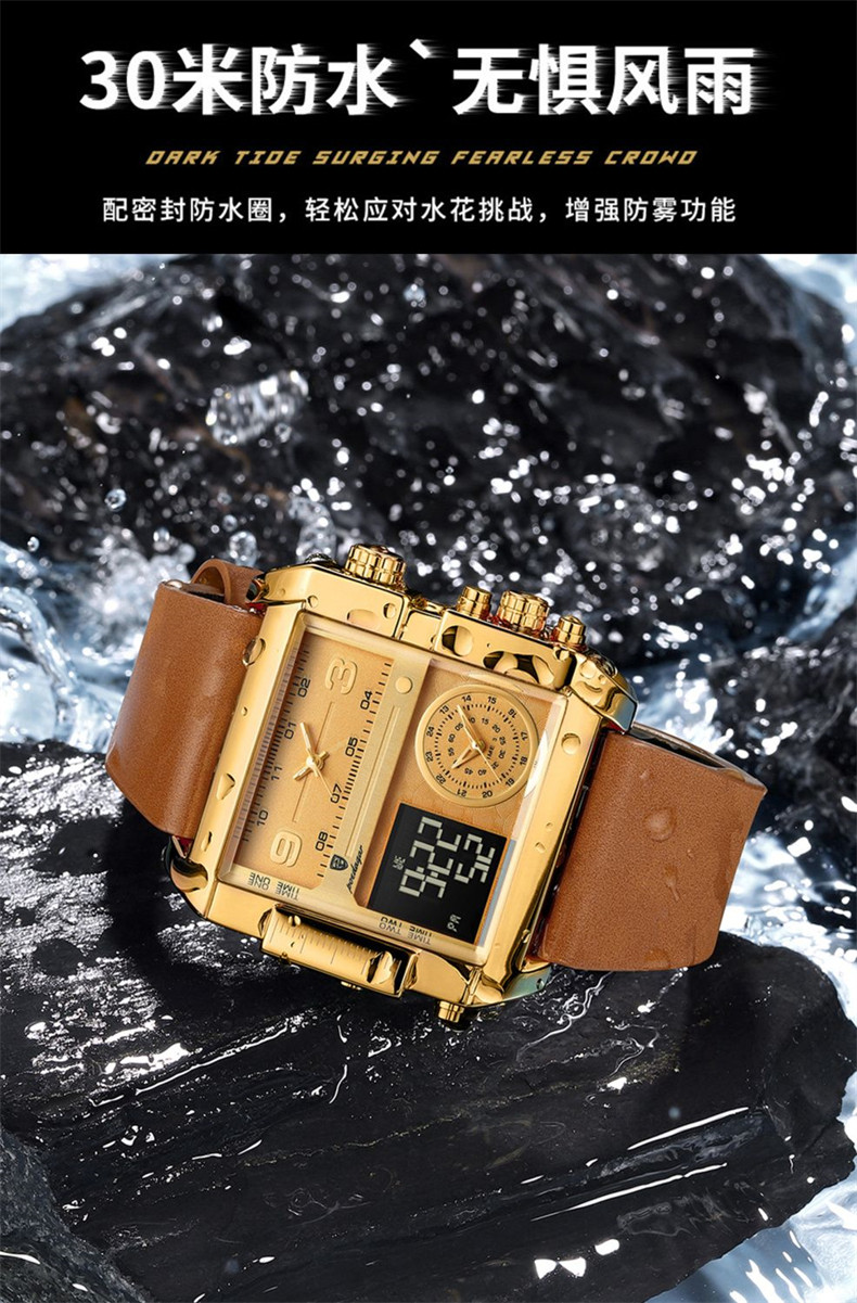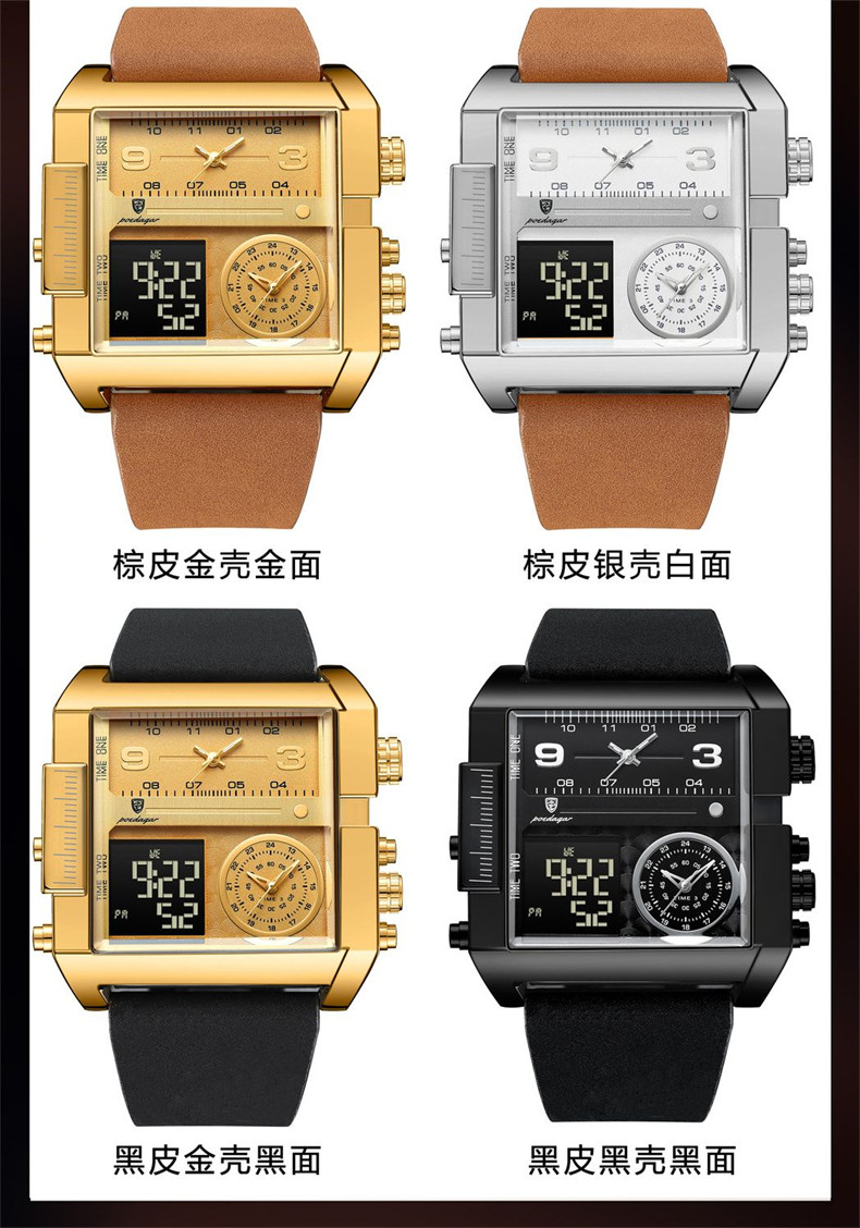 Men's Watch with Large Dial, Luminous, Waterproof, Dual Display, Stylish Black Technology, Business Multifunctional Calendar, High-End Feel