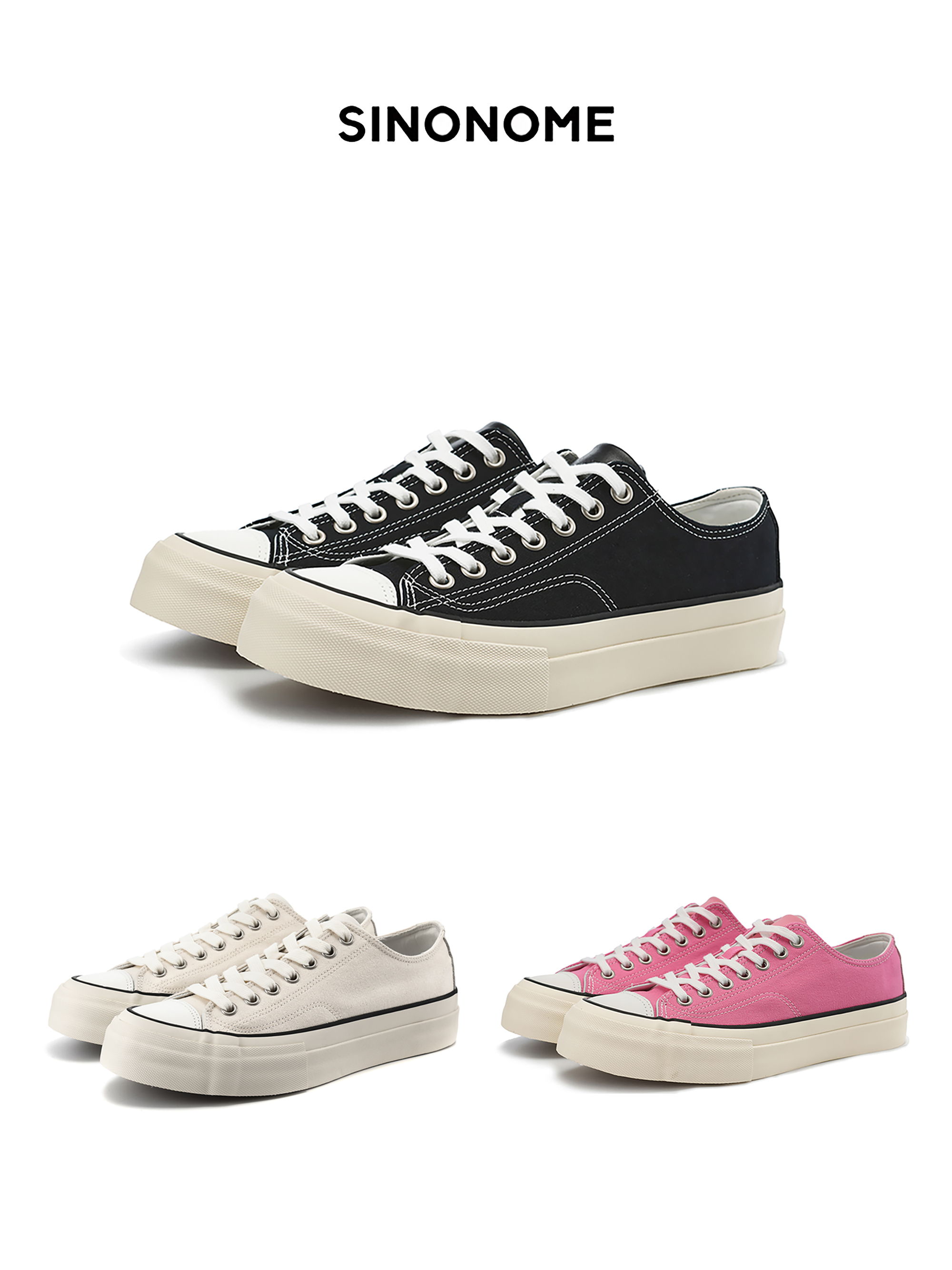 Sinonome Classic Sports Black and White Low-Top Thick-Soled Height-Increasing Vulcanized Cowhide Full Cotton Canvas Shoes for Men and Women