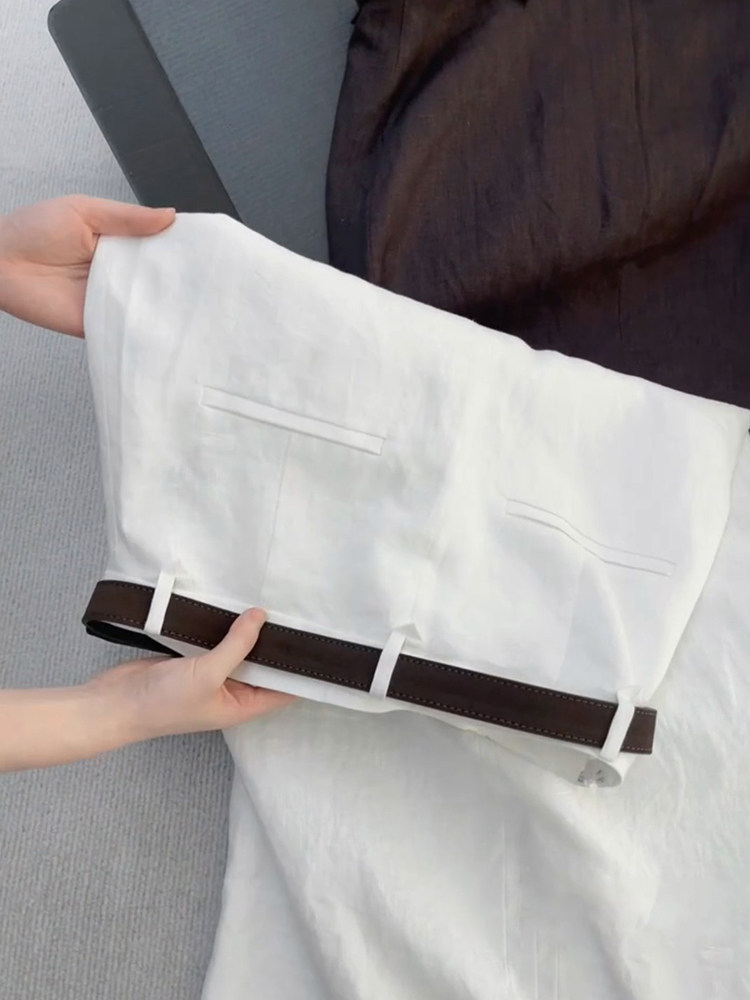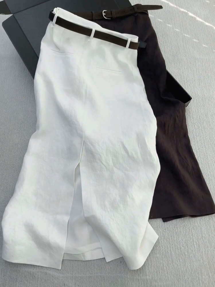 Highly Recommended! Minimalist Style White Linen Midi Skirt for Women, New Summer Model, Comfortable and Breathable with Back Slit