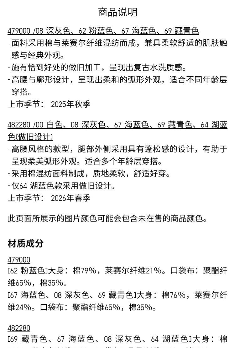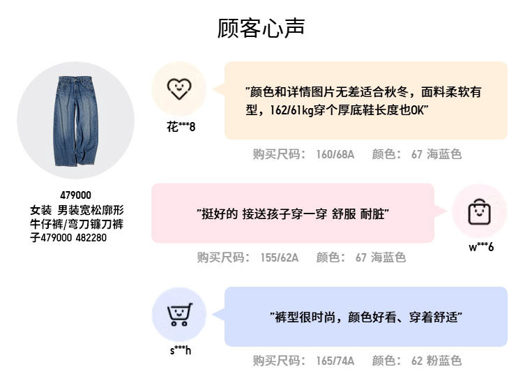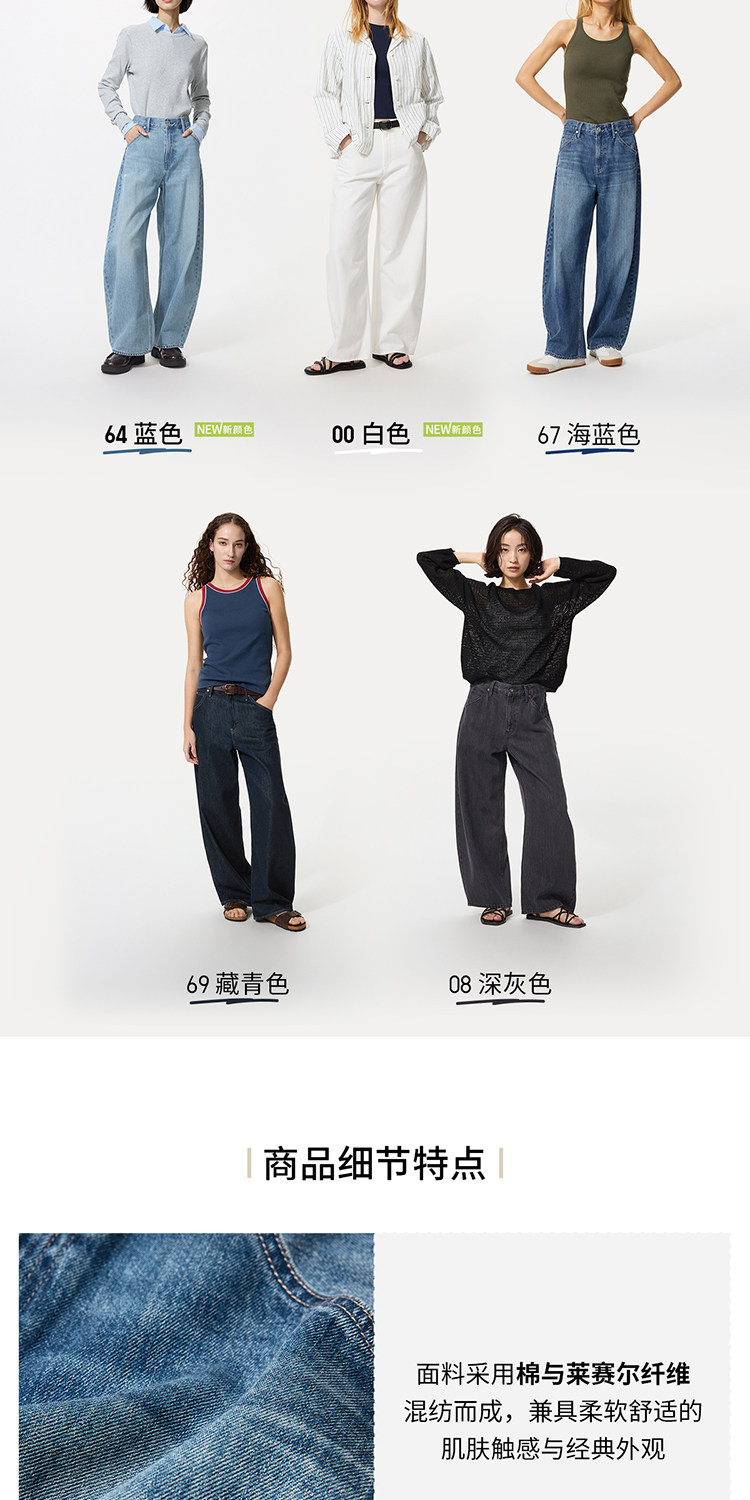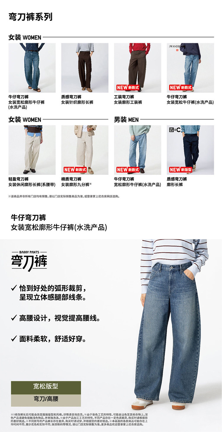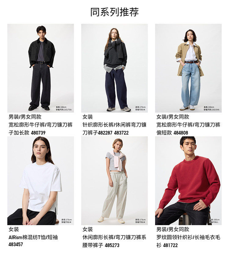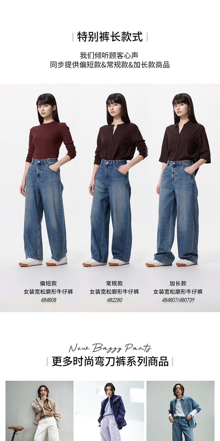 Regular Fit Uniqlo Women's and Men's Loose-Fitting Jeans/Curved Hem Pants 479000 482280