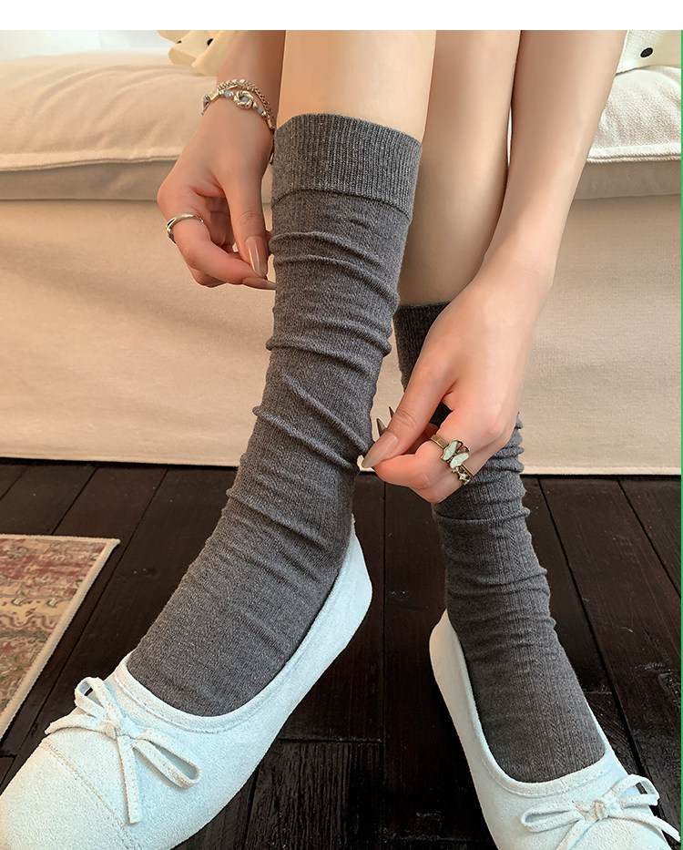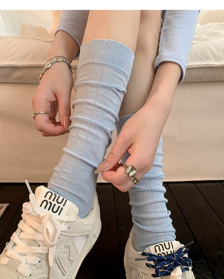 White Miu-Style Ballet Socks for Women, Slouch Socks for Spring, Autumn, and Summer, Thin Pure Cotton Long Socks, Mesh Calf Socks