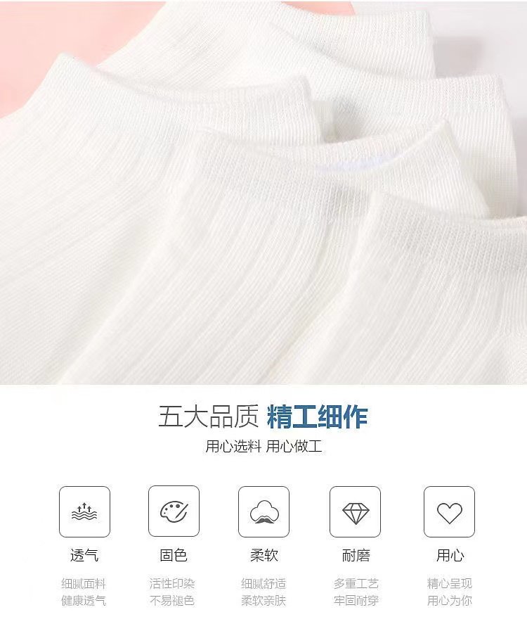 White Socks for Women, Summer Short Socks, Odor-Resistant, Low-Cut, Solid Color, Thin, Invisible Socks, Short Tube Socks, Preppy Style White Socks