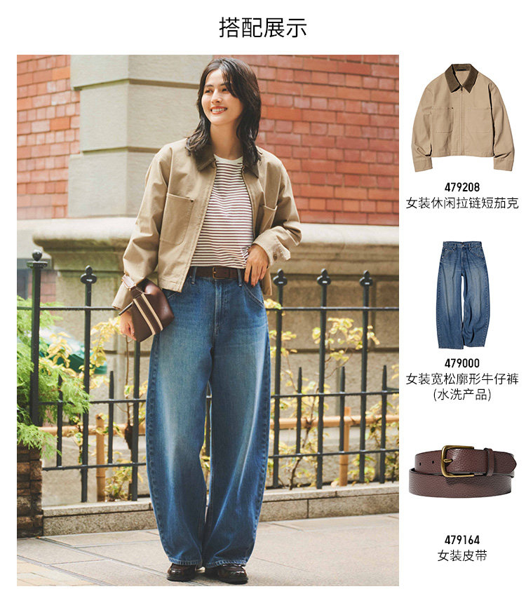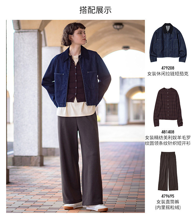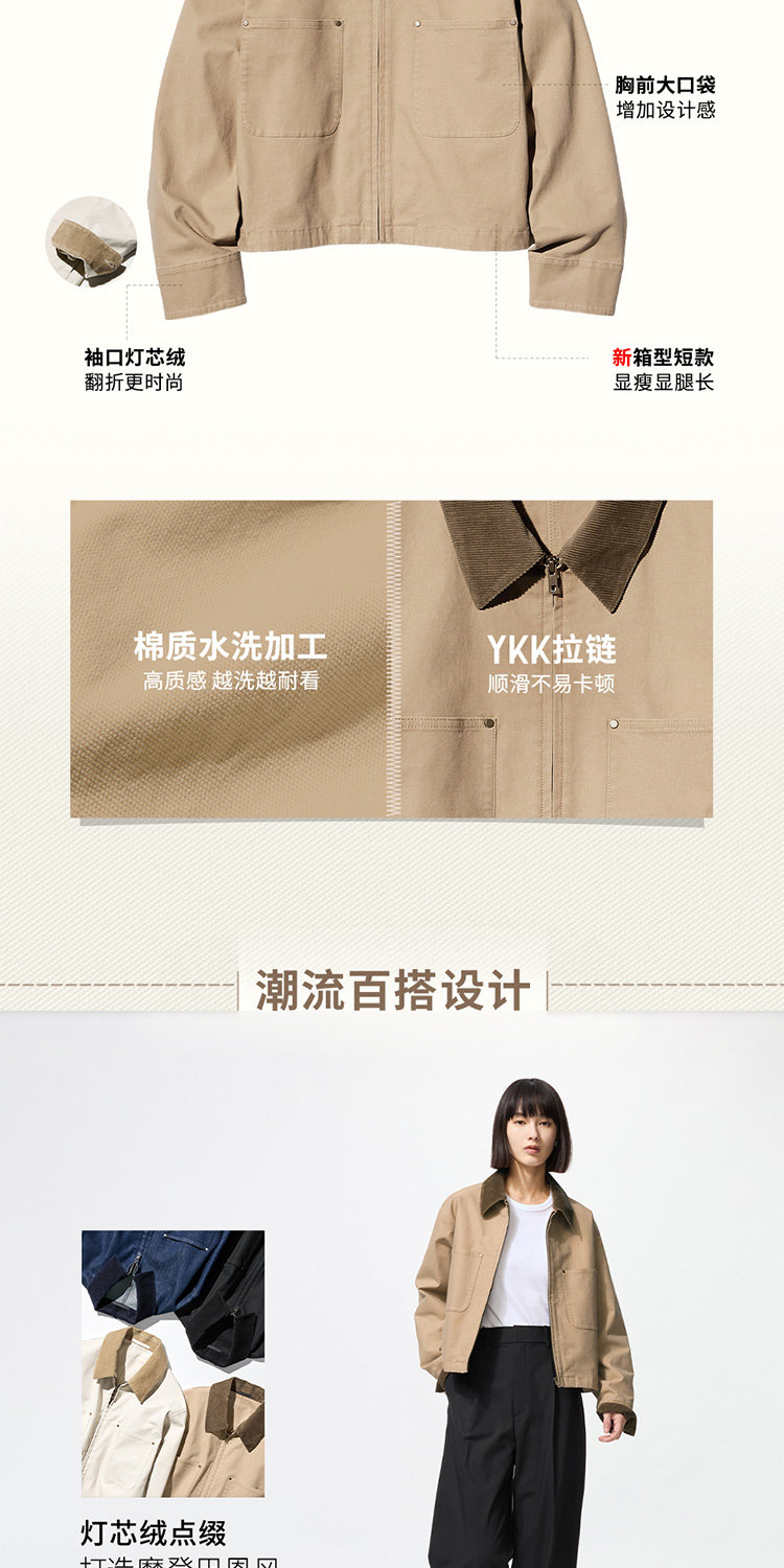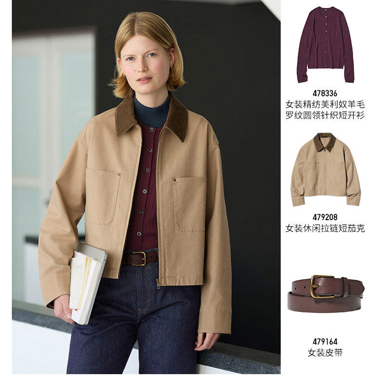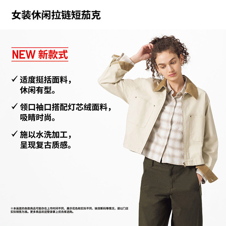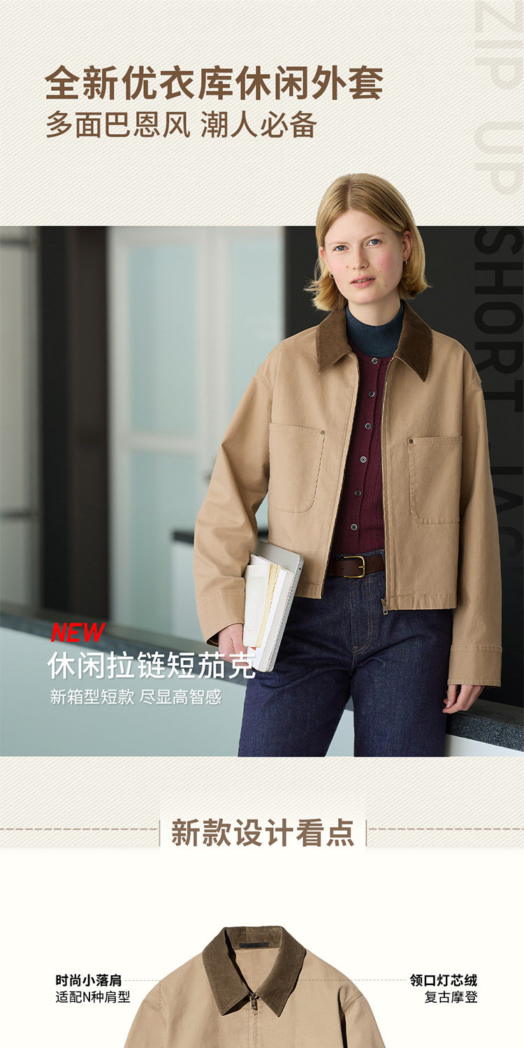 Uniqlo Women's Casual Zipper Short Jacket/Coat Barn Style Lapel Fashion Jacket 479208