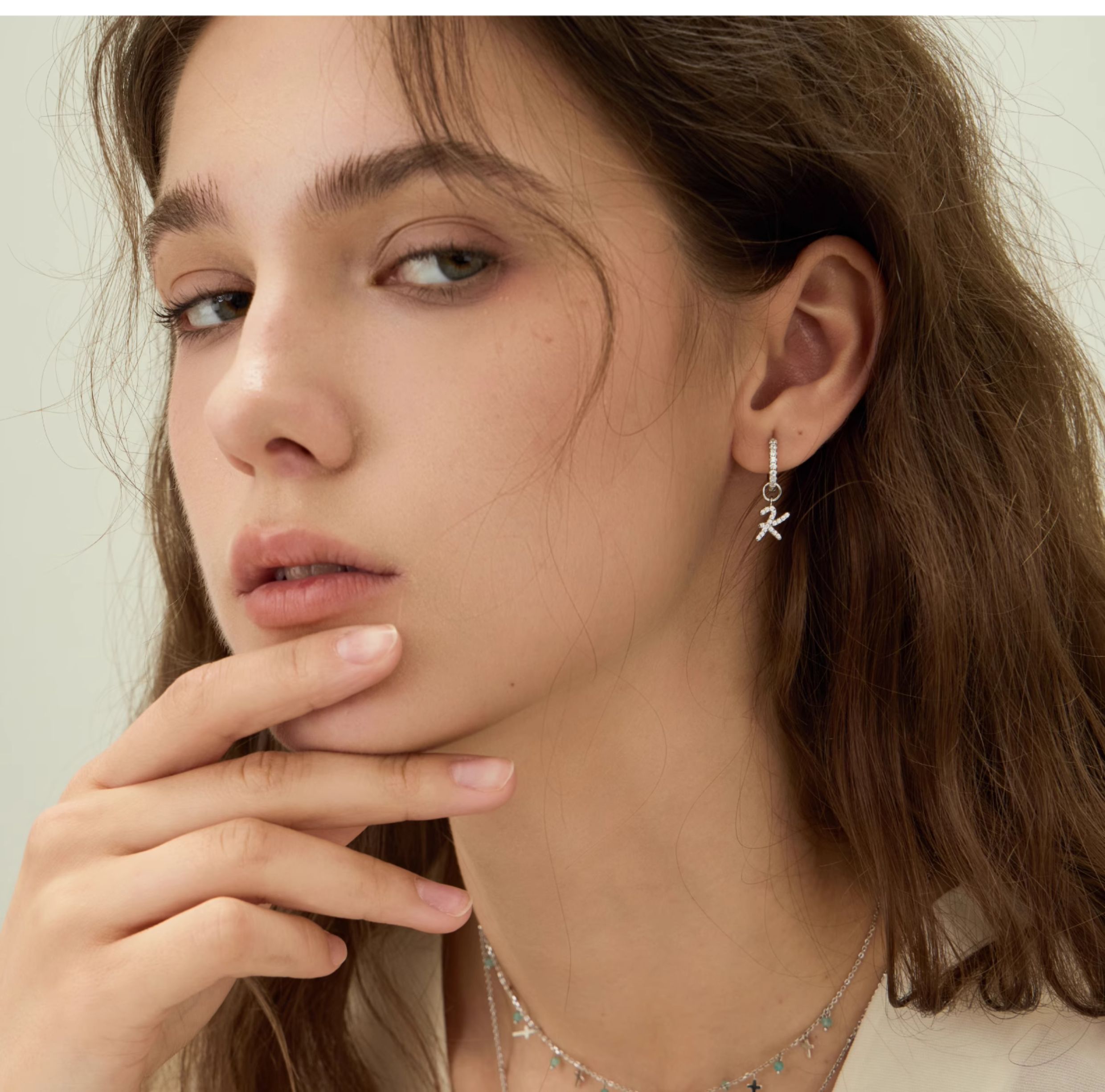 [New Style] Arsis Silver Stamp Art Letter Earrings Ab Style Stud Earrings Original Design S925 Silver Earrings