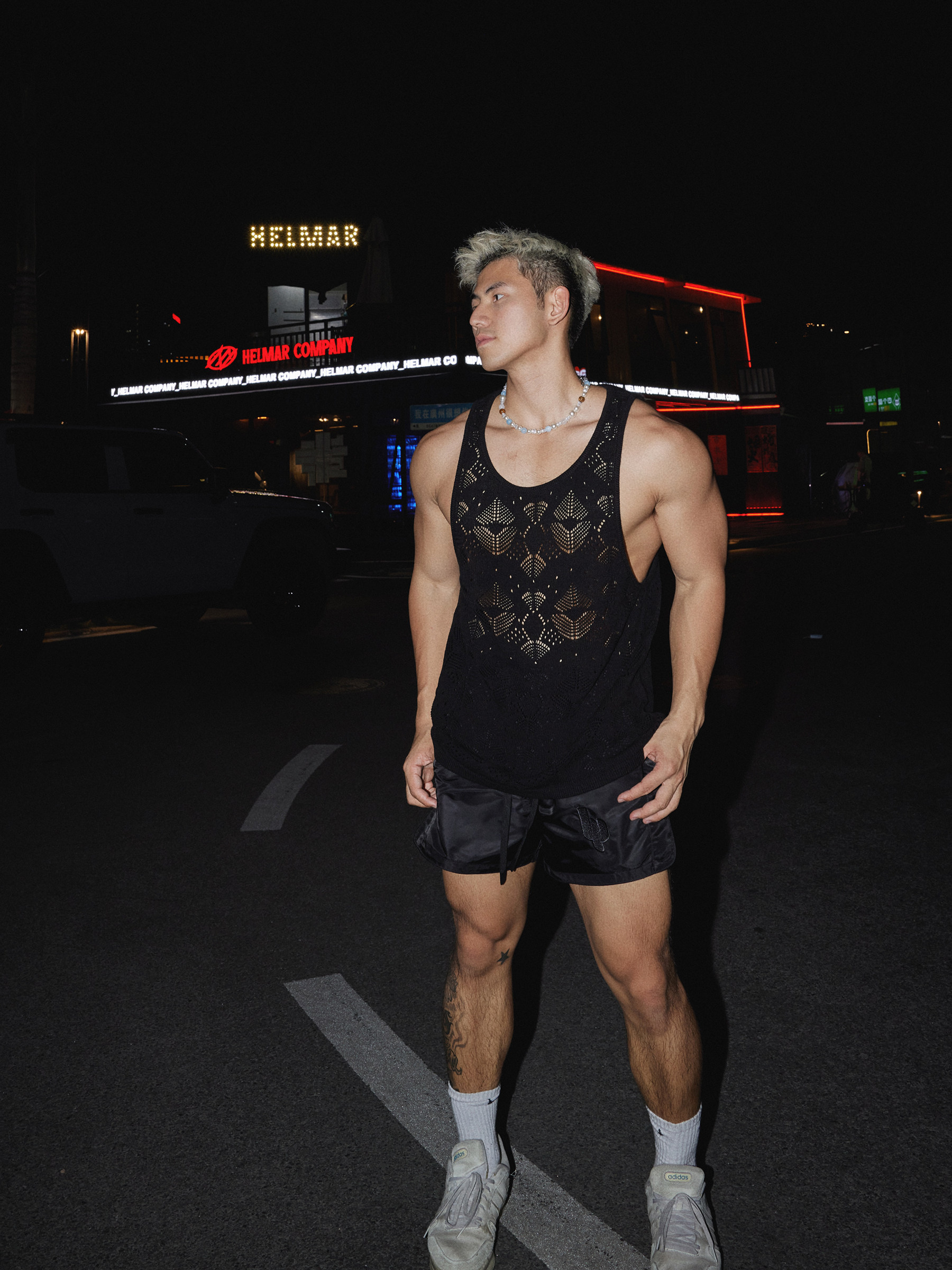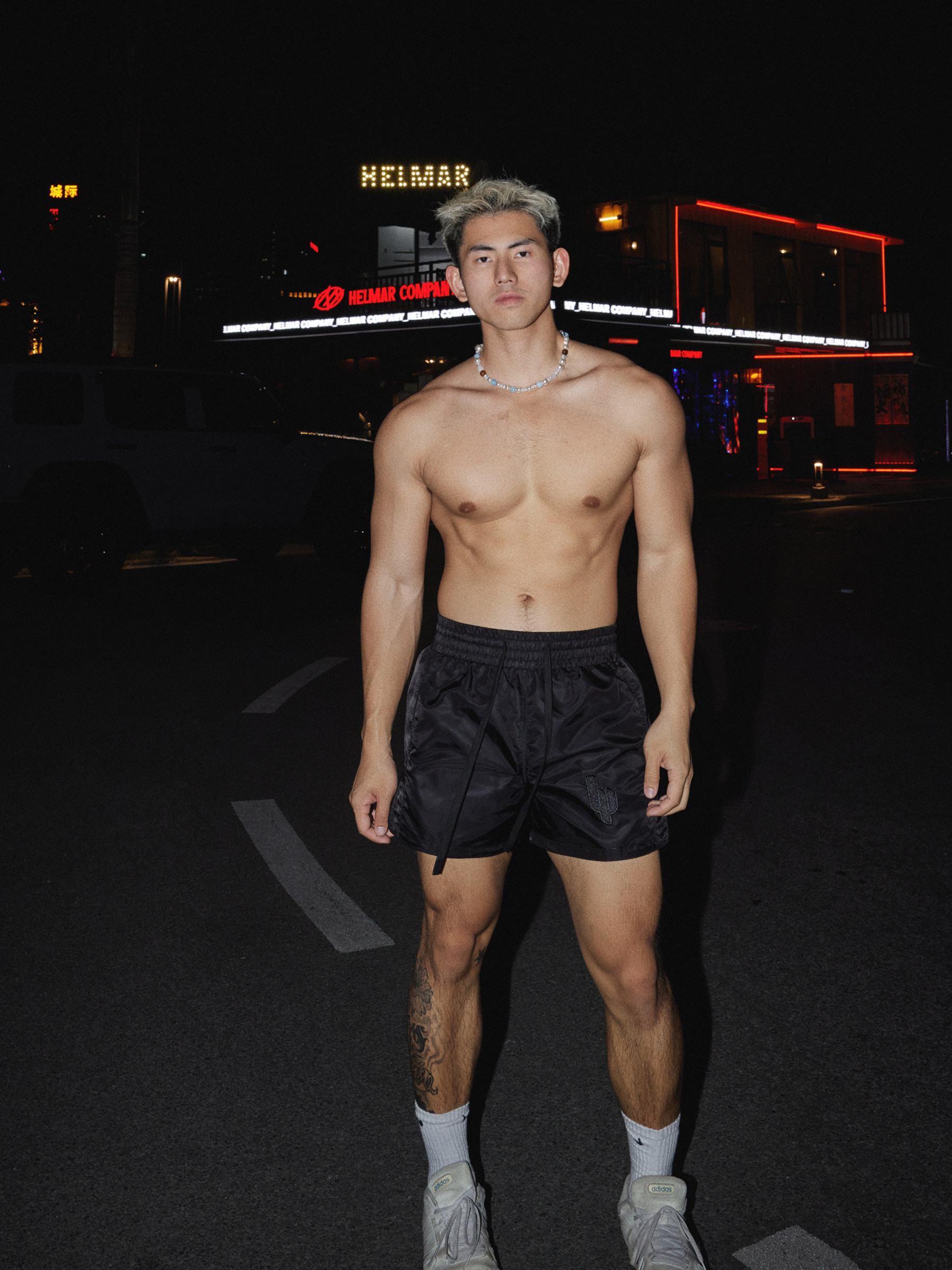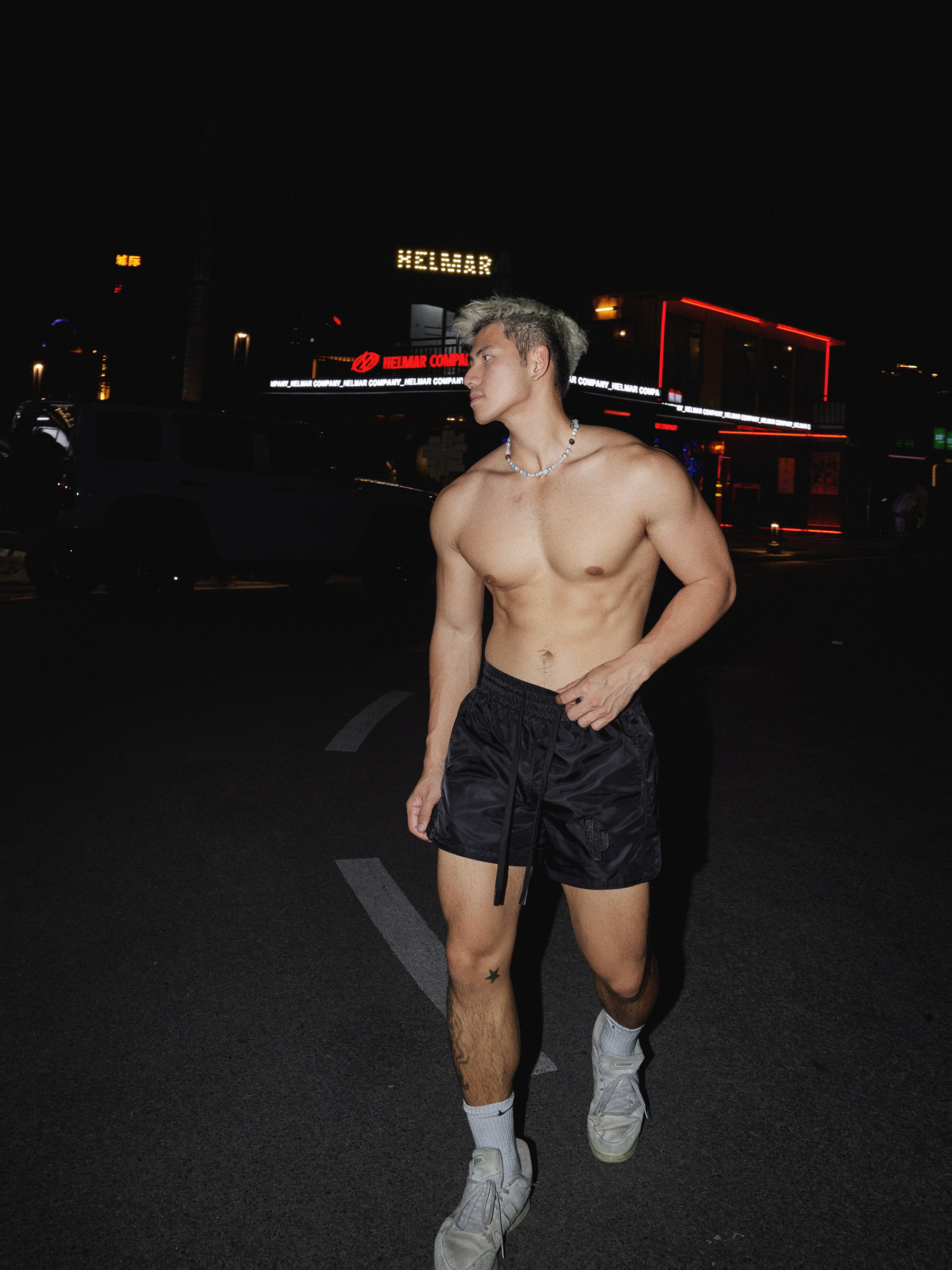 Papaslilmonster【Original】Satin Glossy American Casual Sports Loose Straight Shorts for Men
