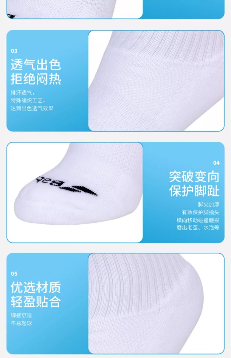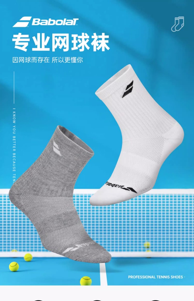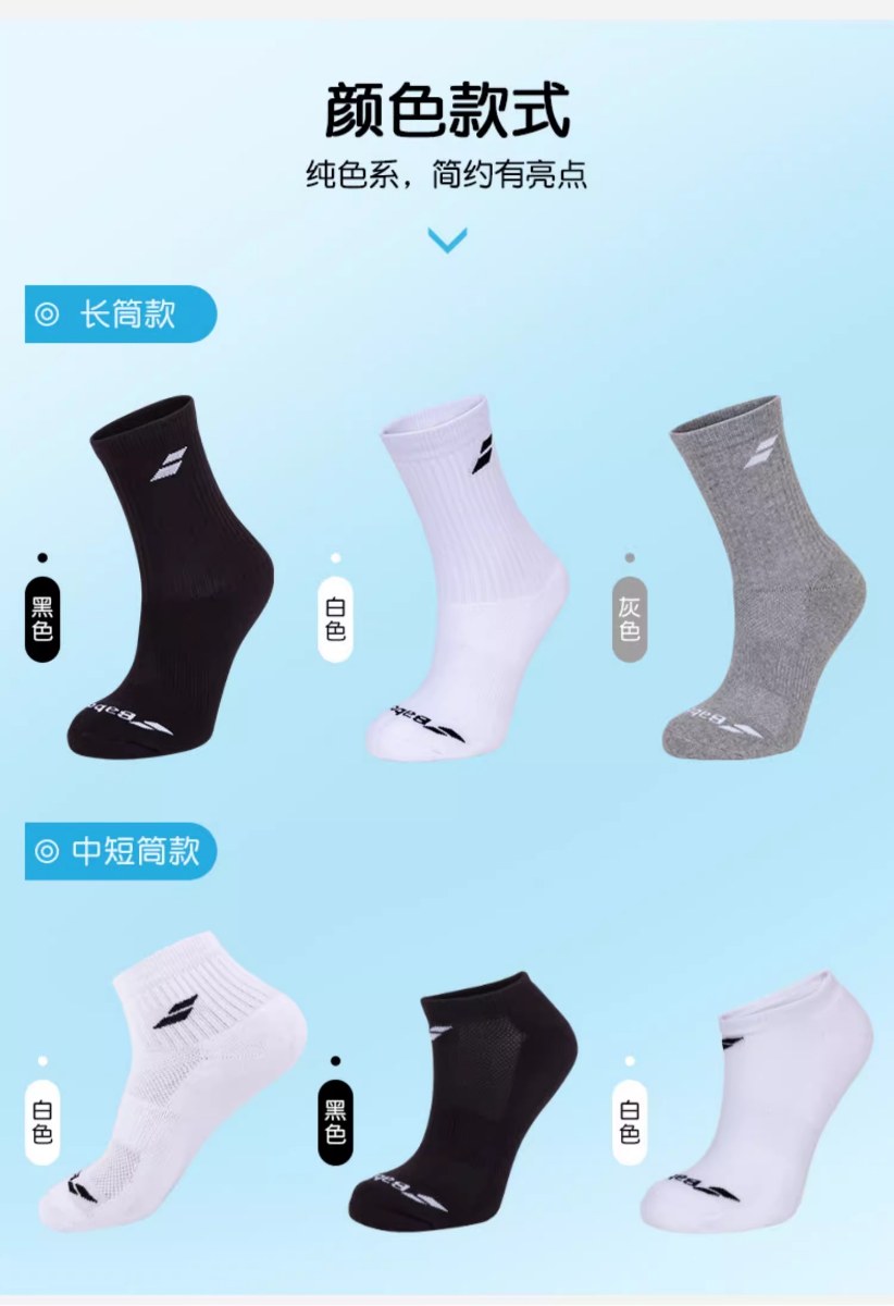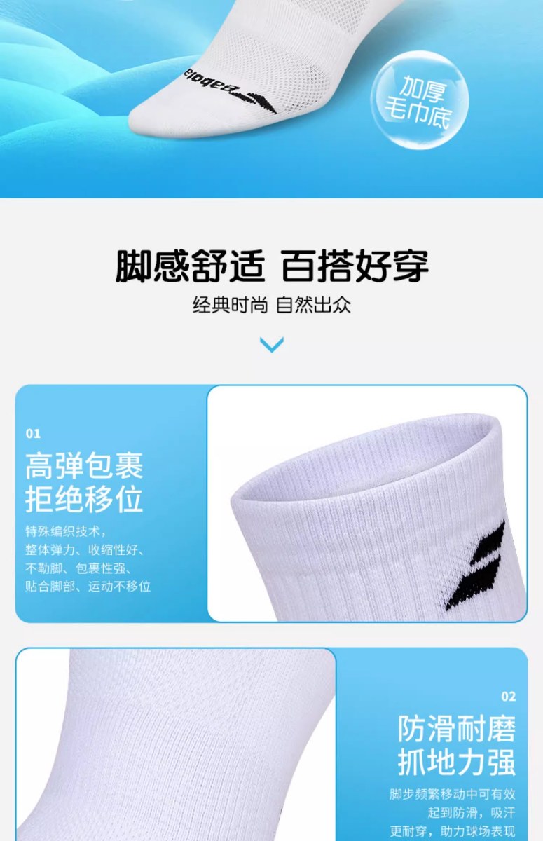 Babolat Tennis Socks Professional Sports Brushed Sweat-Absorbent Breathable 3-Pair Pack Tennis Towel Bottom Unisex