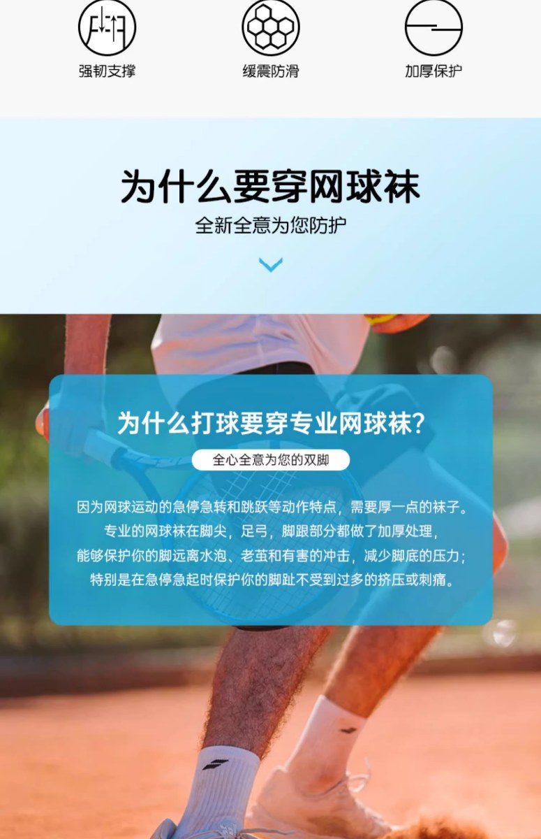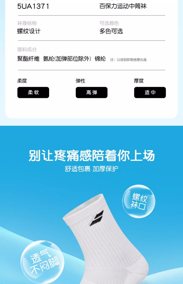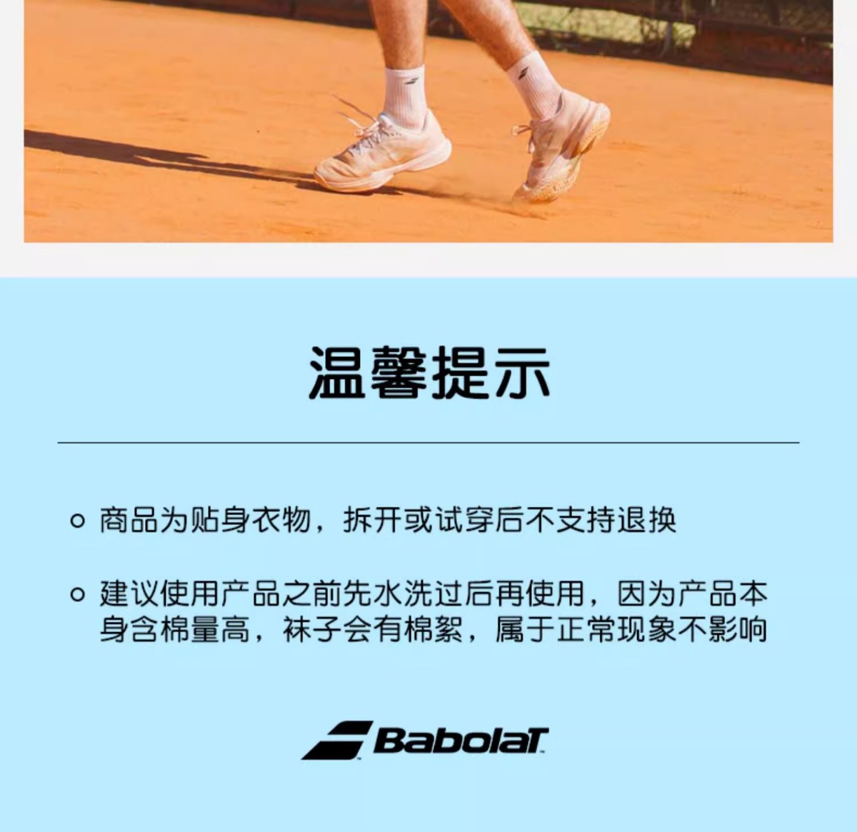 Babolat Tennis Socks Professional Sports Brushed Sweat-Absorbent Breathable 3-Pair Pack Tennis Towel Bottom Unisex