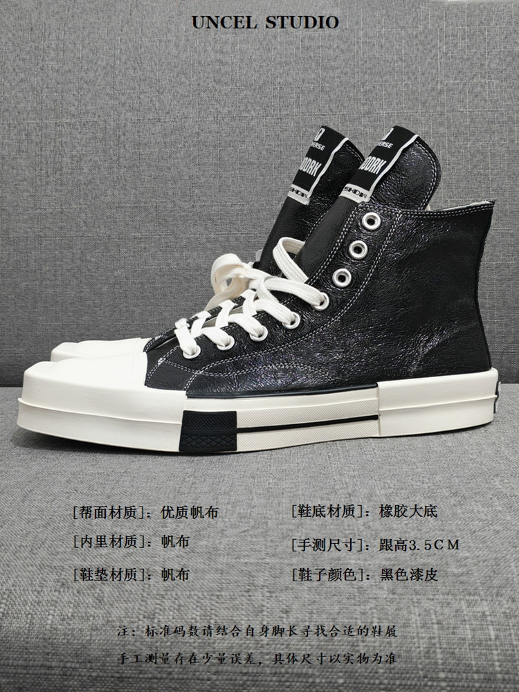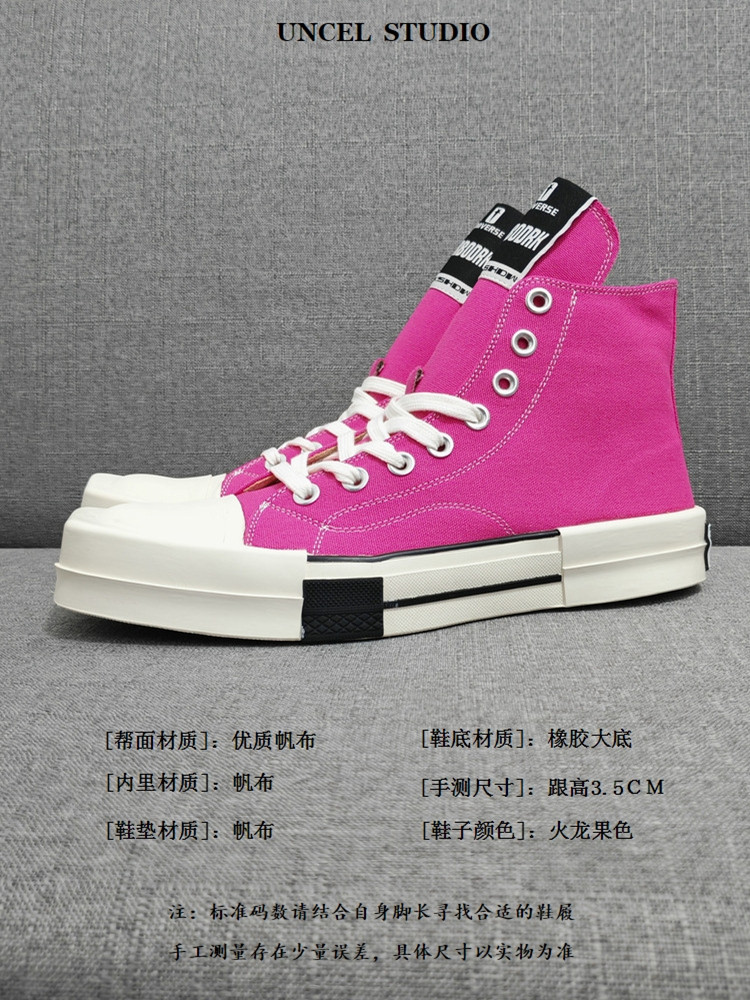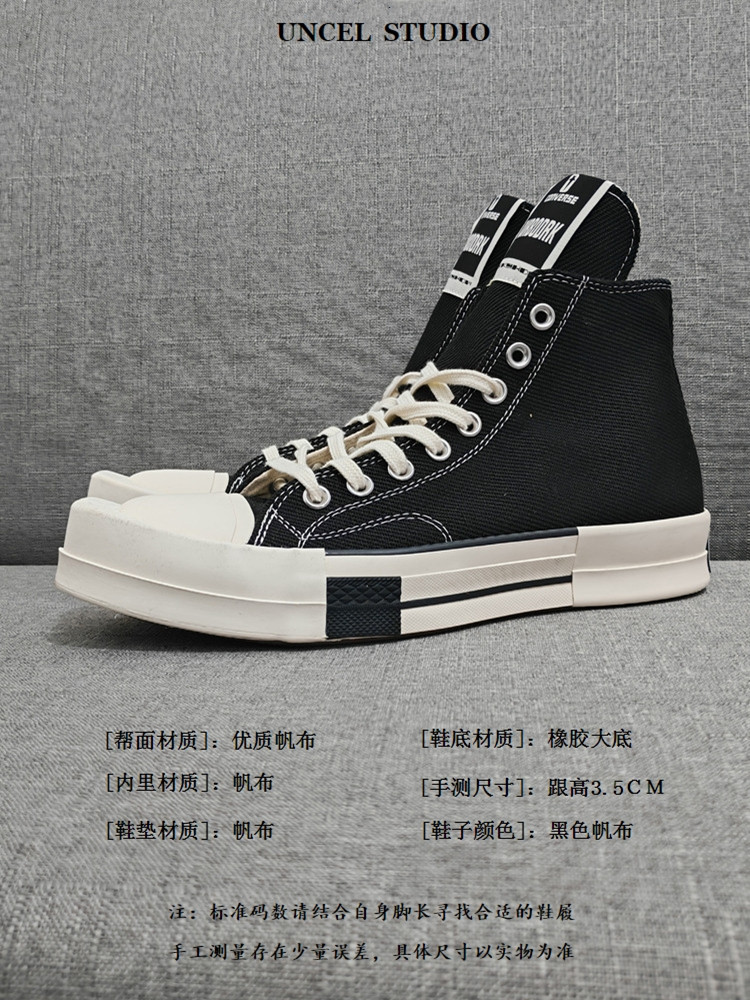 2025 Summer Ro Shoes Collaboration Thick-Soled Square-Toe Classic Ricks High-Top Canvas Shoes for Men Owem Trendy Shoes for Women