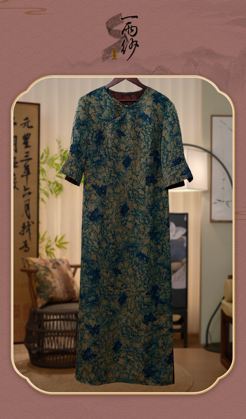 [Blue and White Porcelain• Dress] 238851 Shen Haha Mulberry Silk Heavy Fragrant Treasure Luo Xiangyun Gauze Dress 45