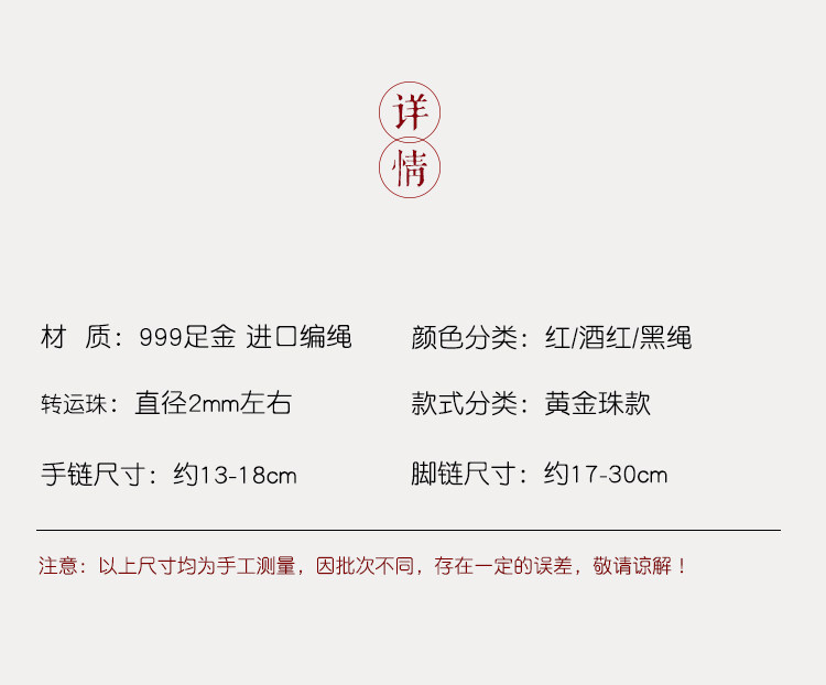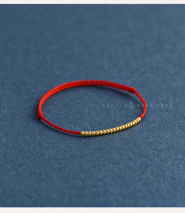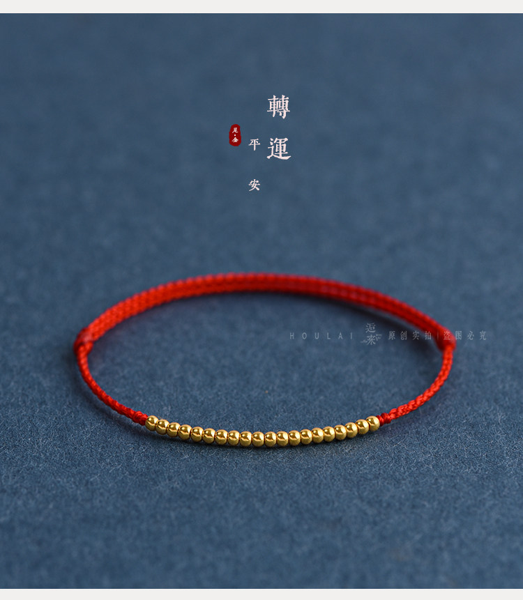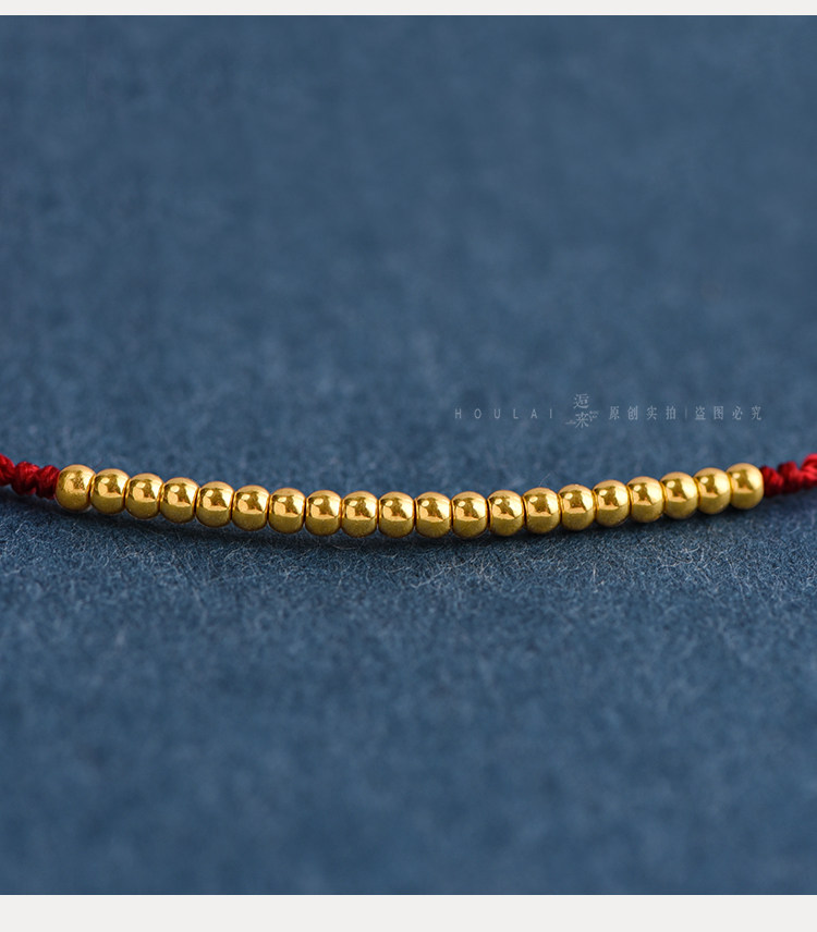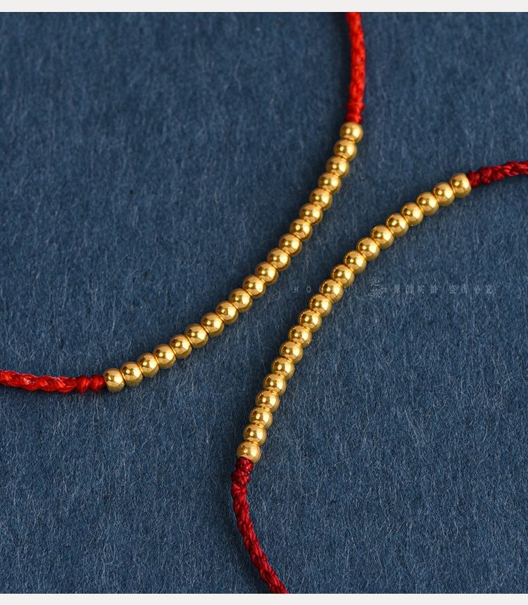 Ultra-Fine 999 Pure Gold Mini Transfer Beads Red String Bracelet Anklet for Men and Women, Good Luck Woven Bracelet for the Year of Birth