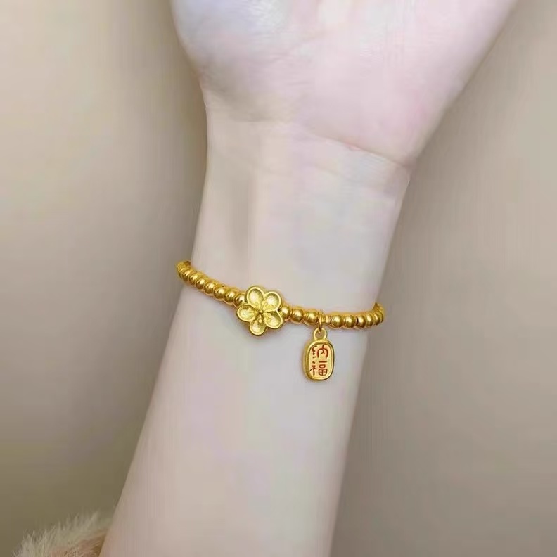 999 gold ancient method inheritance gold bracelet female small gold beads transfer beads bracelet peach blossom beads gift for girlfriend