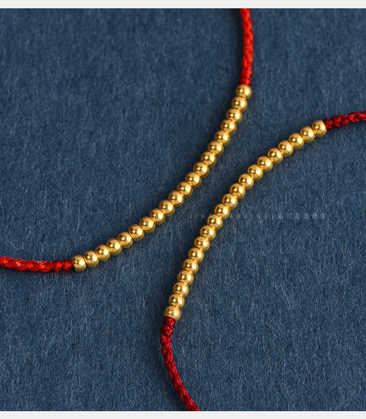 Extremely Fine 999 Gold Mini Transfer Beads Red Rope Bracelet Anklet for Men and Women This Year of Life Good Luck Woven Hand Rope