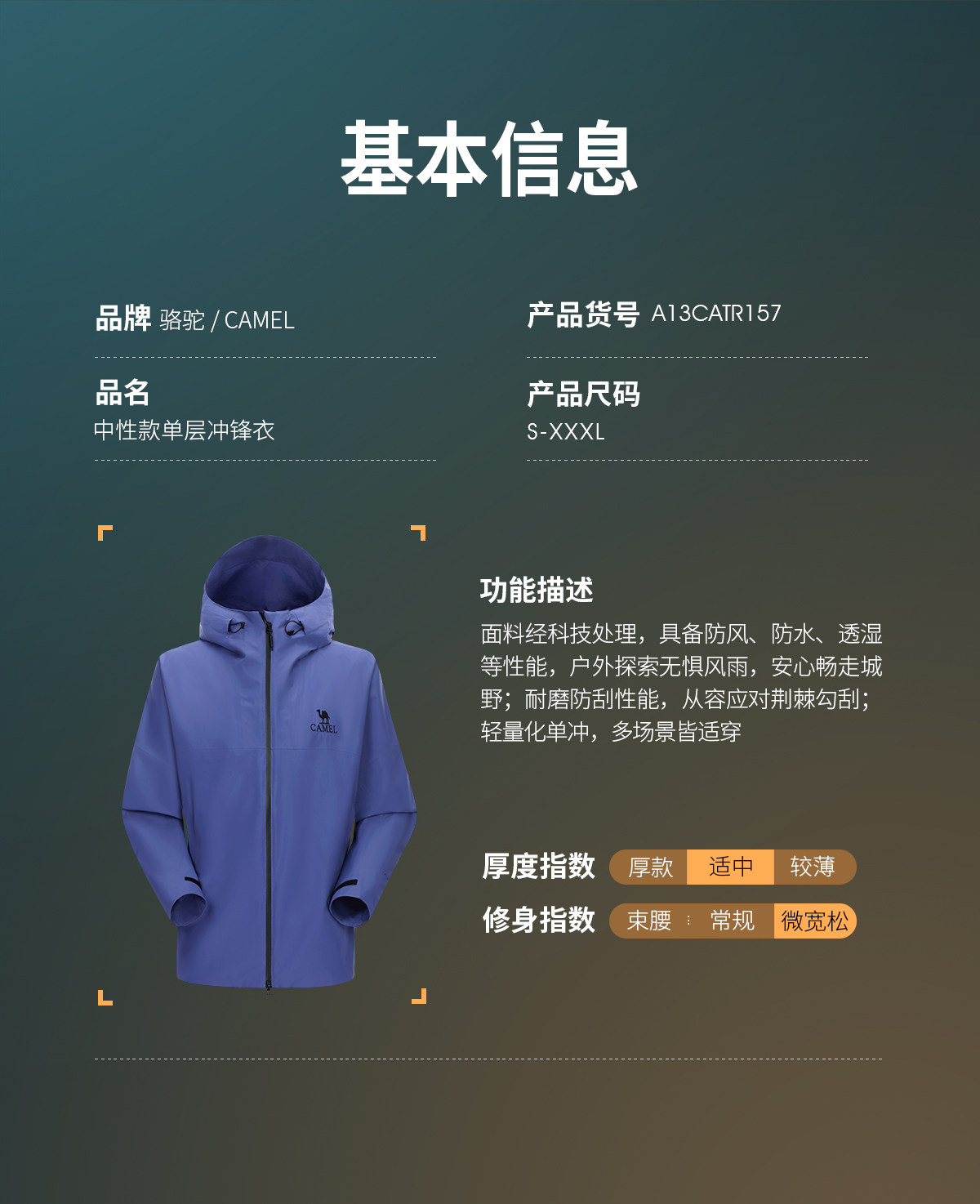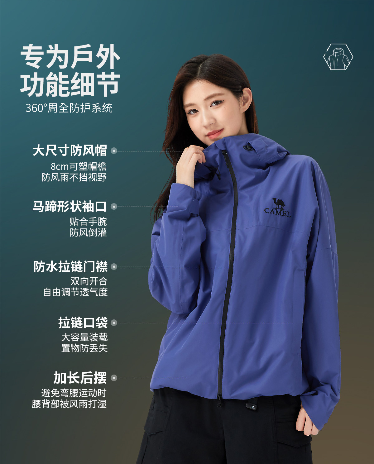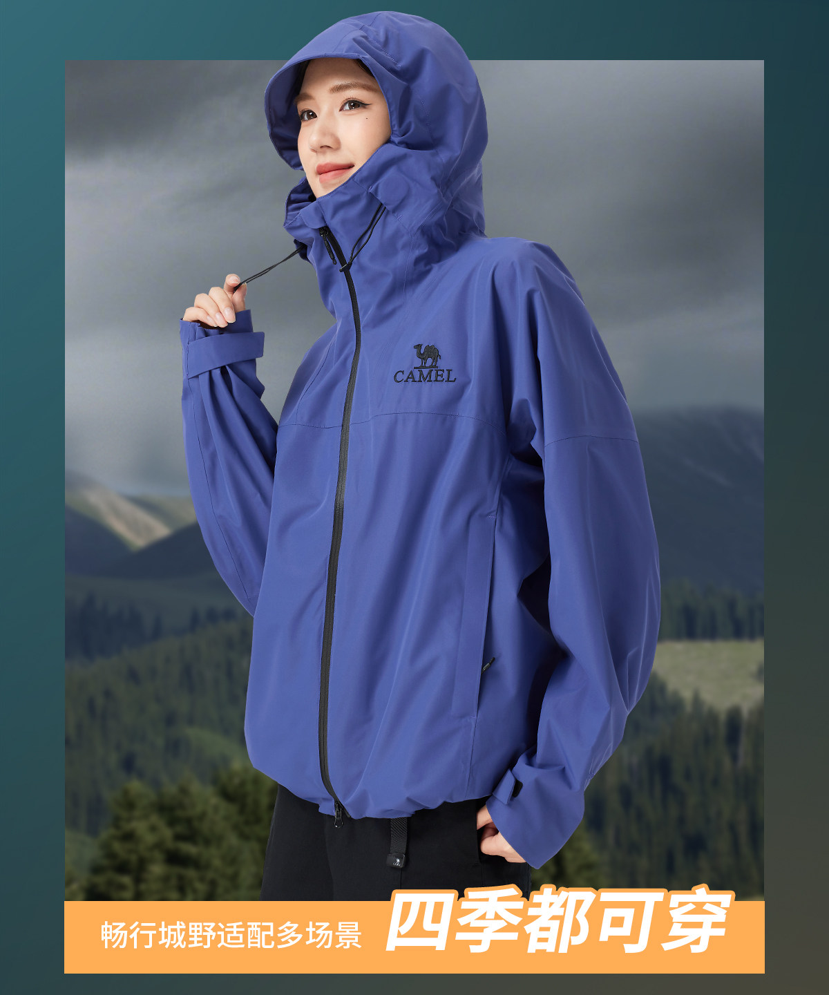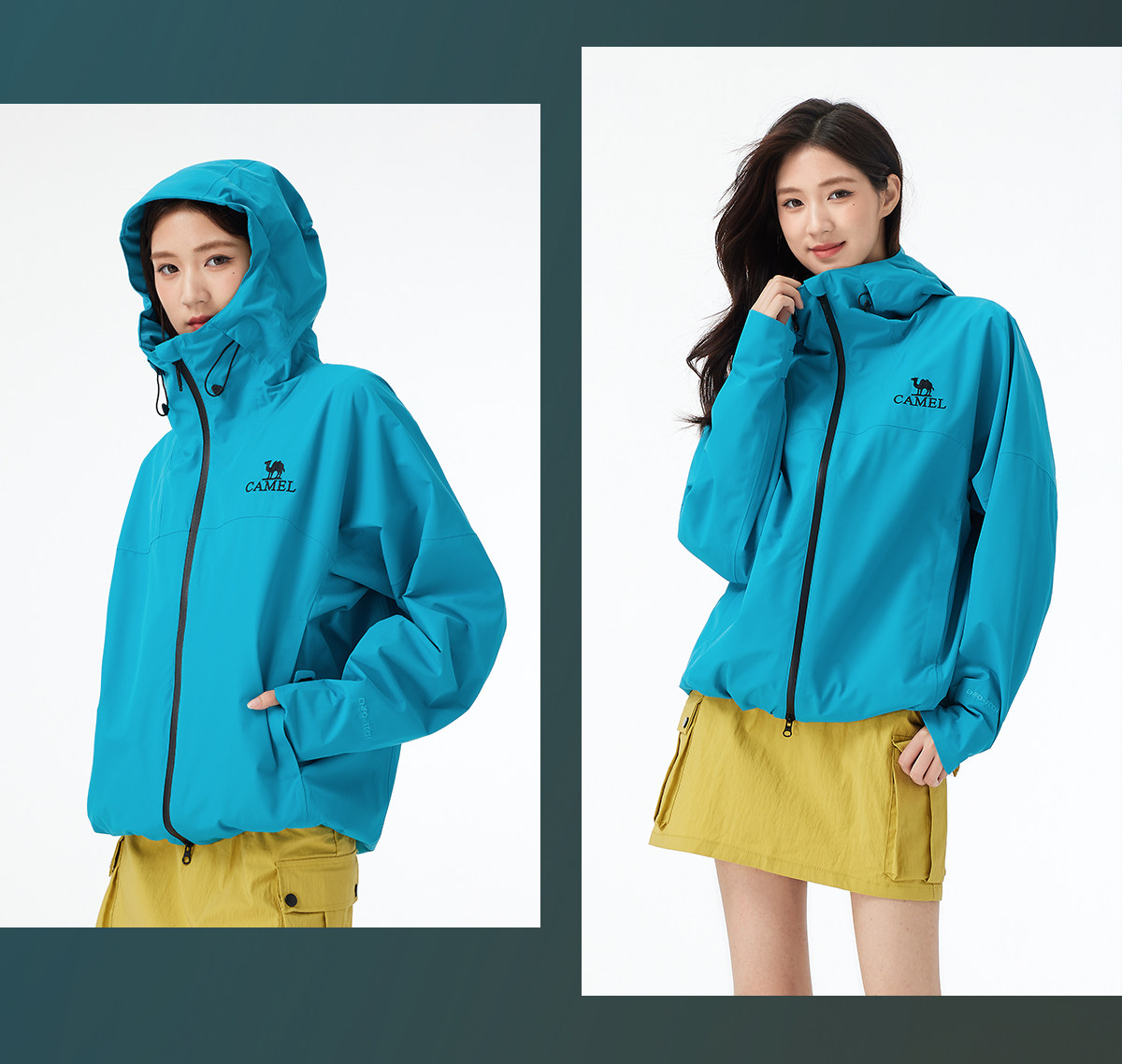 [Explore Diving Blue] Camel Outdoor Rain God Jacket Women's New Heavy Rain Level Windproof and Waterproof Travel Jacket