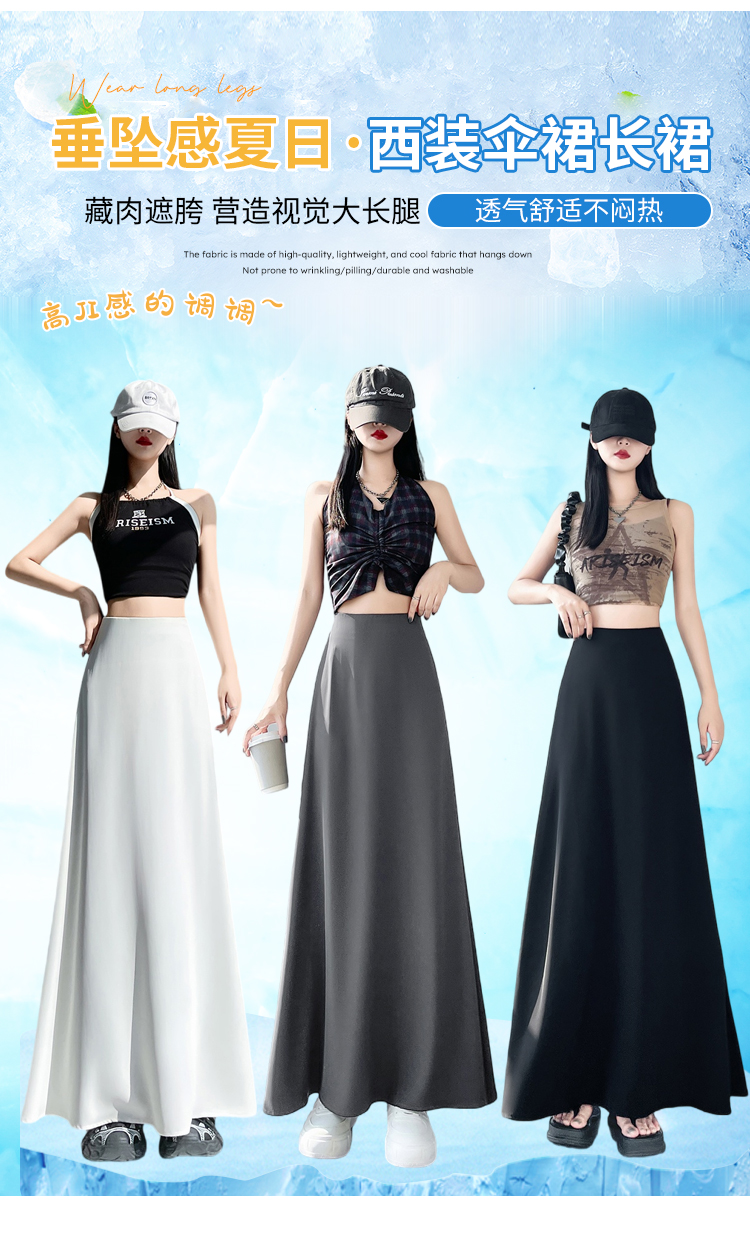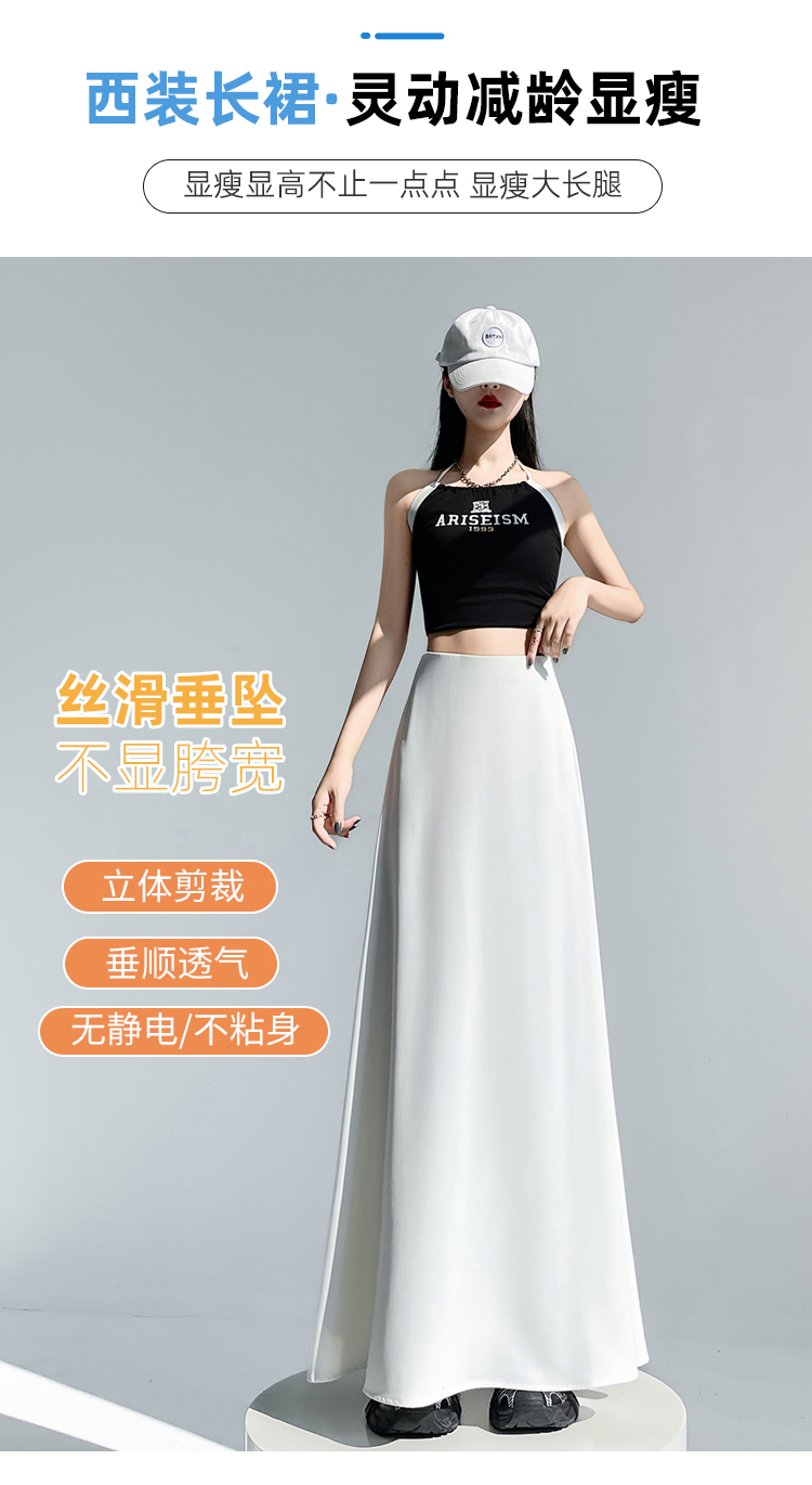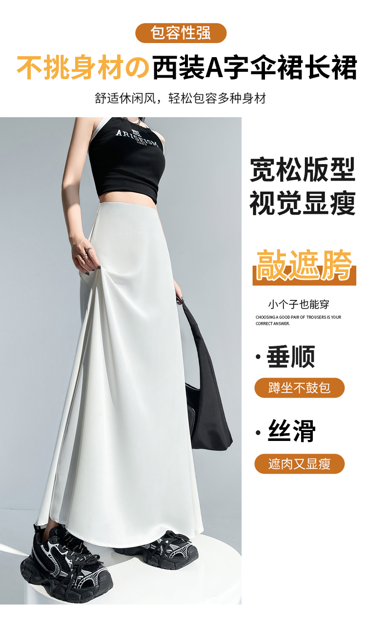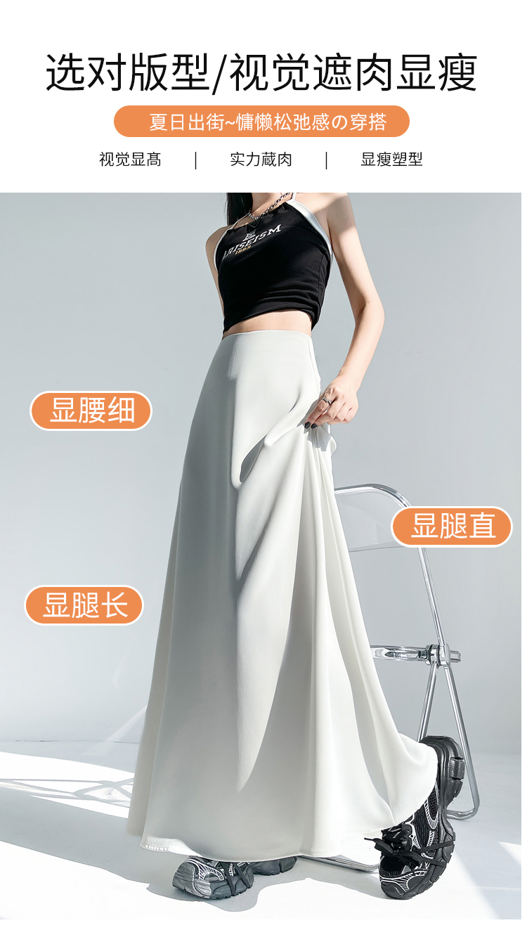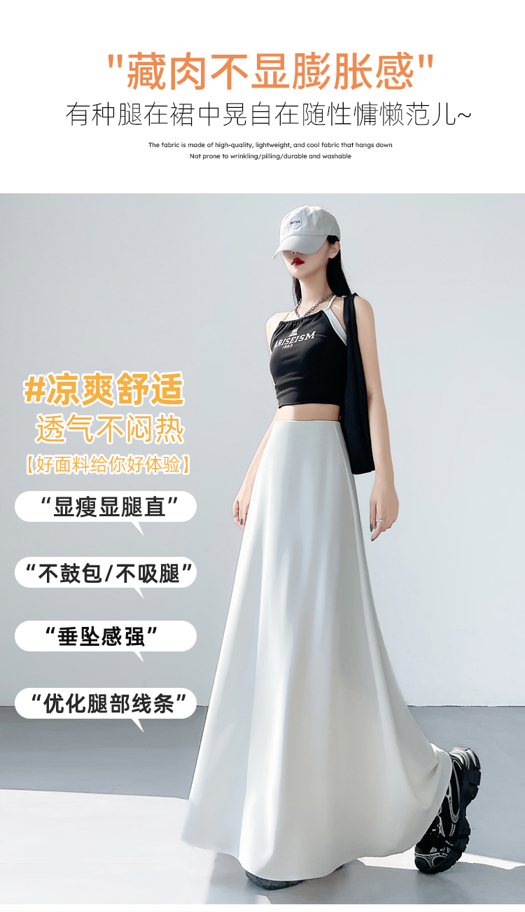 White Ice Silk Drape Suit Skirt for Women, Summer 2025 New High-Waisted Slimming A-Line Umbrella Skirt Long Skirt