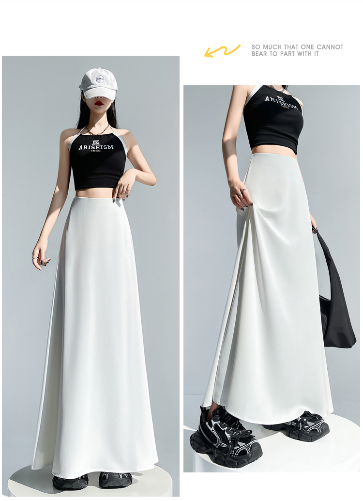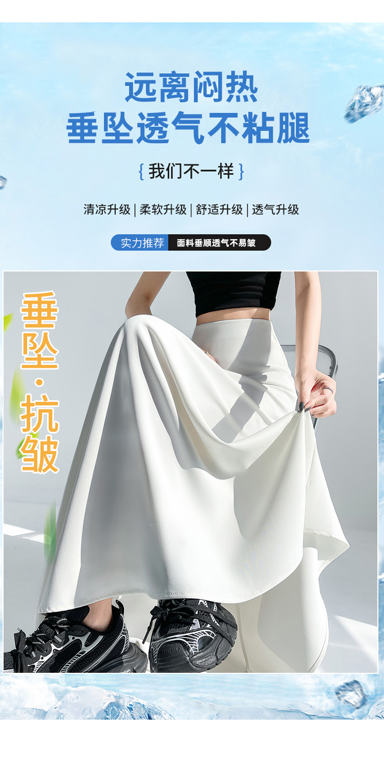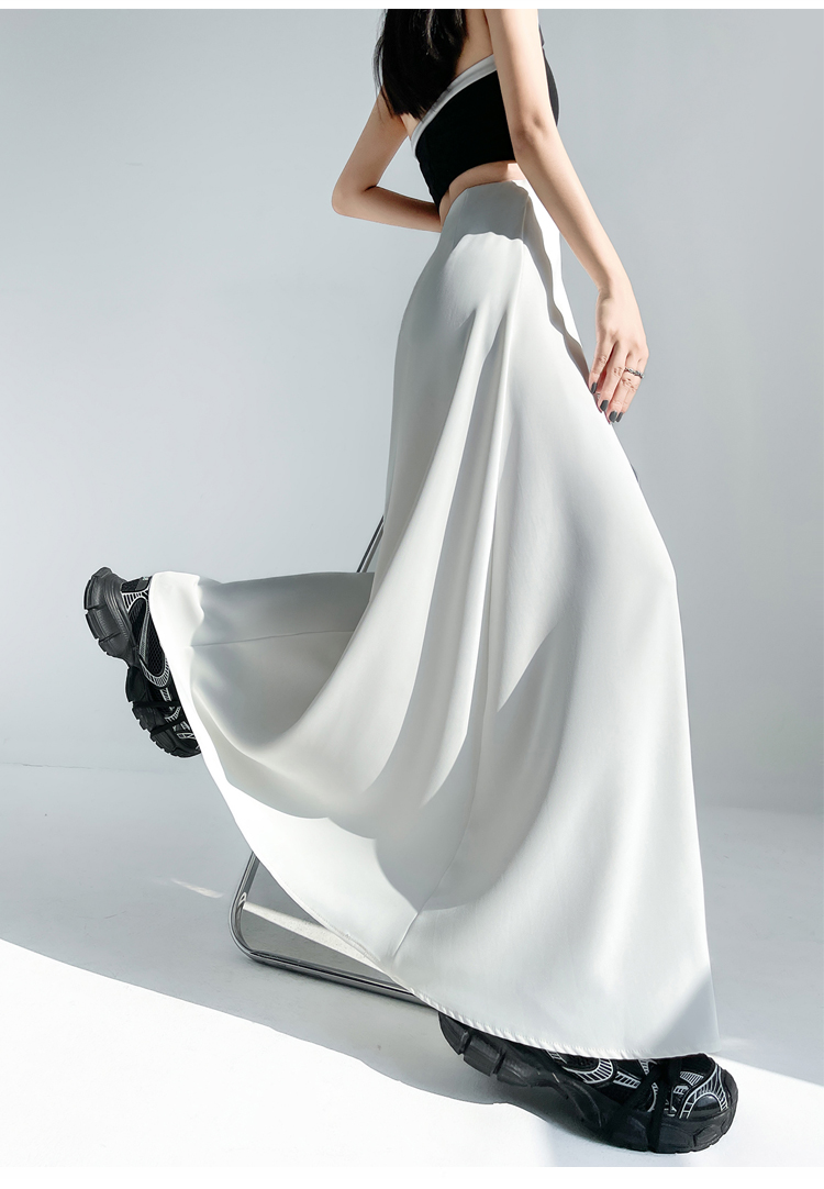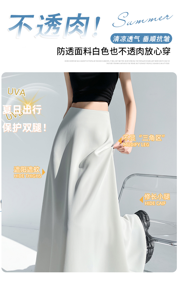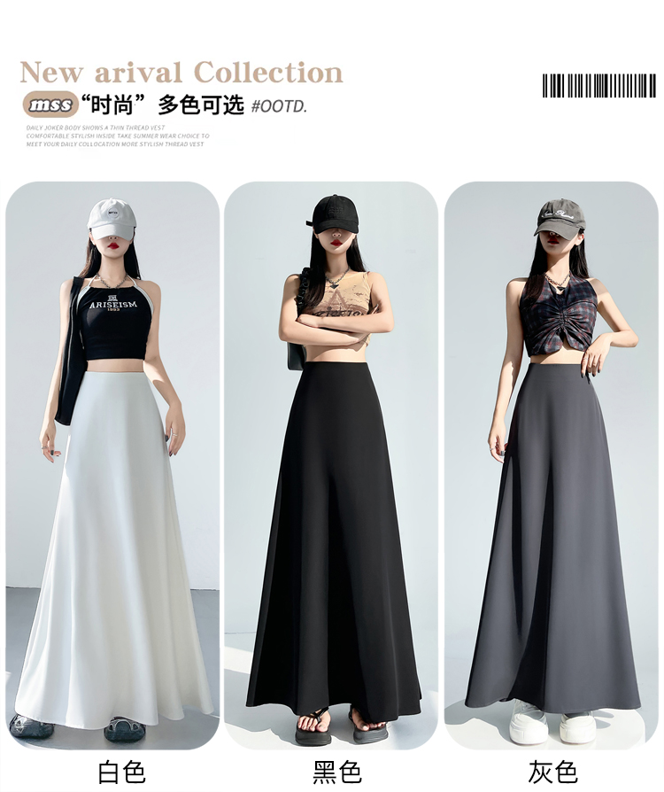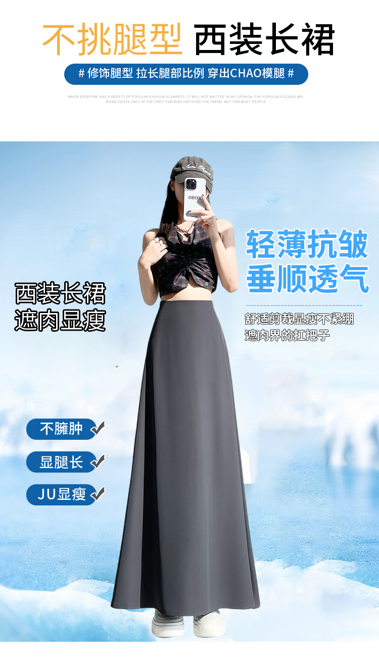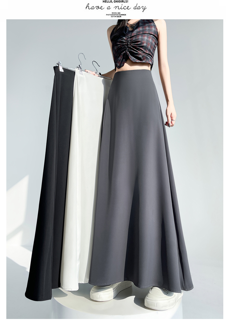 White Ice Silk Drape Suit Skirt for Women, Summer 2025 New High-Waisted Slimming A-Line Umbrella Skirt Long Skirt