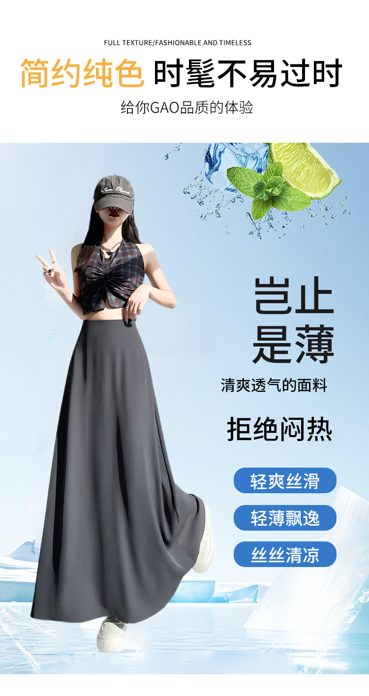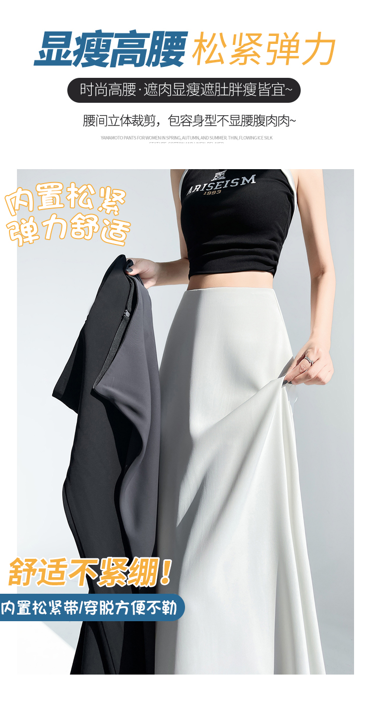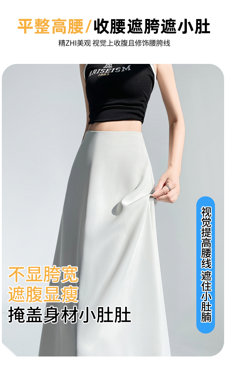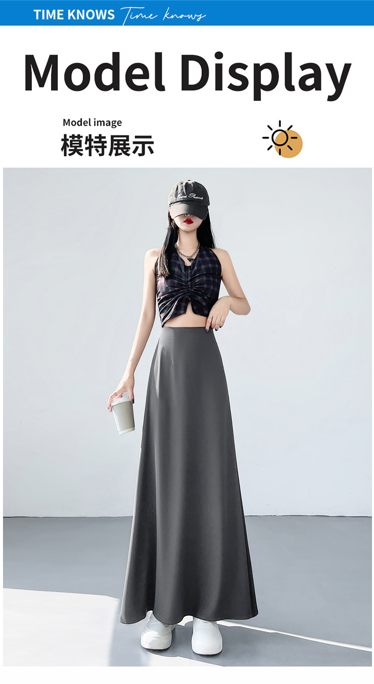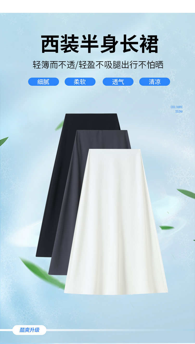 White Ice Silk Drape Suit Skirt for Women, Summer 2025 New High-Waisted Slimming A-Line Umbrella Skirt Long Skirt