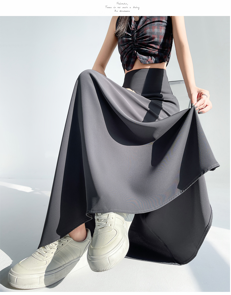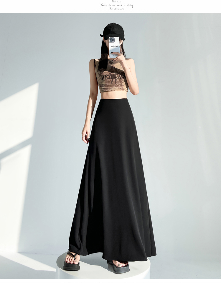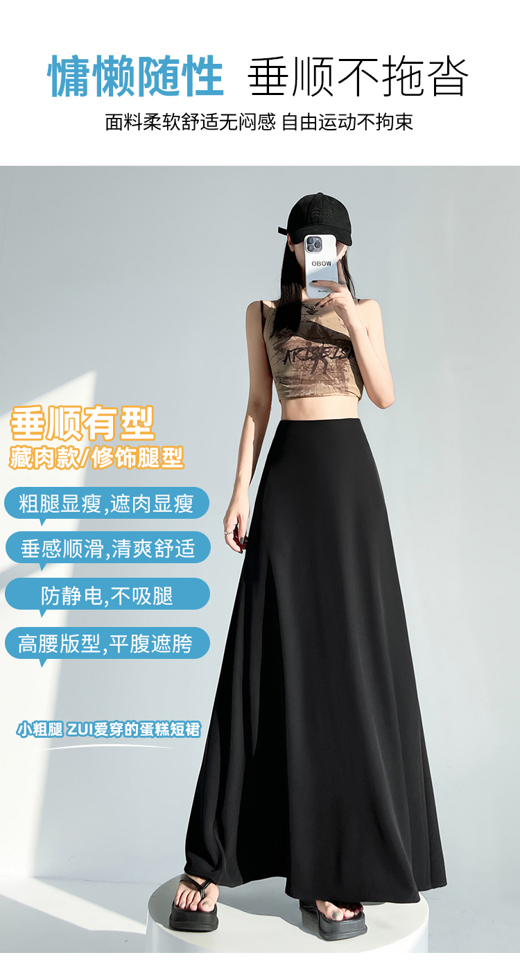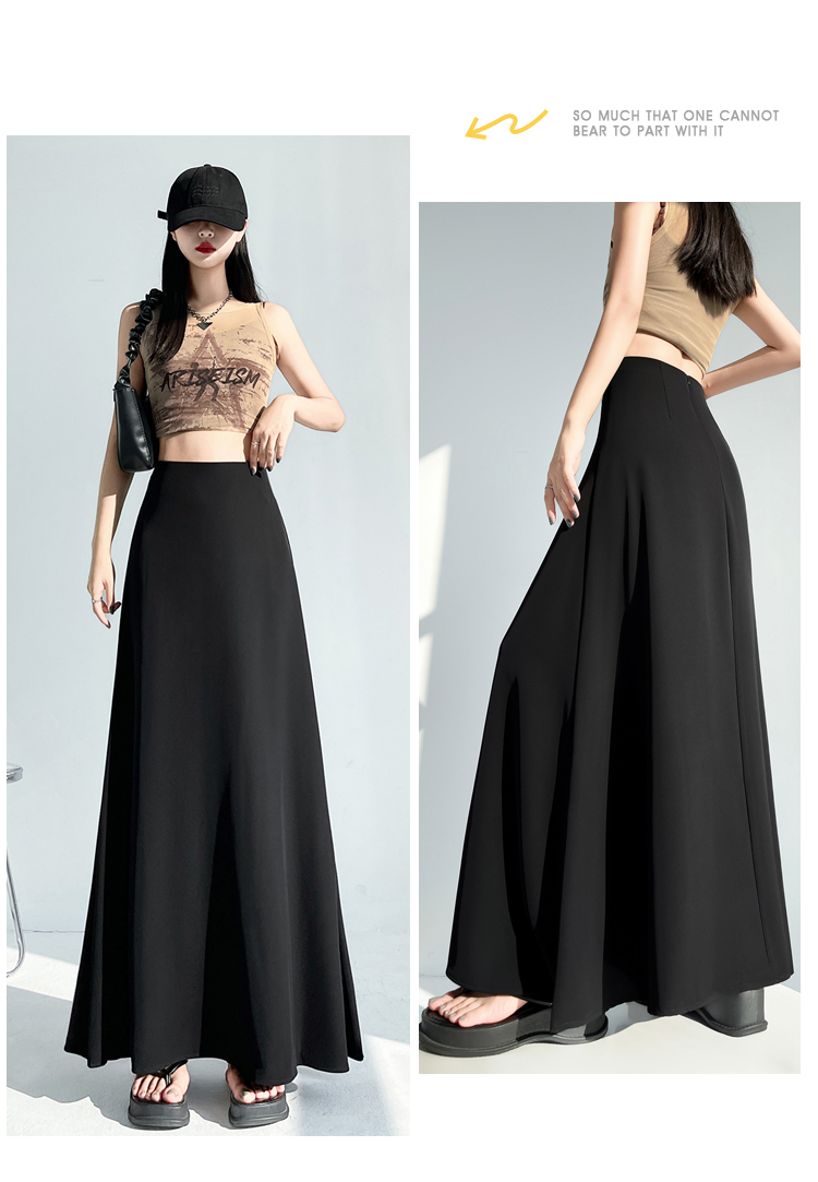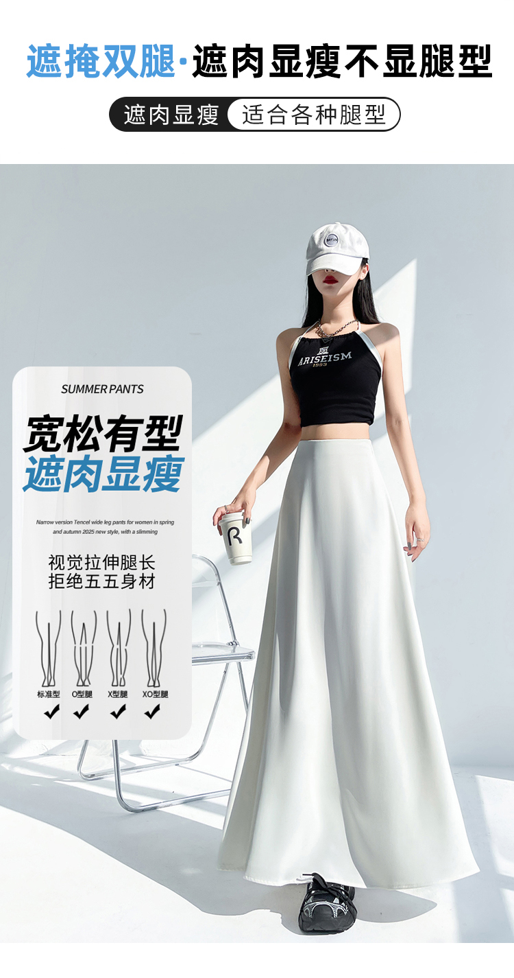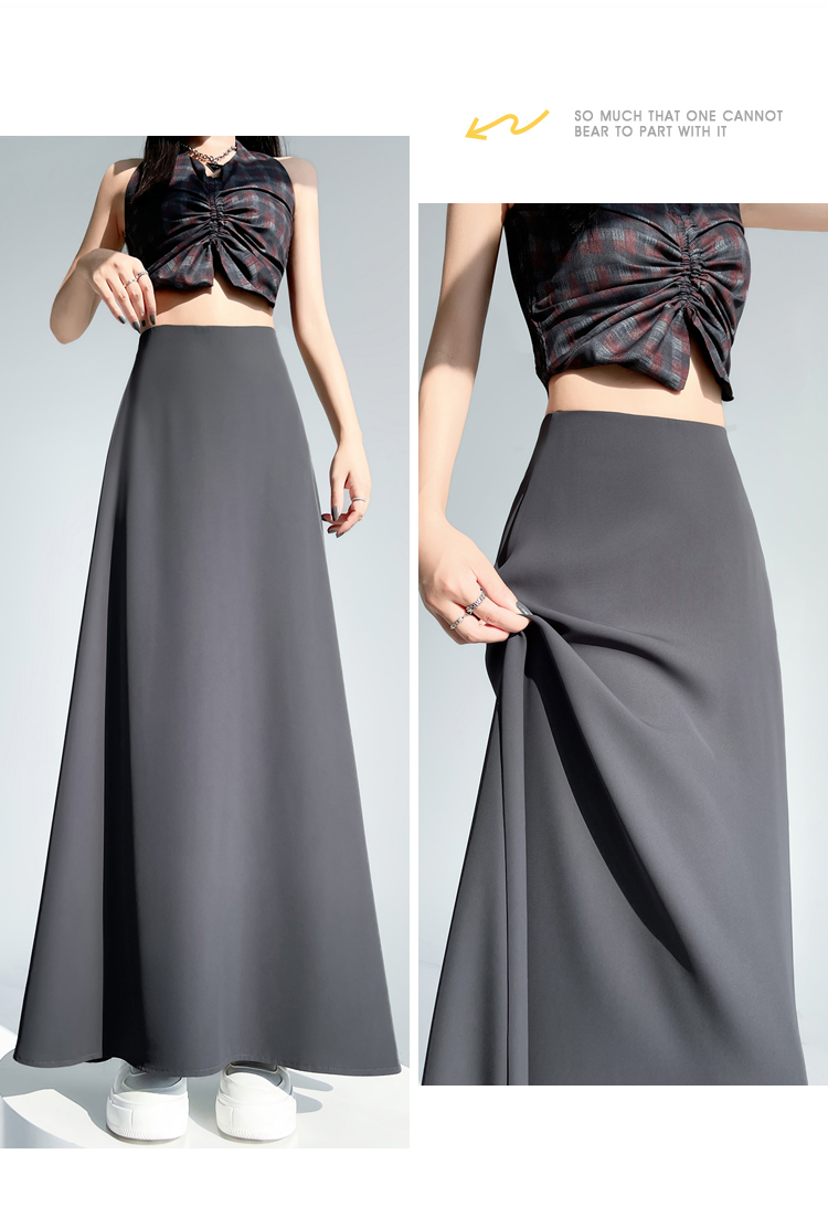 White Ice Silk Drape Suit Skirt for Women, Summer 2025 New High-Waisted Slimming A-Line Umbrella Skirt Long Skirt